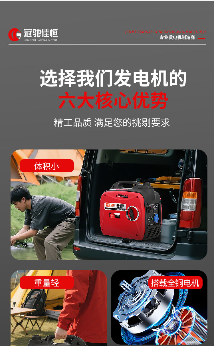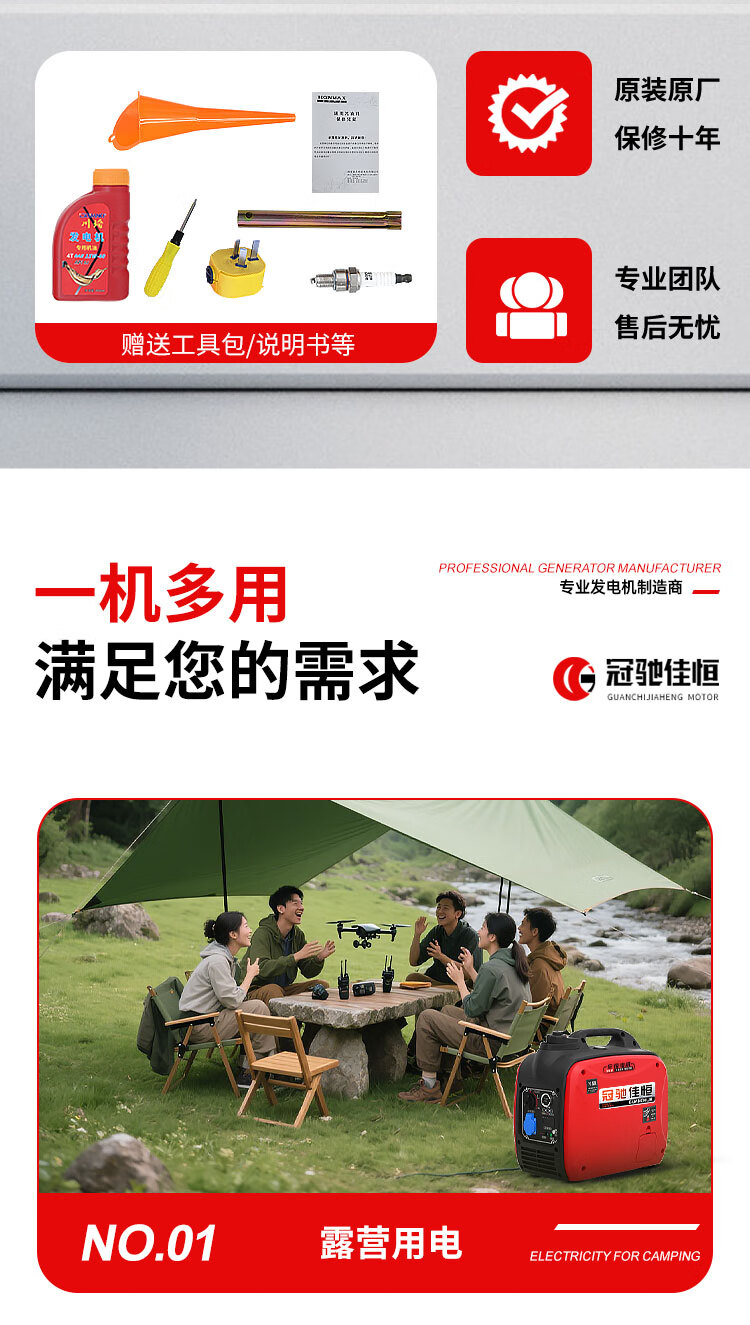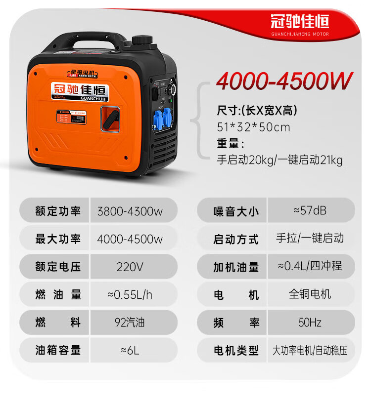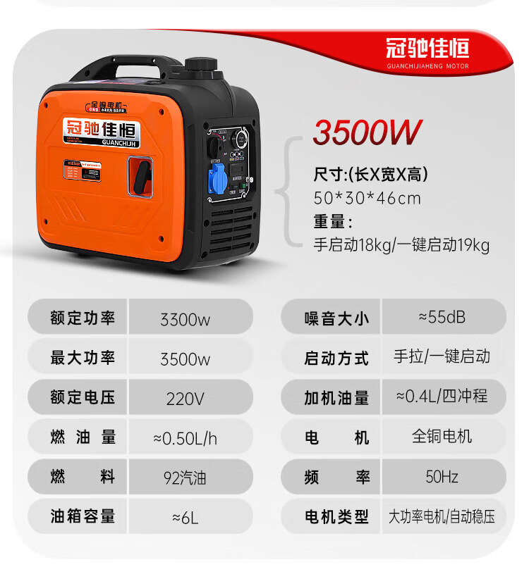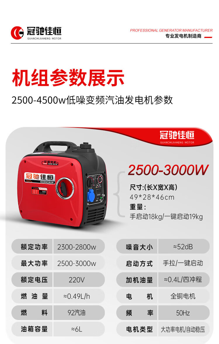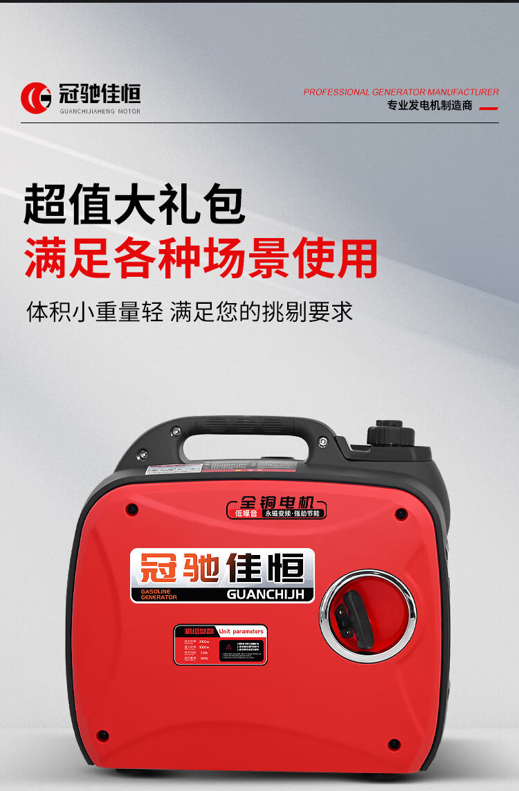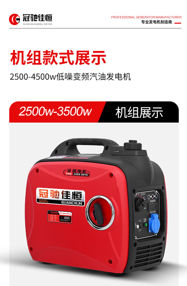 Guanchi Jiaheng variable frequency gasoline generator single-phase 220V small household 2/3KW/4kW outdoor commercial convenient low noise 2500W-hand start-variable type-220V