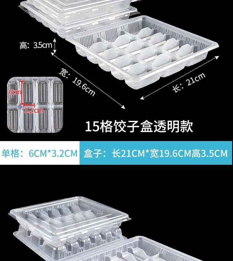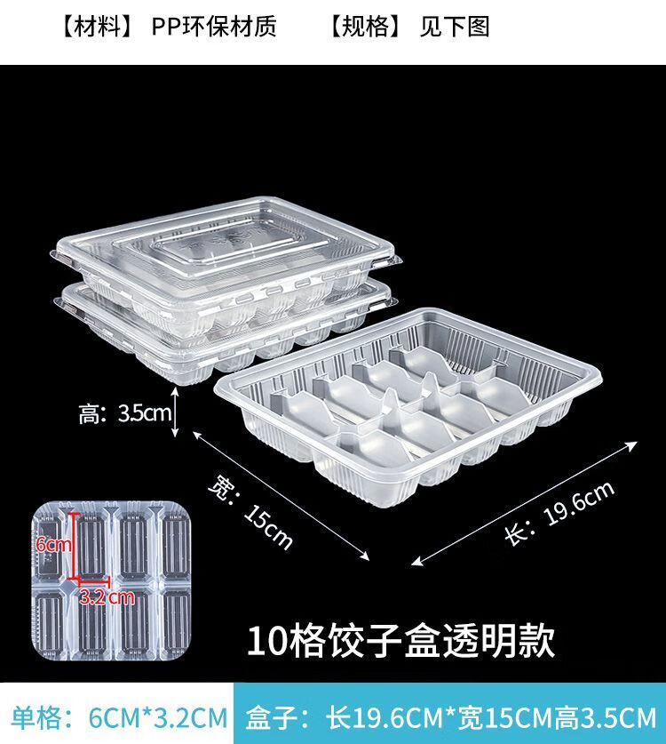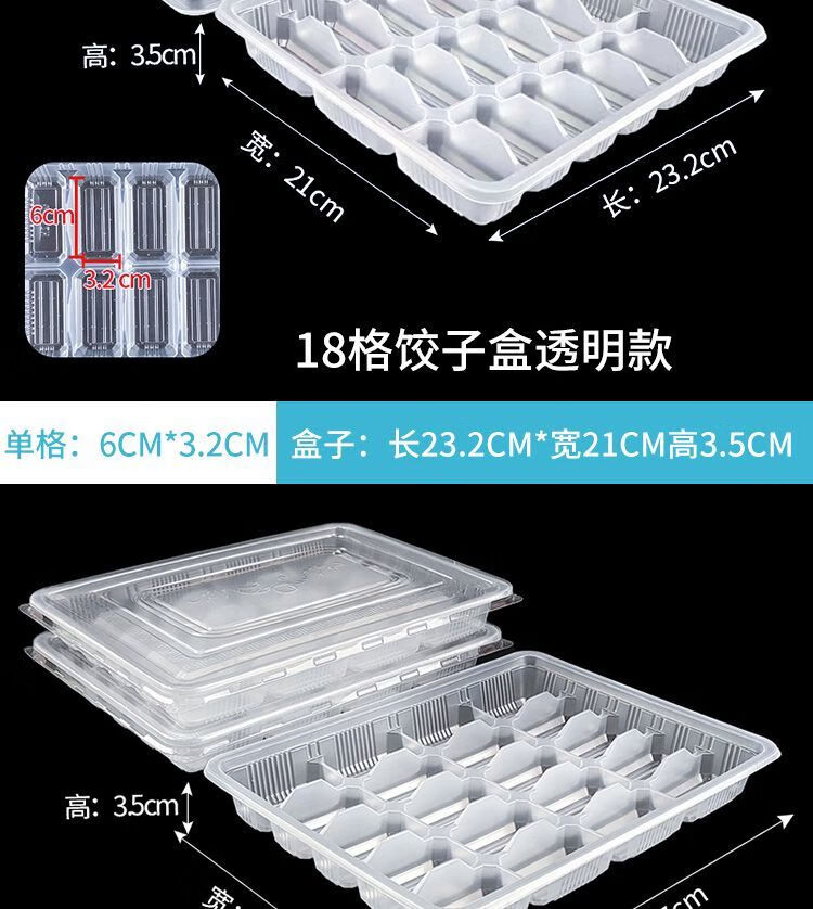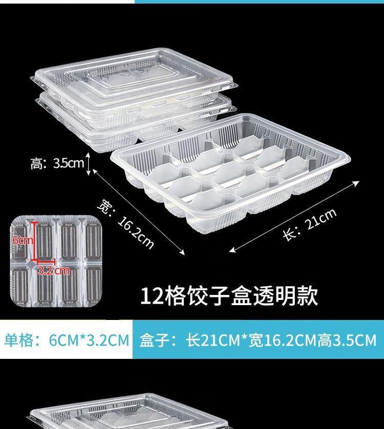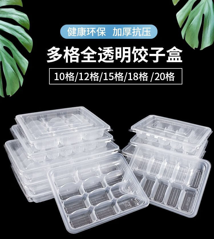 Chaosihui Wonton Dumpling Box Special Compartment Refrigerator Storage Box Dumpling Box Disposable Takeaway Commercial 20-Gate Green and White Dumpling Box with Cover 50 Sets