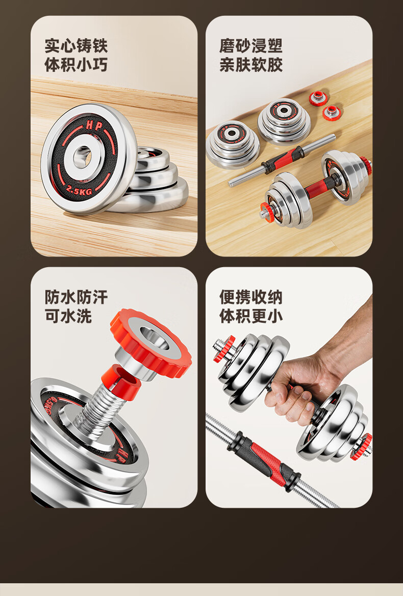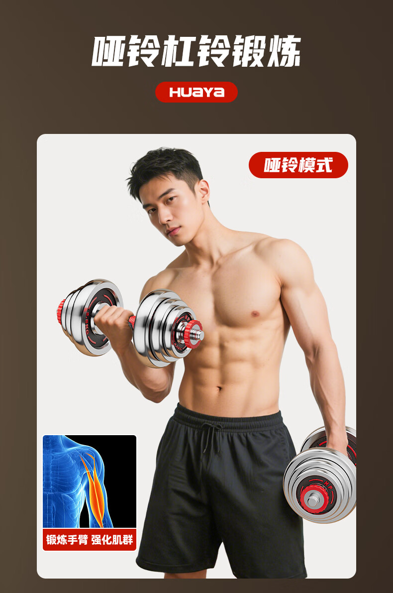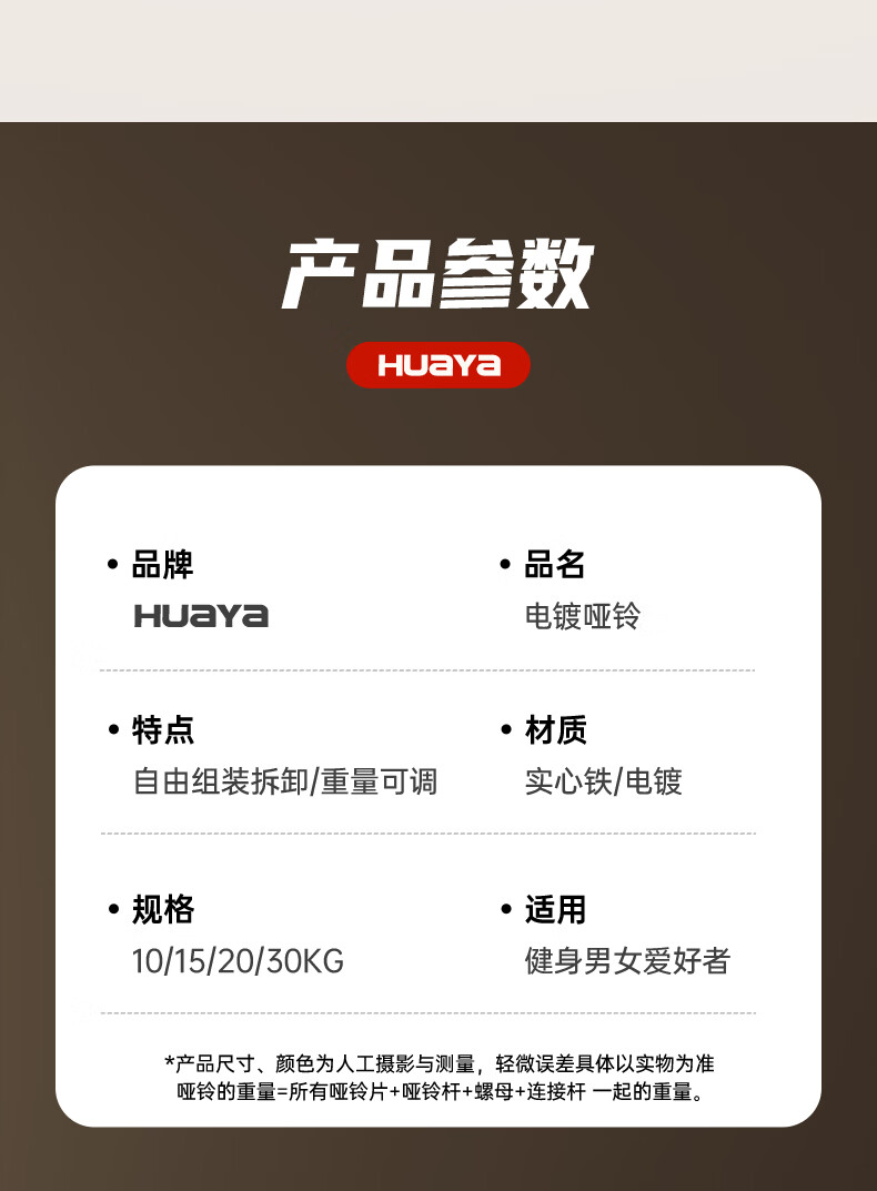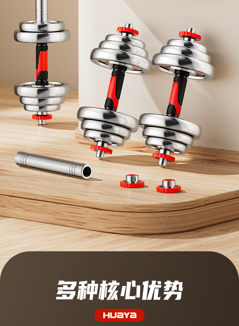 Huaya Electroplated Dumbbell Men's Fitness Home Equipment Arm Muscle Training Adjustable Pure Iron Yaling Set Combination Beginner 15KG One Pair (7.5KG*2 Only) Dumb Barbell Dual-Purpose
