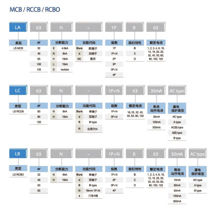 LS small circuit breaker air switch/1P2P3P/1A6A10A20A32A40A63A/BK63N 1A Type C x 4P