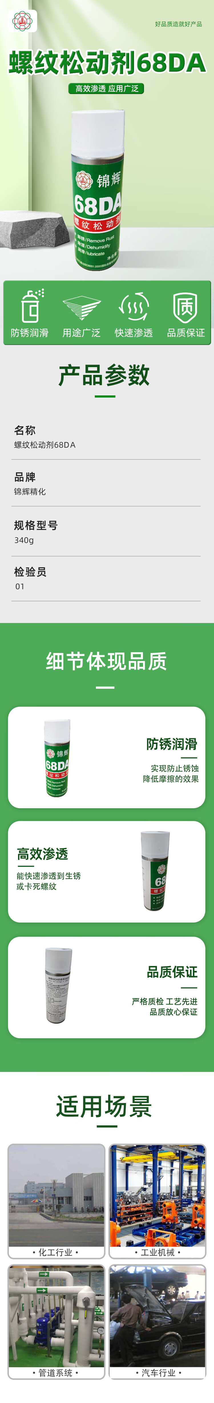 Jinhui Fine Chemical Thread Loosening Agent 68DA 340ml Bottle