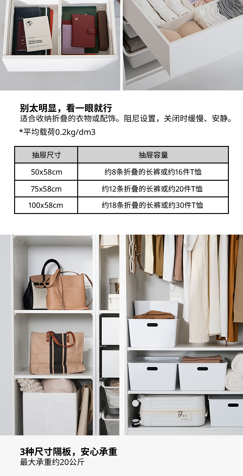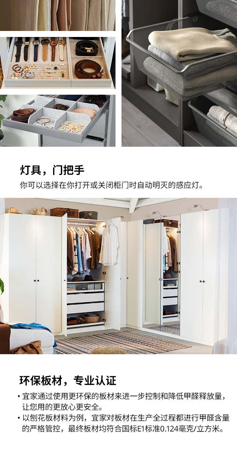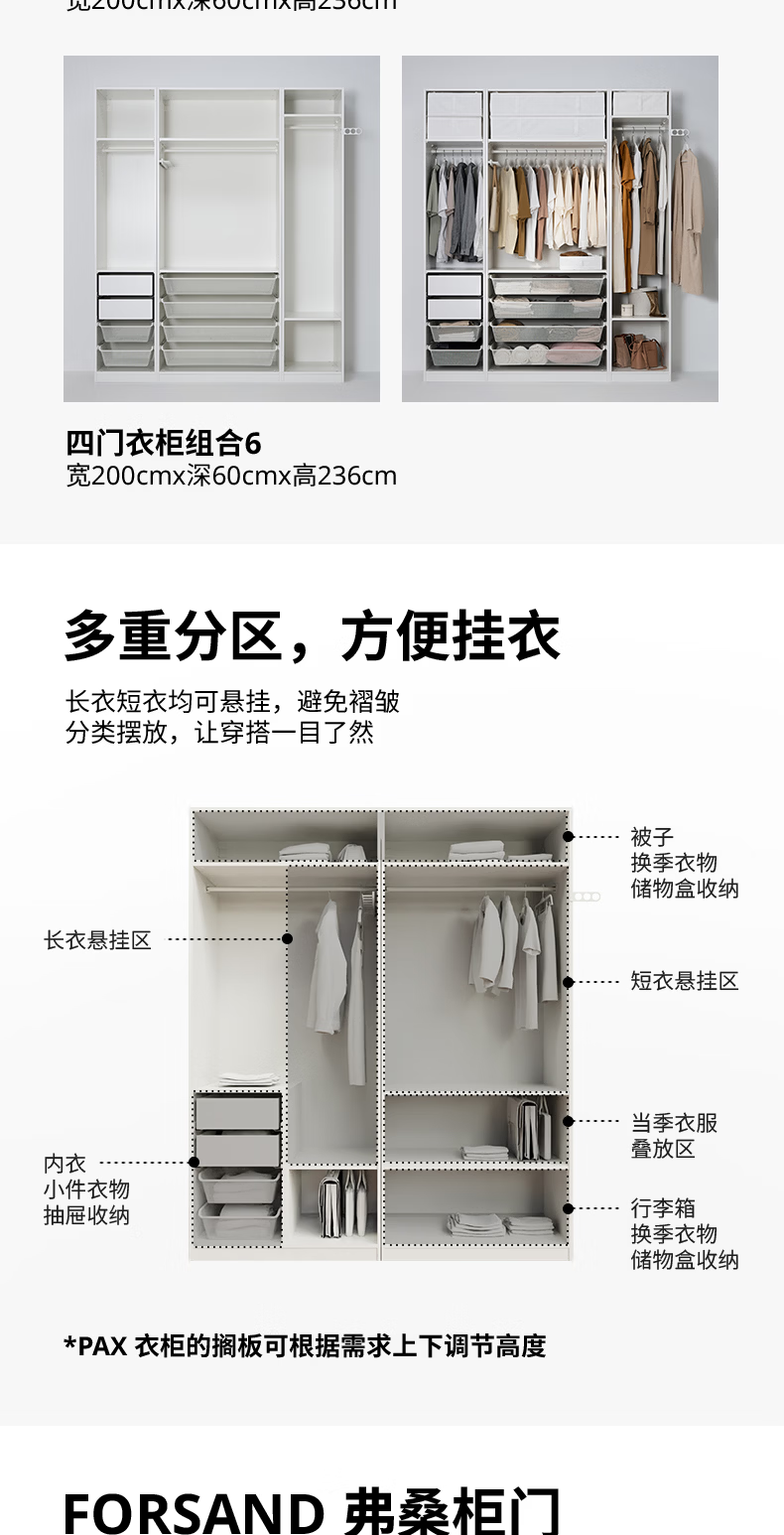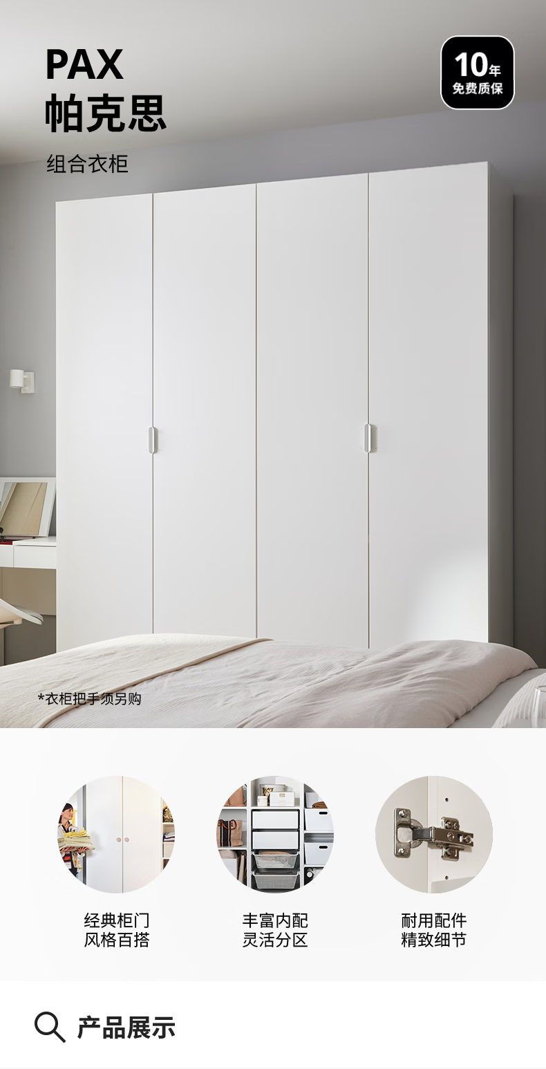 IKEA (IKEA) PAX home bedroom combination wardrobe small apartment wardrobe storage cabinet white four-door cabinet three-door wardrobe combination 2 (125 width x 60 depth x 201 height)