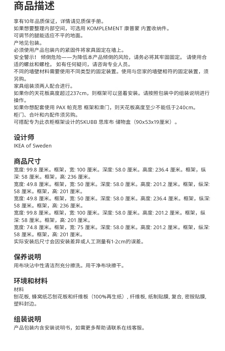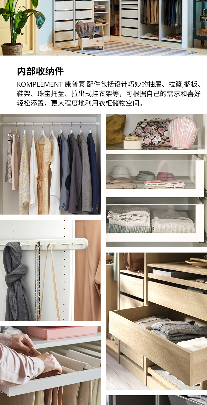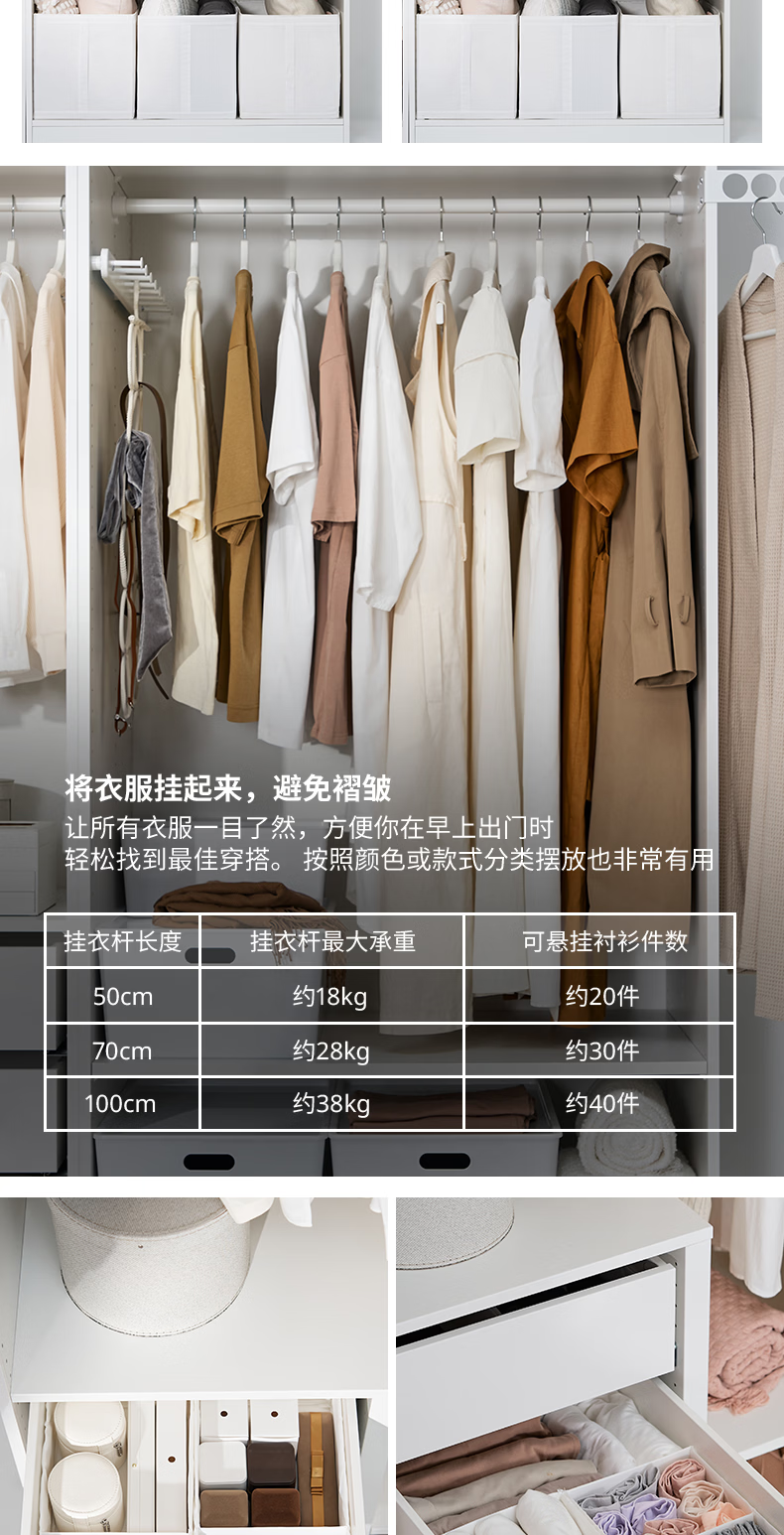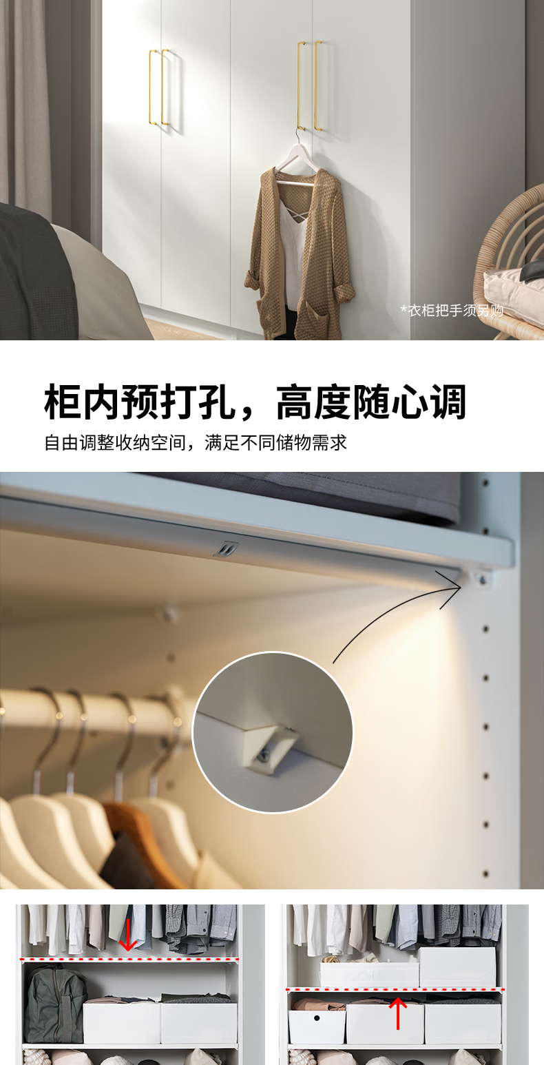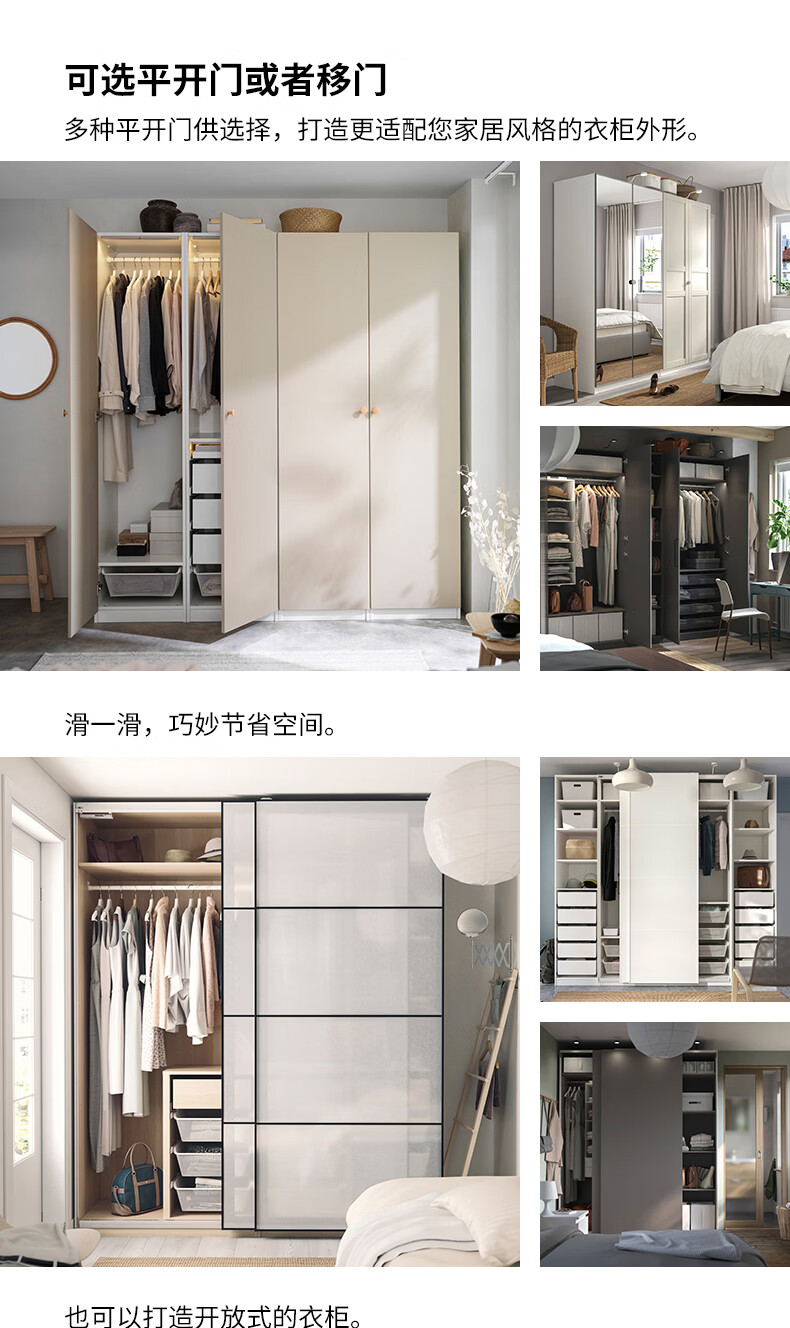 IKEA (IKEA) PAX home bedroom combination wardrobe small apartment wardrobe storage cabinet white four-door cabinet three-door wardrobe combination 2 (125 width x 60 depth x 201 height)