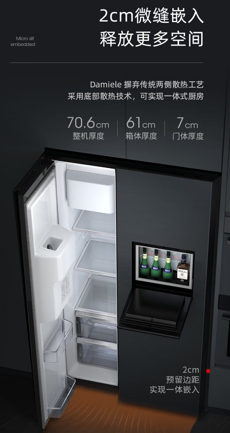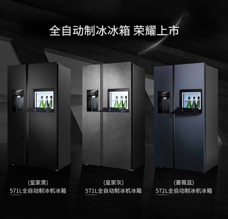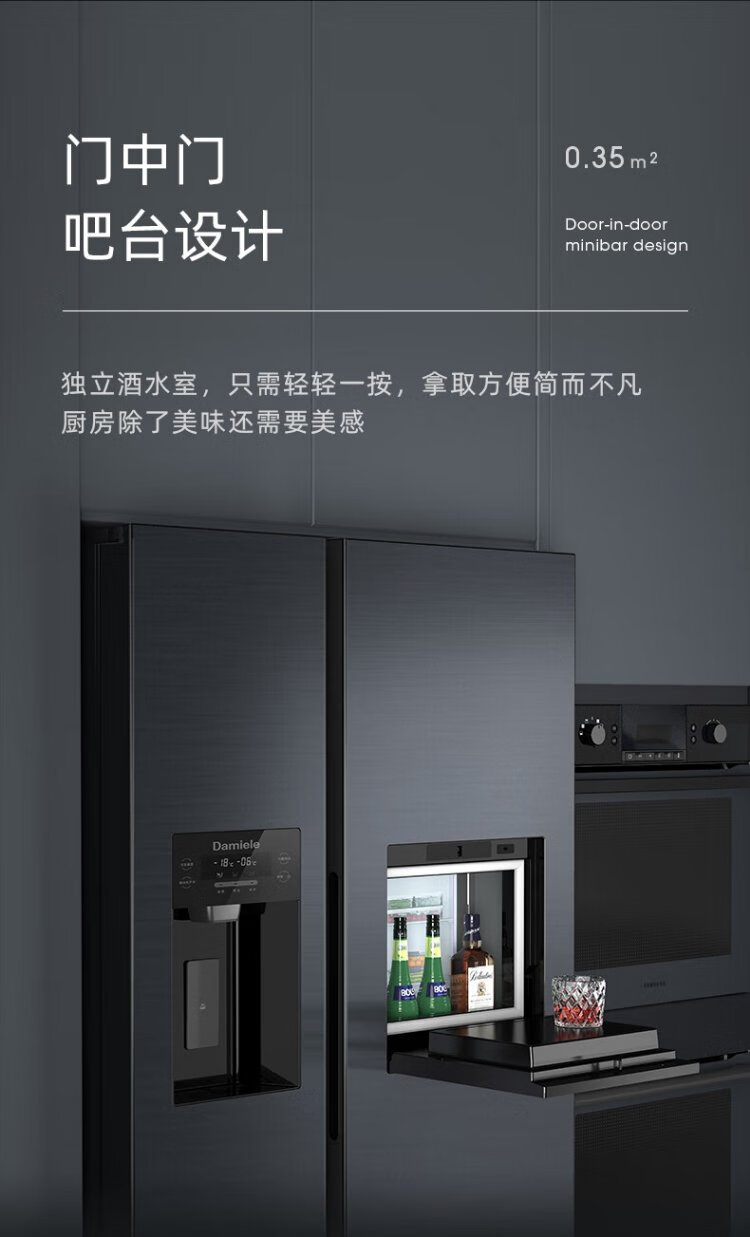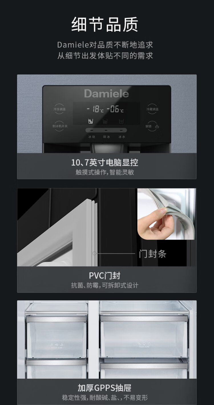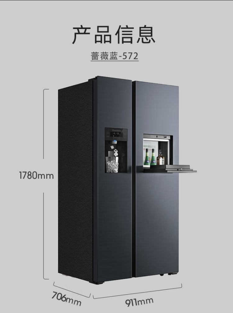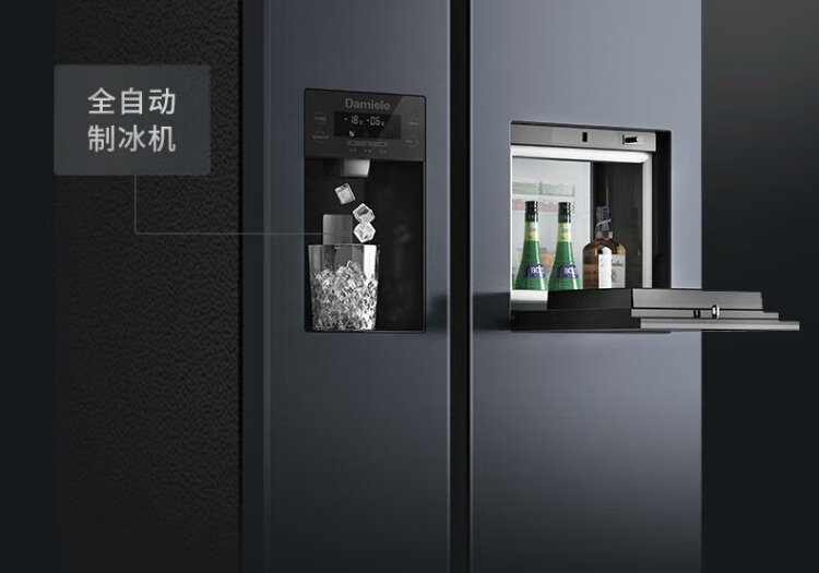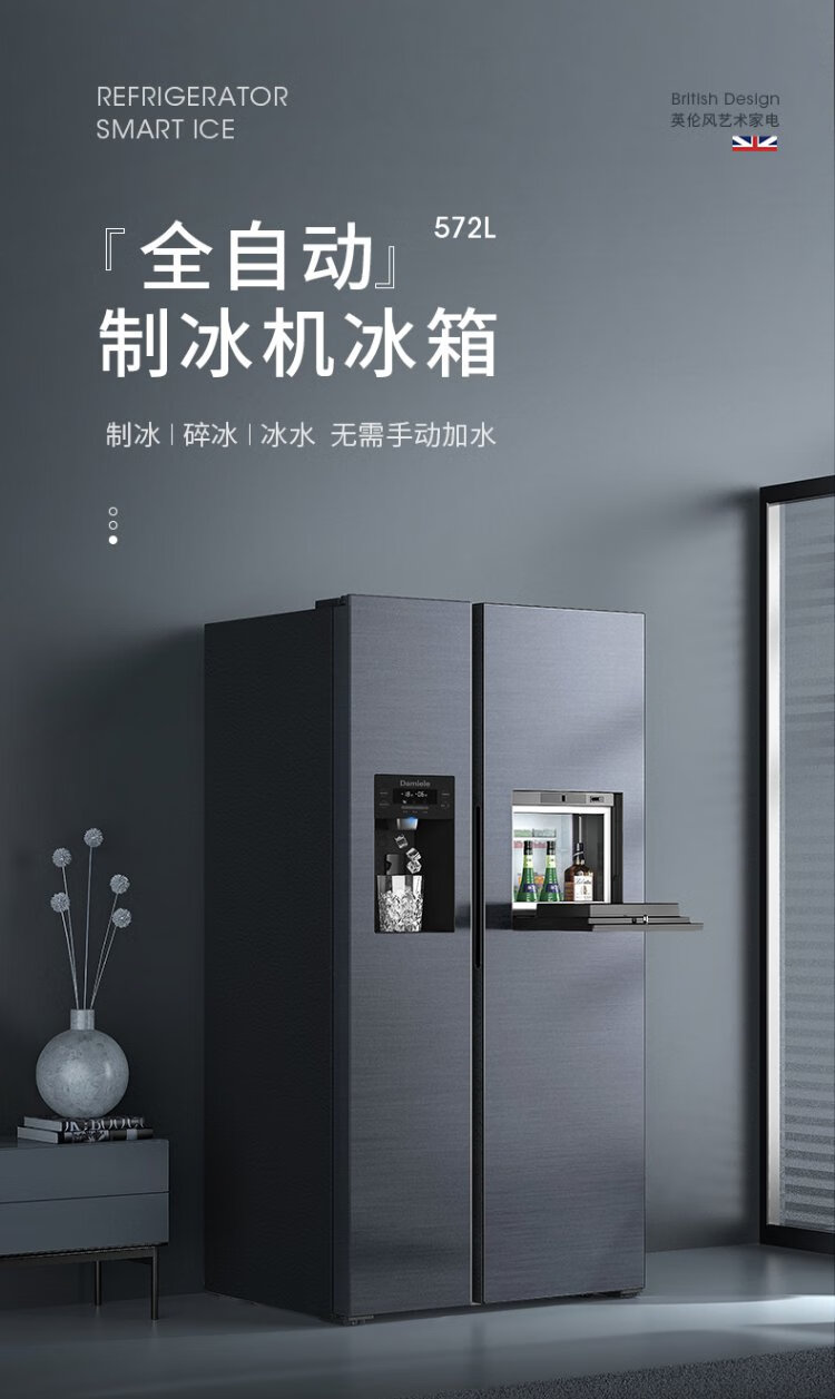 Damiele best-selling refrigerator side-by-side 572L fully automatic ice making + bar refrigerator frequency conversion air-cooled double door refrigerator with ice making double door refrigerator new product Rose Blue (Water Tank Model)