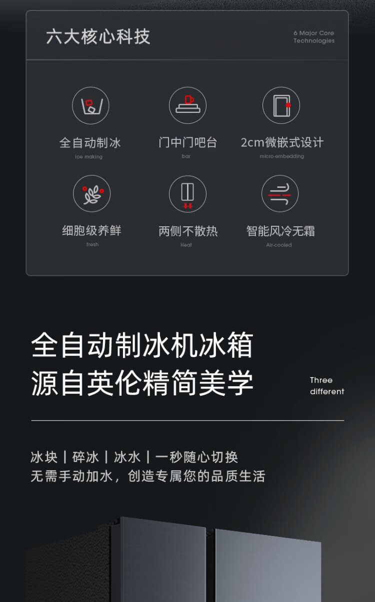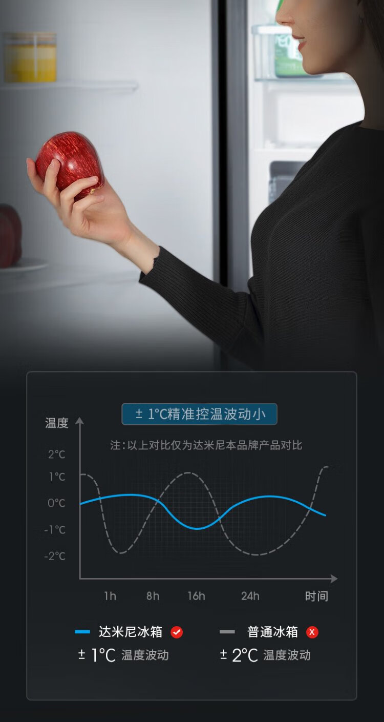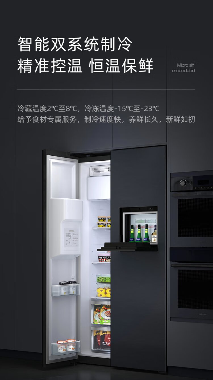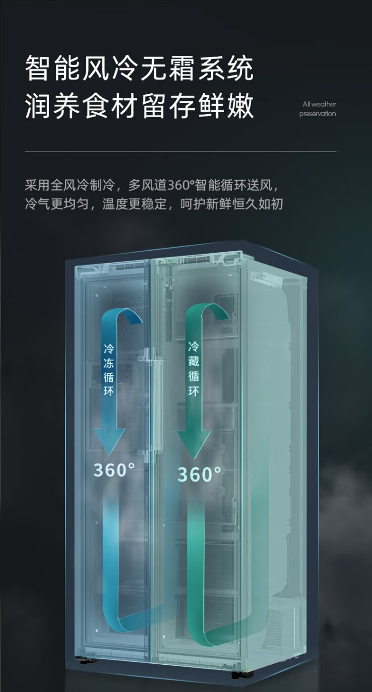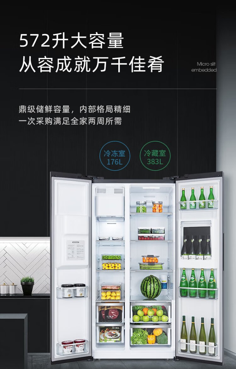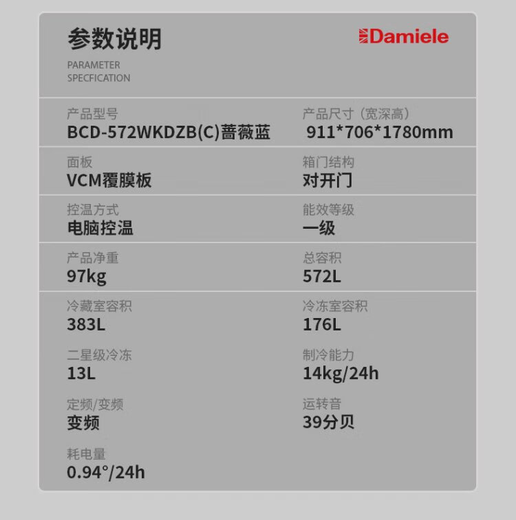 Damiele best-selling refrigerator side-by-side 572L fully automatic ice making + bar refrigerator frequency conversion air-cooled double door refrigerator with ice making double door refrigerator new product Rose Blue (Water Tank Model)