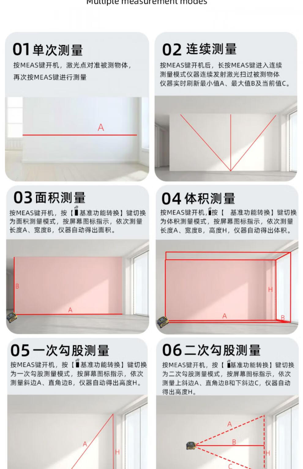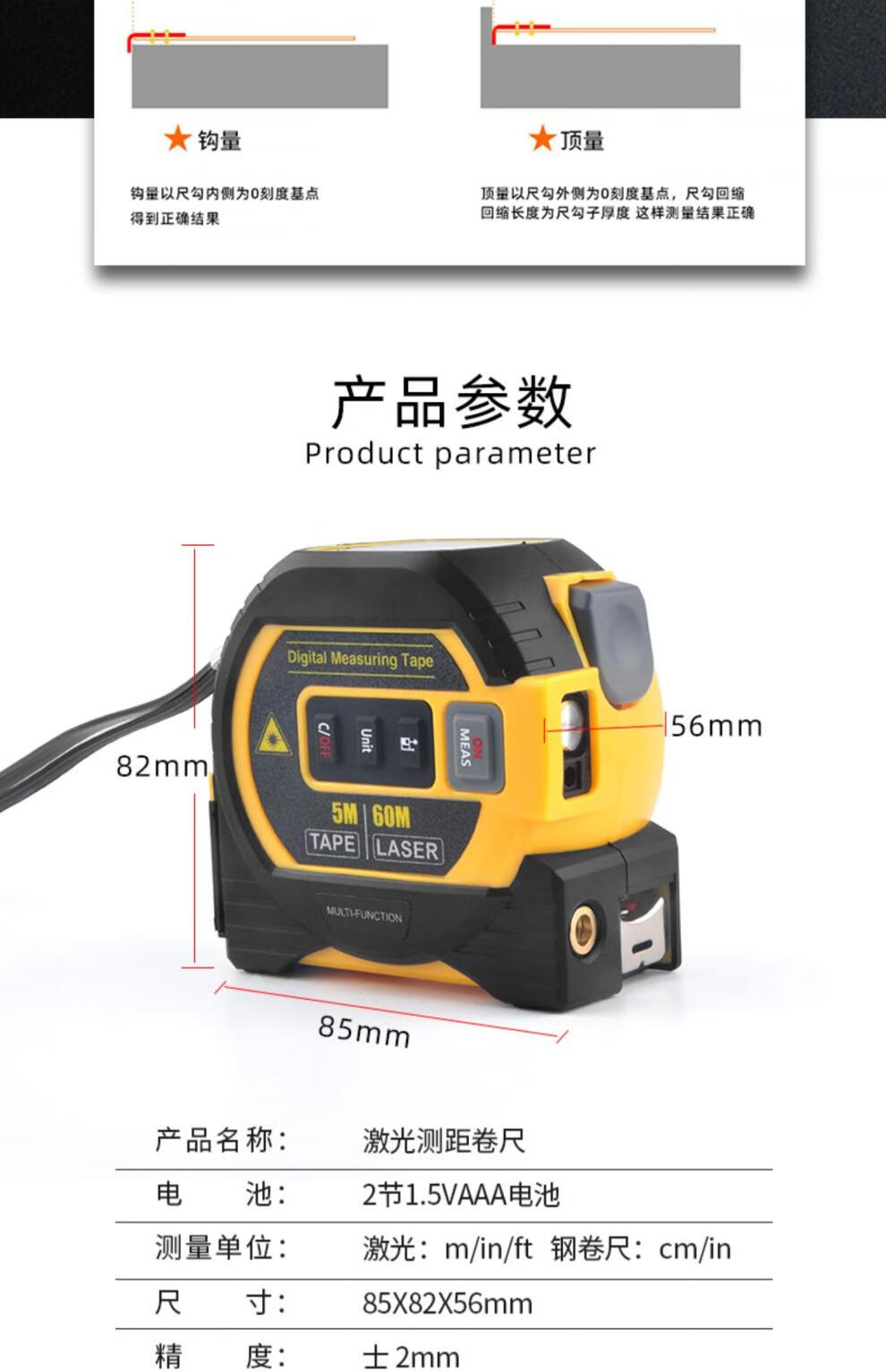 Wentai laser tape measure three-in-one range finder intelligent electronic measuring ruler steel tape measure for room measurement blue 40 meters laser range finder + cross line +