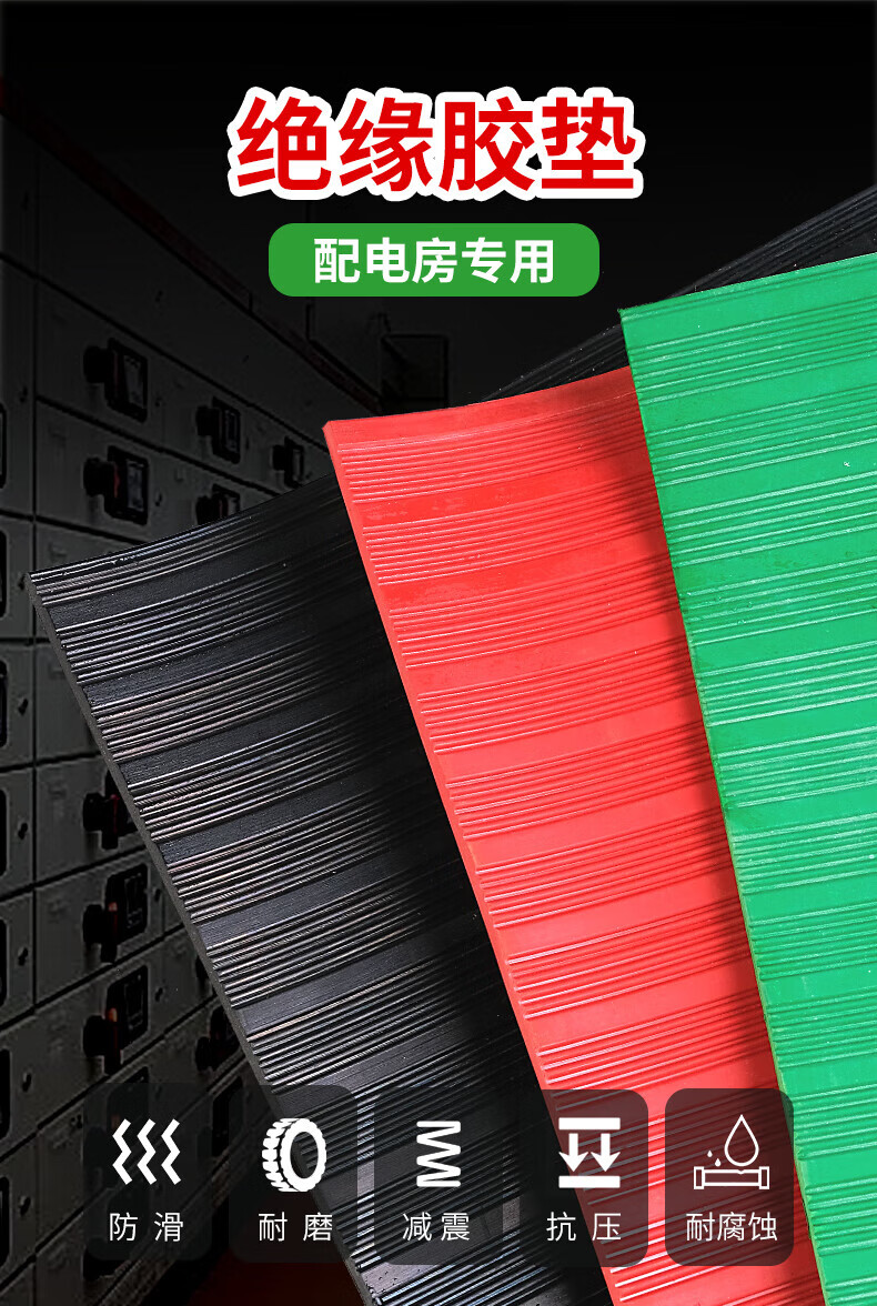 High voltage insulating rubber mat 10kv power distribution room insulating rubber mat table mat non-slip carpet insulating mat 1m*5m*8mm red stripe 25KV