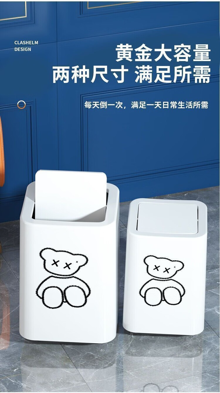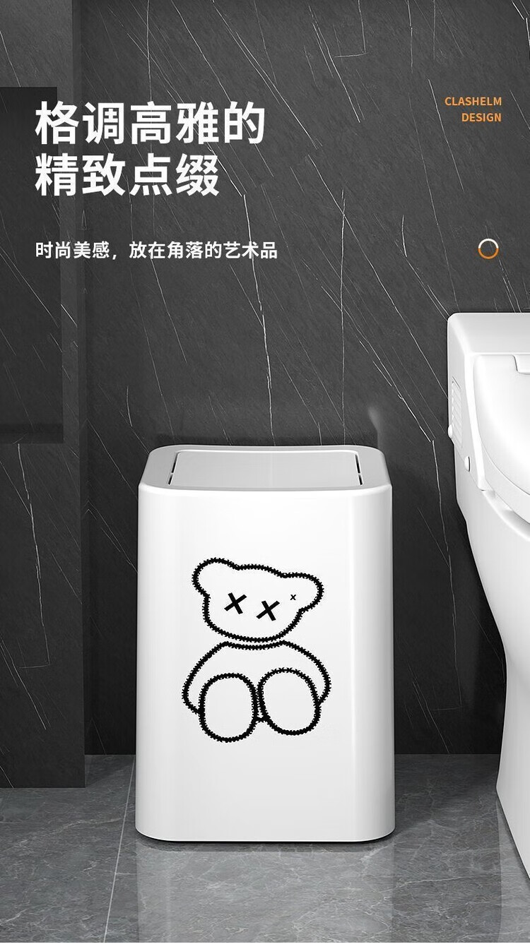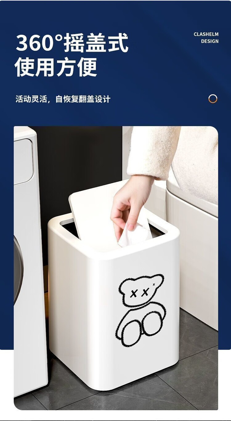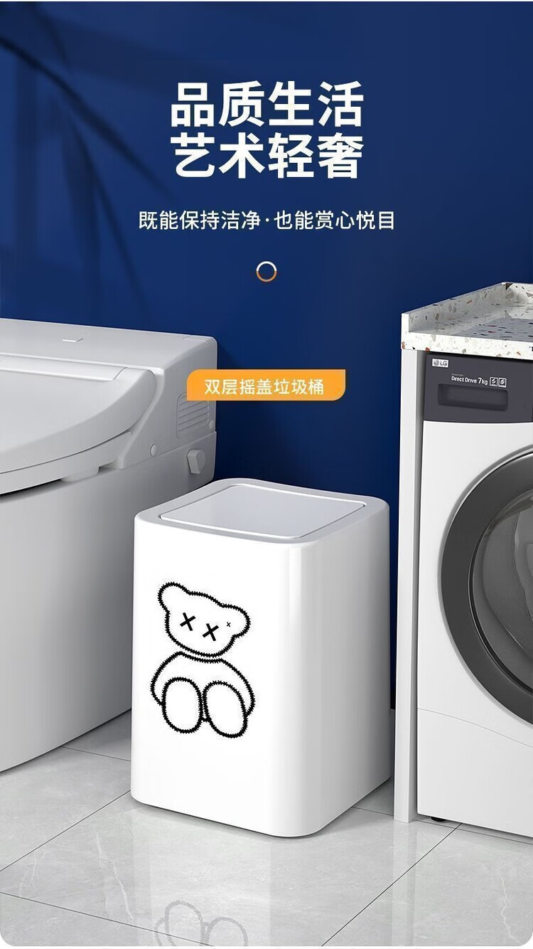 Trash can swing lid simple cream style home bathroom bedroom living room with lid creative light luxury cartoon style paper basket pearl white inner and outer double bucket 13L garbage bag not exposed