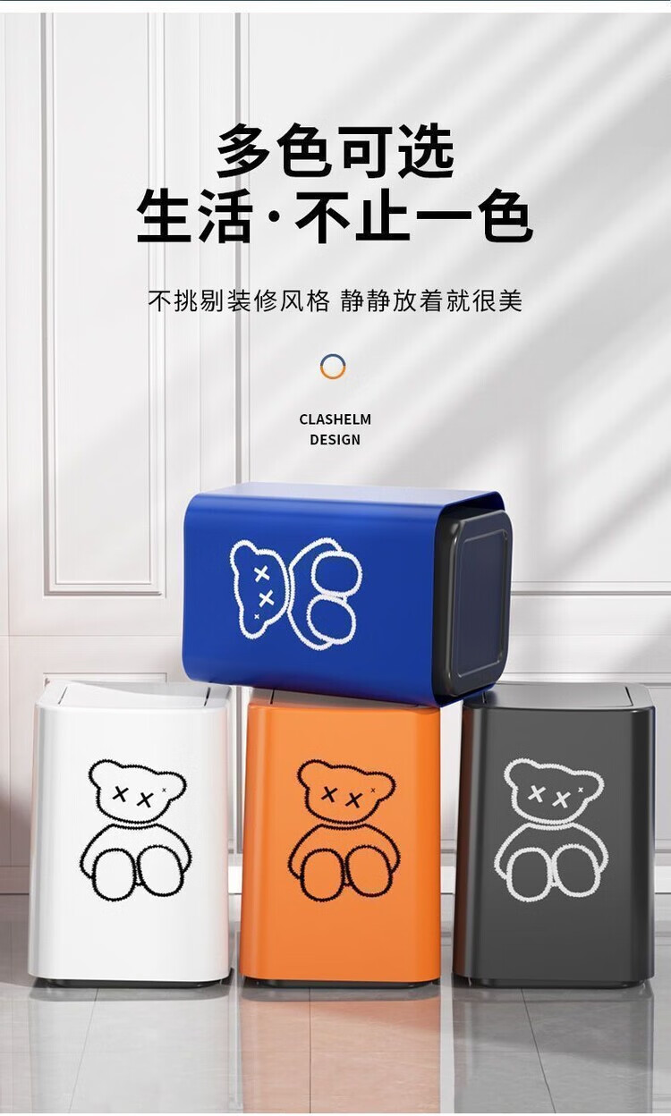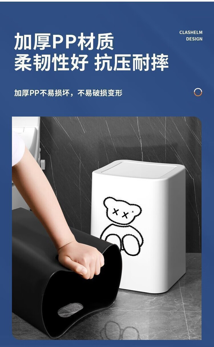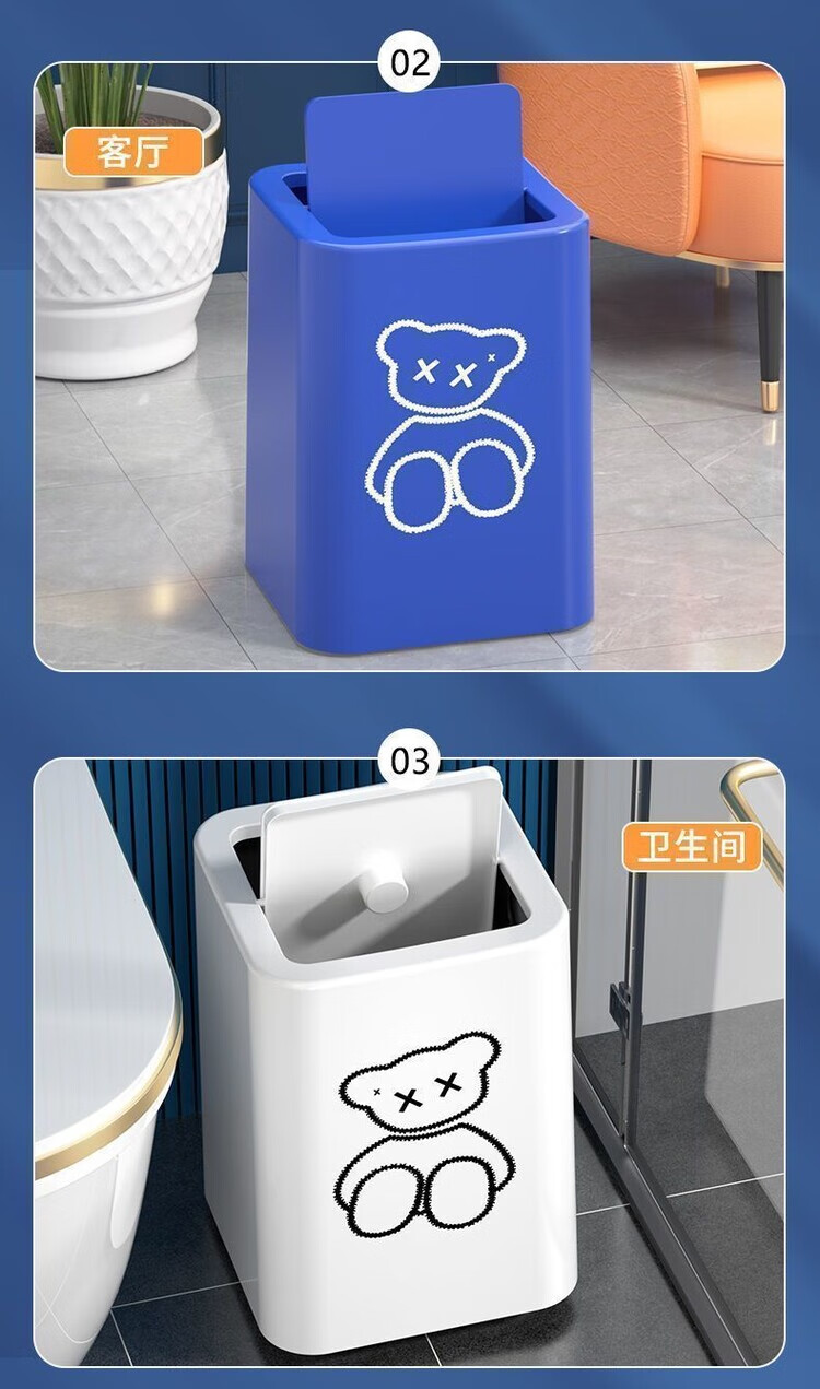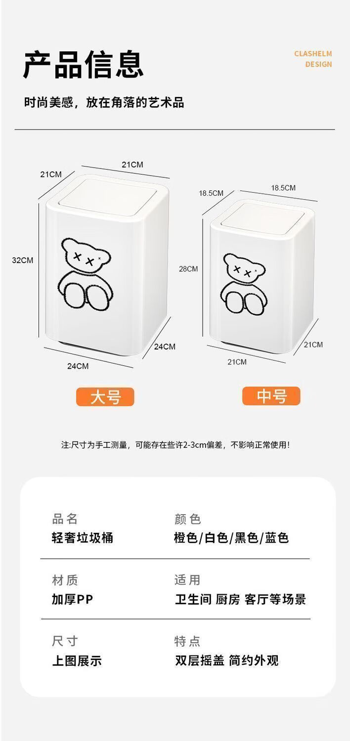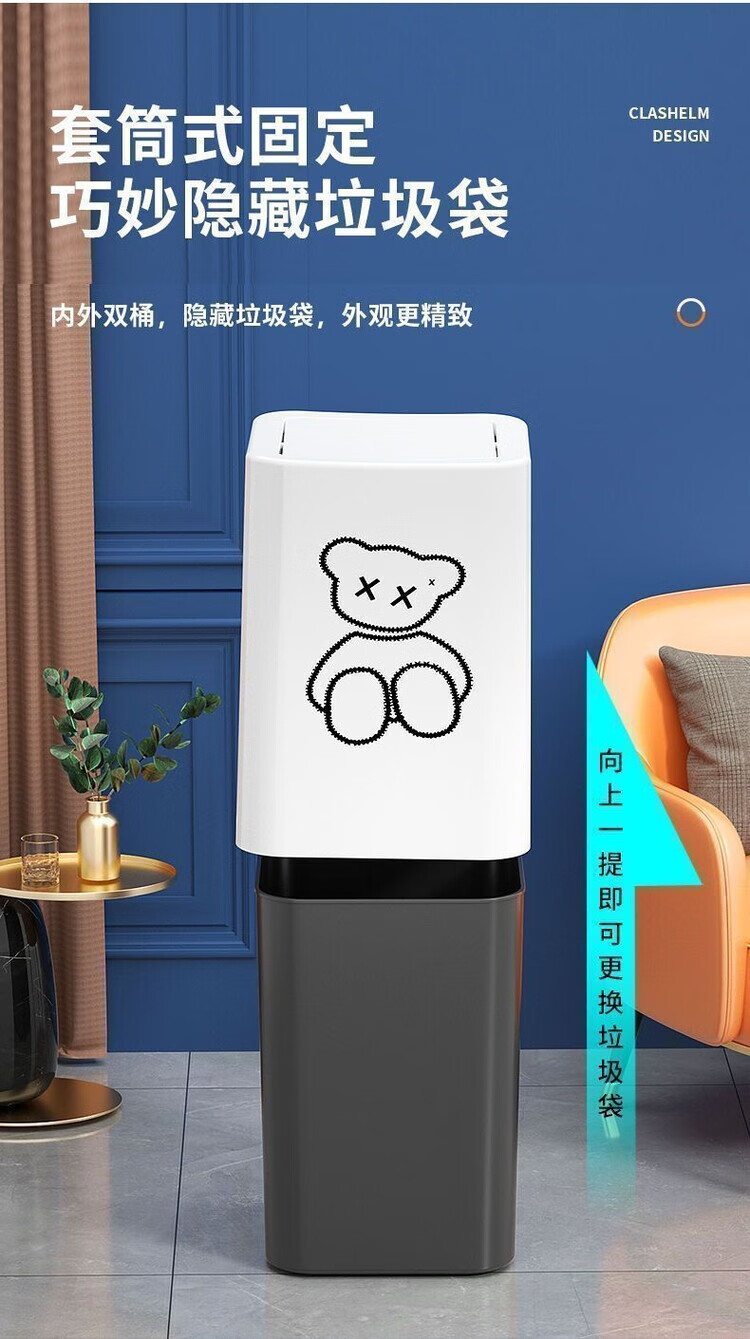 Trash can swing lid simple cream style home bathroom bedroom living room with lid creative light luxury cartoon style paper basket pearl white inner and outer double bucket 13L garbage bag not exposed