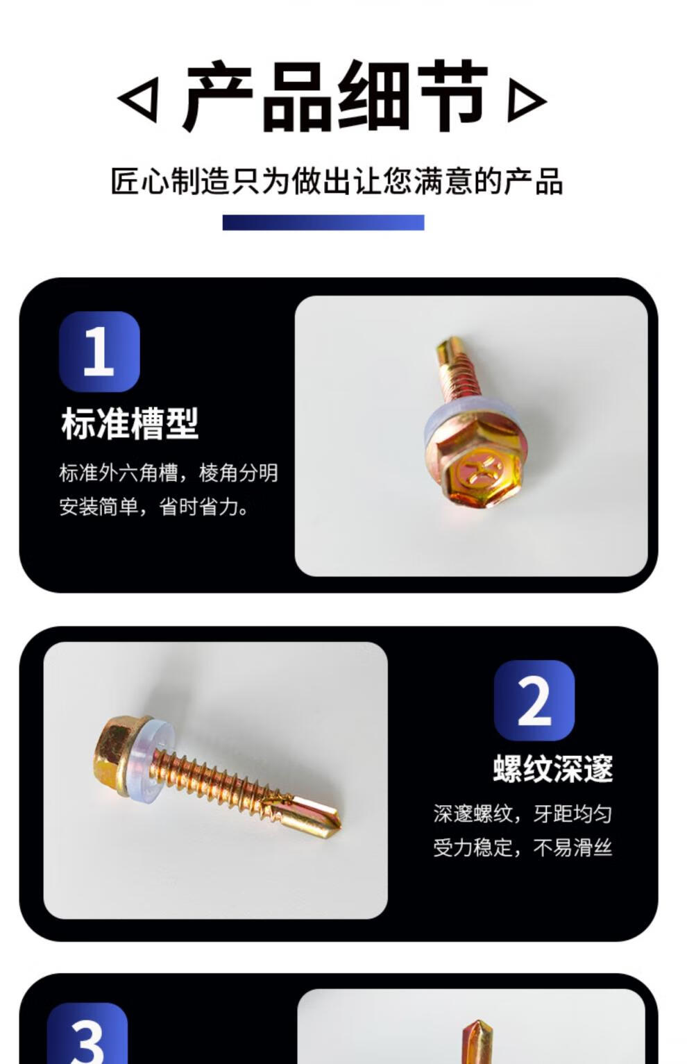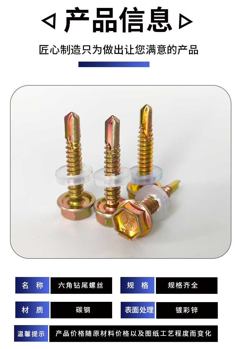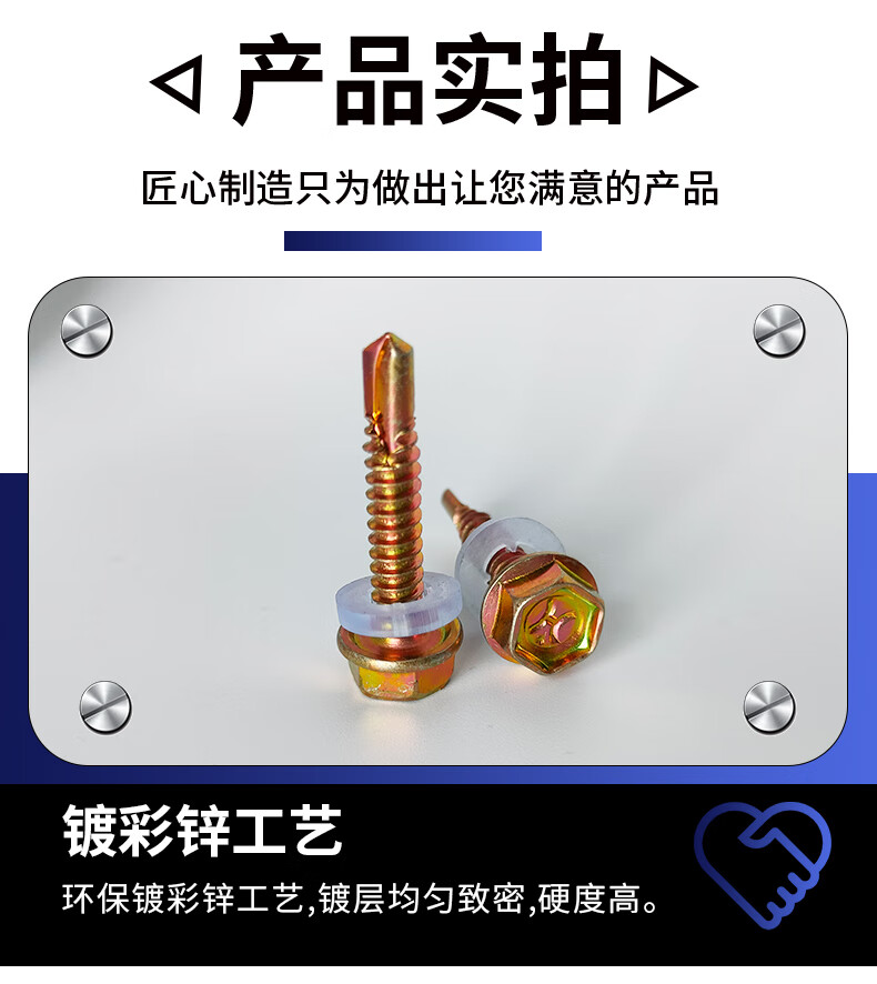 Li Shen external hexagonal drill tail self-tapping screw flange self-drilling galvanized steel tile nail set dovetail drill tail screw, 30 mm long (1 box of 500 pieces)