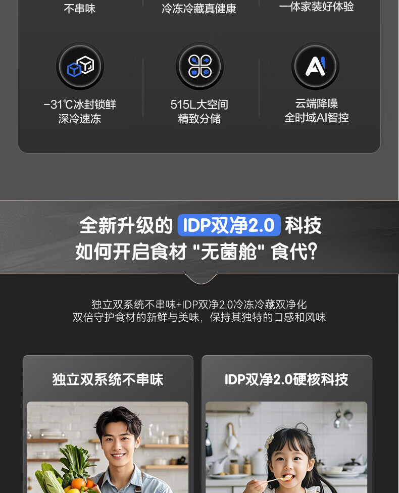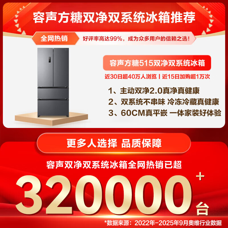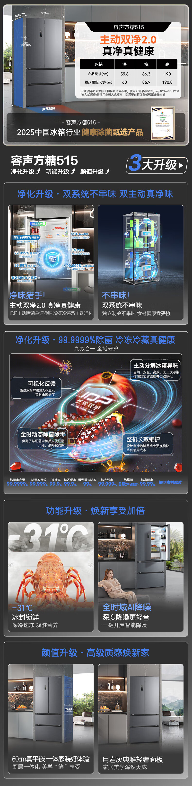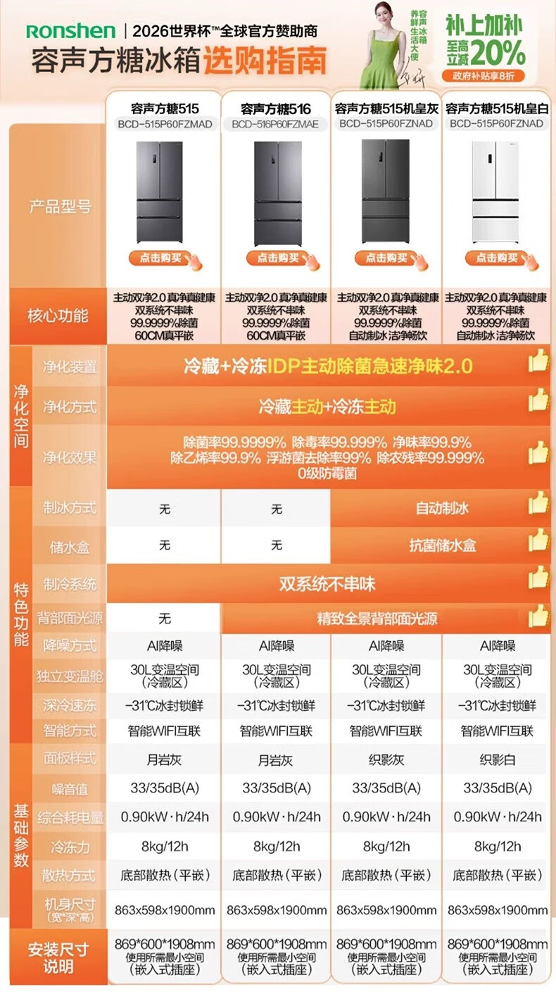 Rongsheng Cube 515 Active Sterilization Dual System French Multi-Door Four-Door Ultra-Thin Zero Embedded Refrigerator Ice Making Level One Energy Efficiency BCD-515P60FZMAD Gray National Subsidy World Cup 60cm True Zero Embedded Bottom Cooling Active Sterilization 2.0