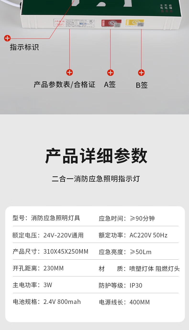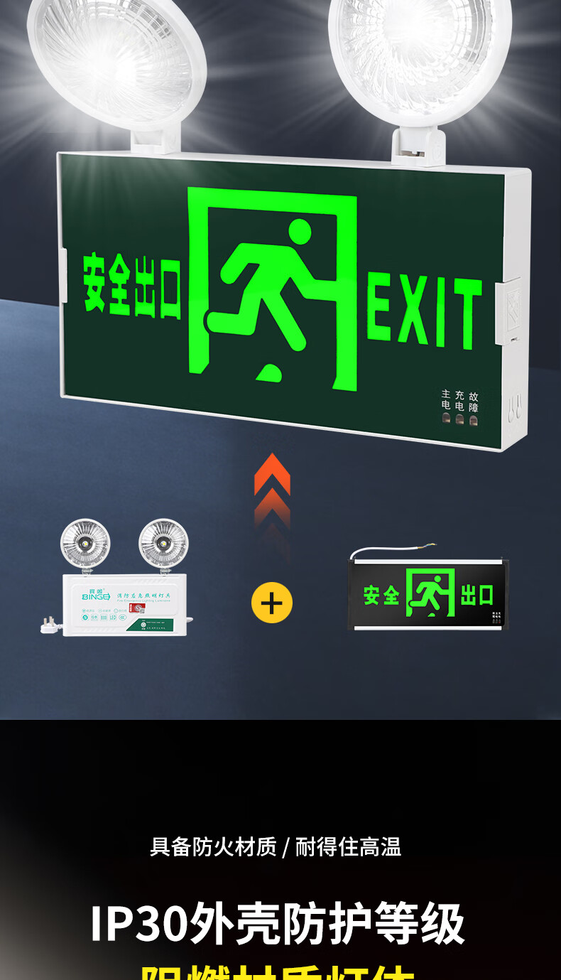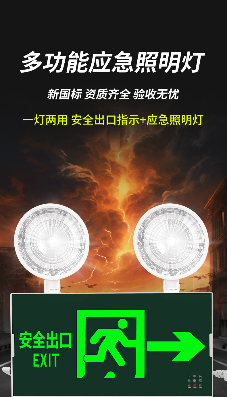 New national standard fire emergency lighting multi-function two-in-one safety exit emergency light LED evacuation sign New national standard fire certification two-in-one safety exit long-term model 1.5
