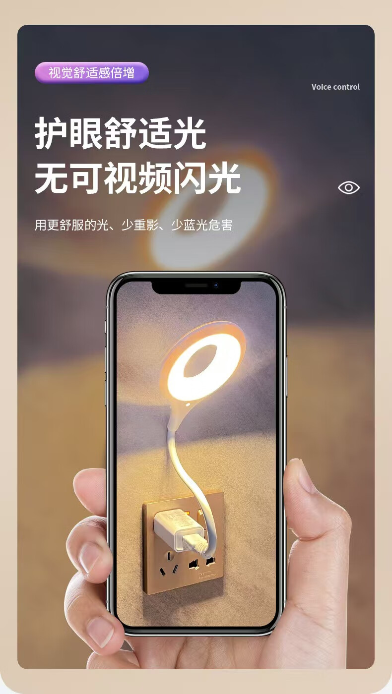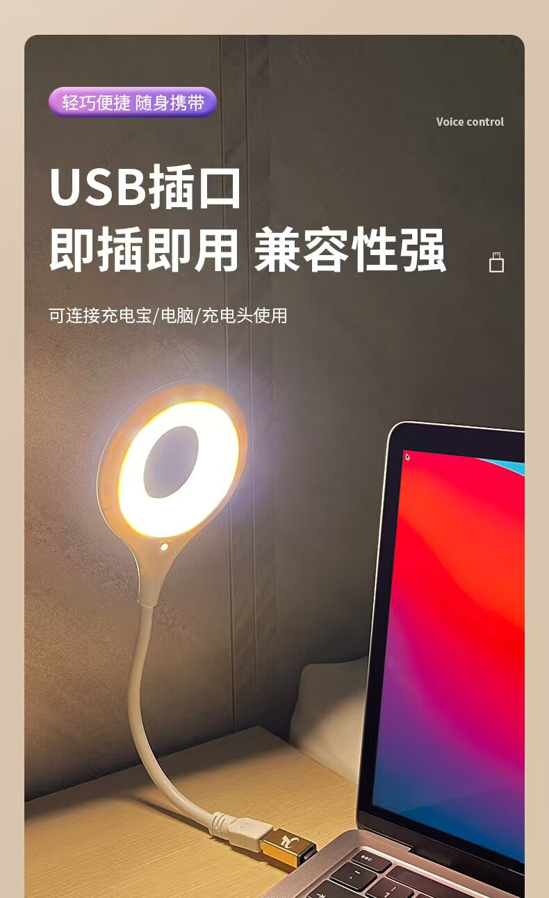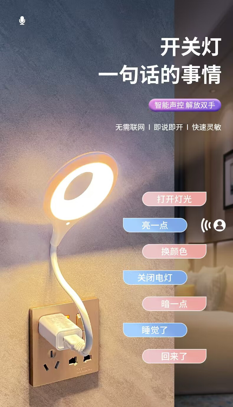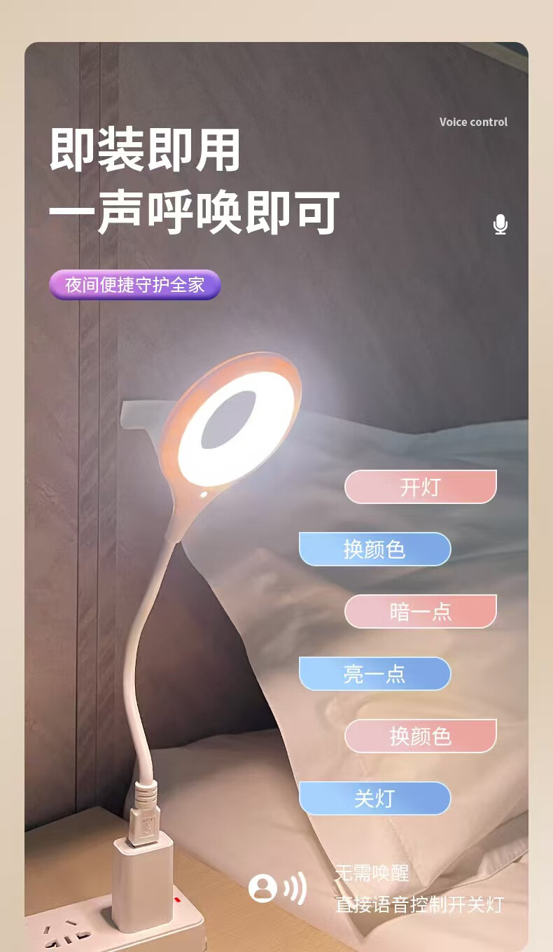 Voice control voice night light LED bedside lamp creative induction lamp small table lamp USB socket artificial intelligence control light intelligent voice control + three-tone lighting 1 pack