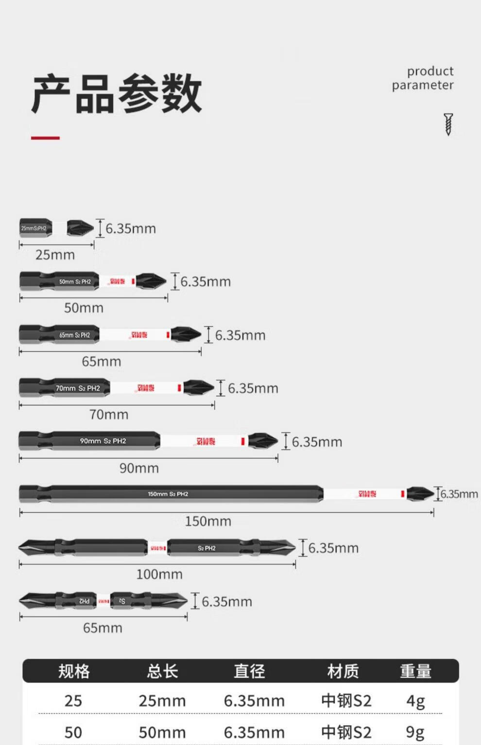 Yingtang Cross Bit Strong Magnetic Anti-Slip Magnet Tungsten Steel High Hardness Electric Batch Electric Screwdriver Anti-Slip Bit Set German High Labor Saving High Efficiency Strong Magnetic Adsorption