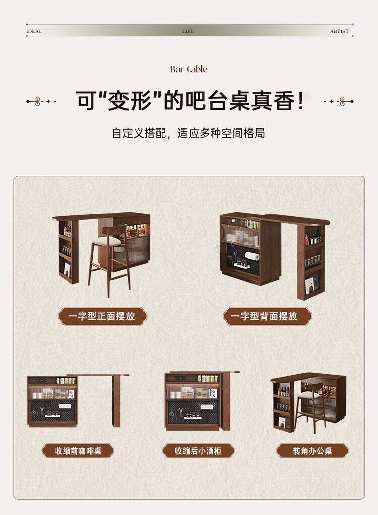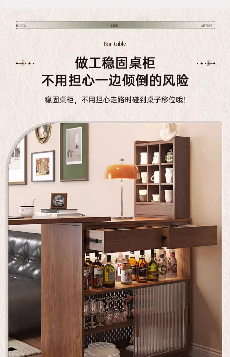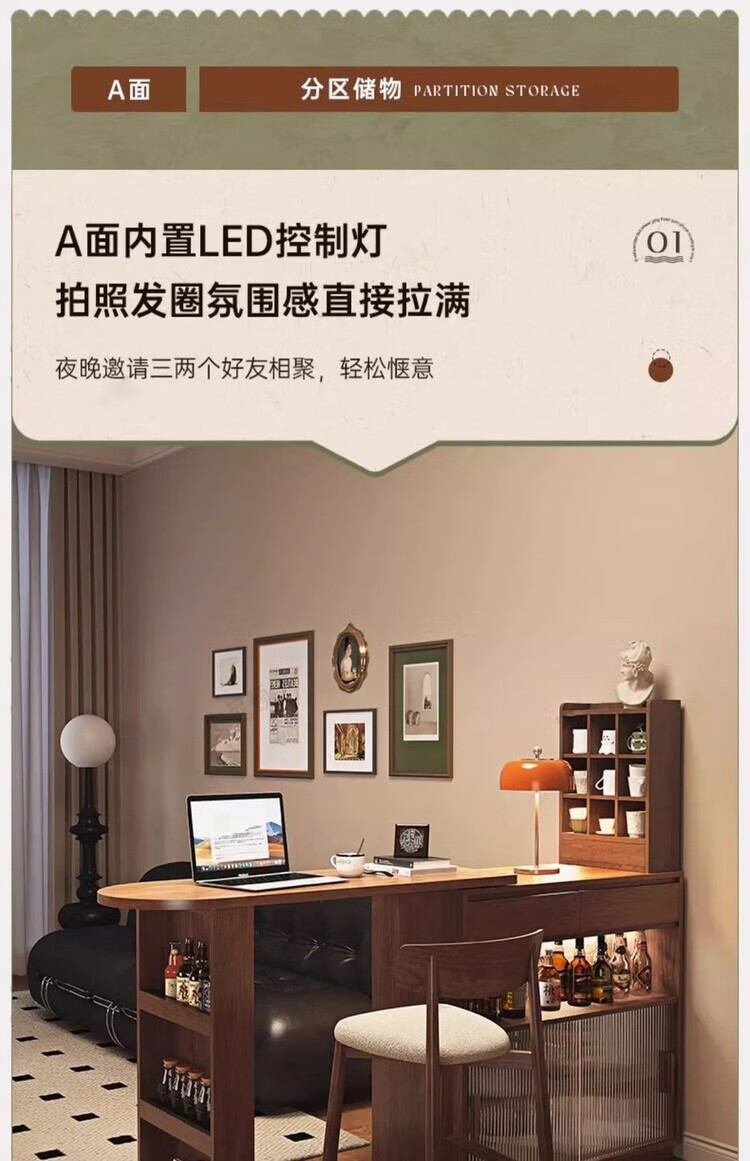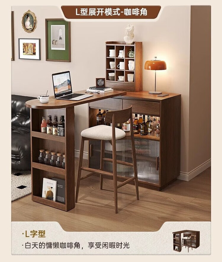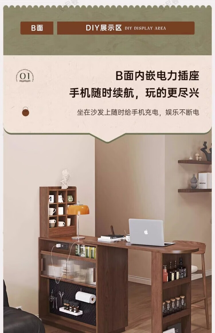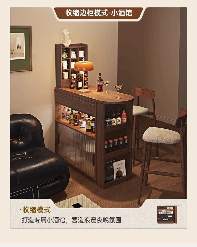 Xianqingyashe living room partition cabinet high-end light luxury bar table household telescopic mobile integrated display cabinet multi-functional restaurant wine cabinet bar cabinet with light + socket.