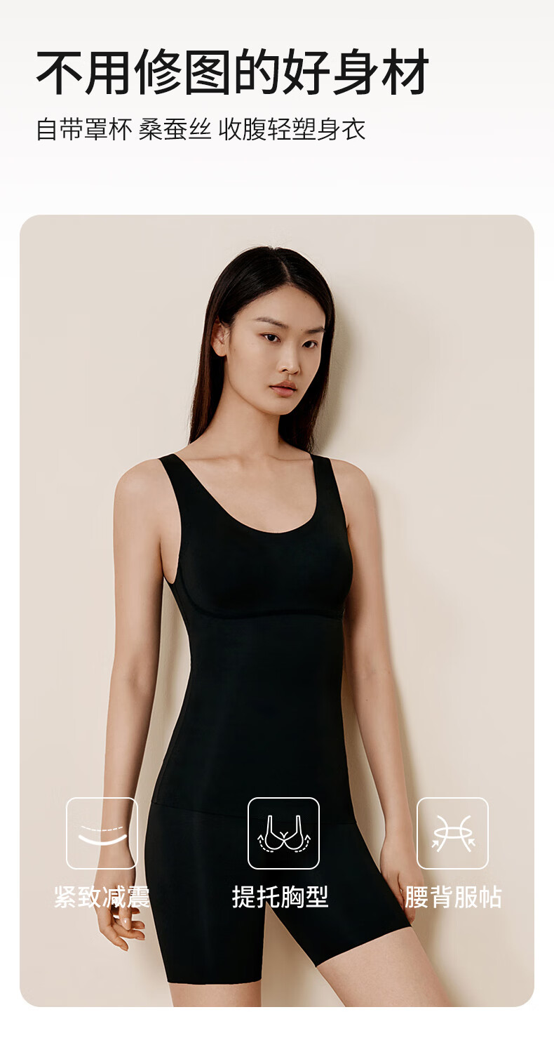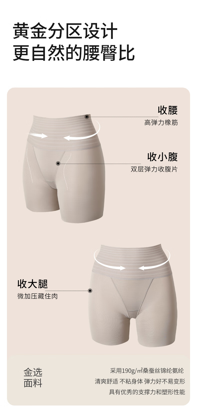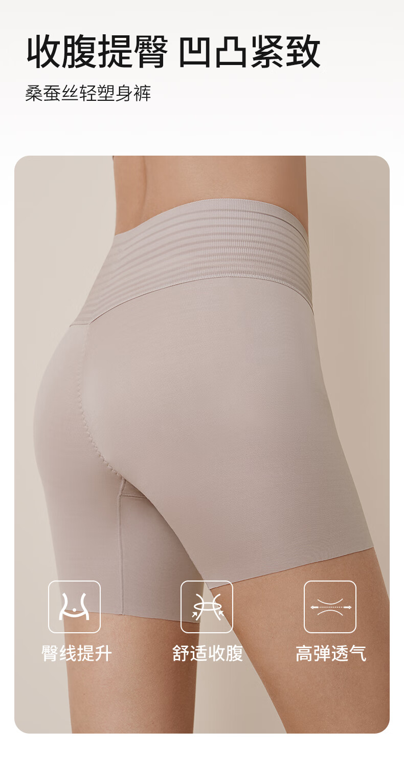 Jin Santa Silk Body Shaping Garment Mulberry Silk Solid Color Light Body Shaping Series Belly Controlling Body Shaping Pants with Cups Beige Shaping Garment XL