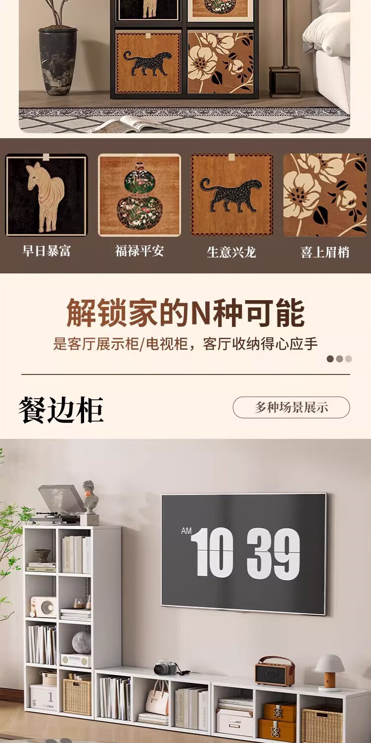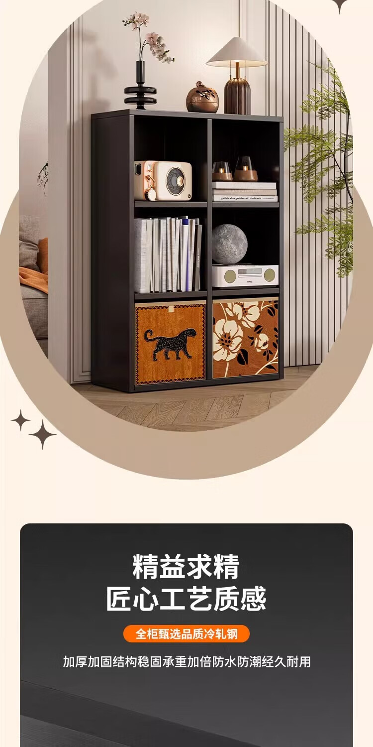 Steel lattice cabinet Kalek bookshelf free combination floor-standing storage rack storage cabinet integrated wall bookcase black - eight horizontal grids