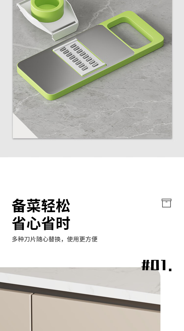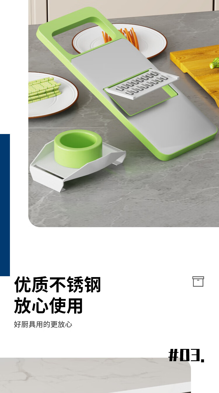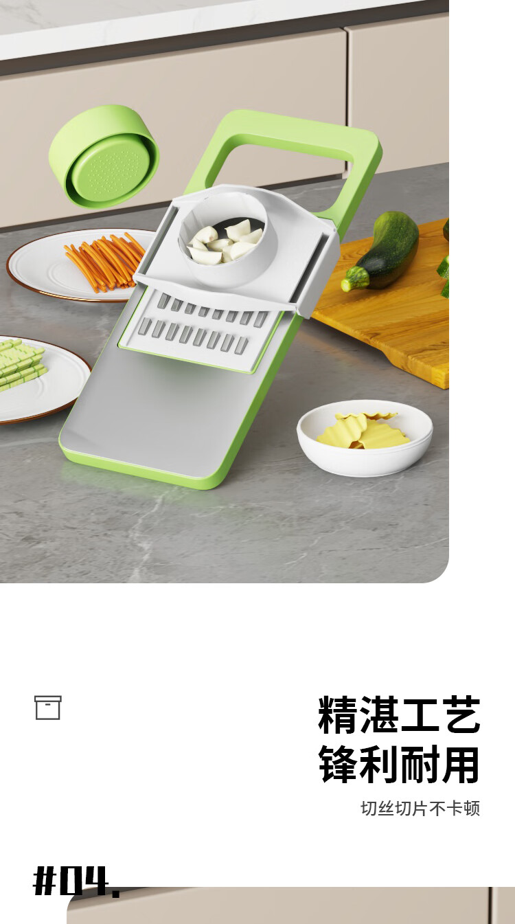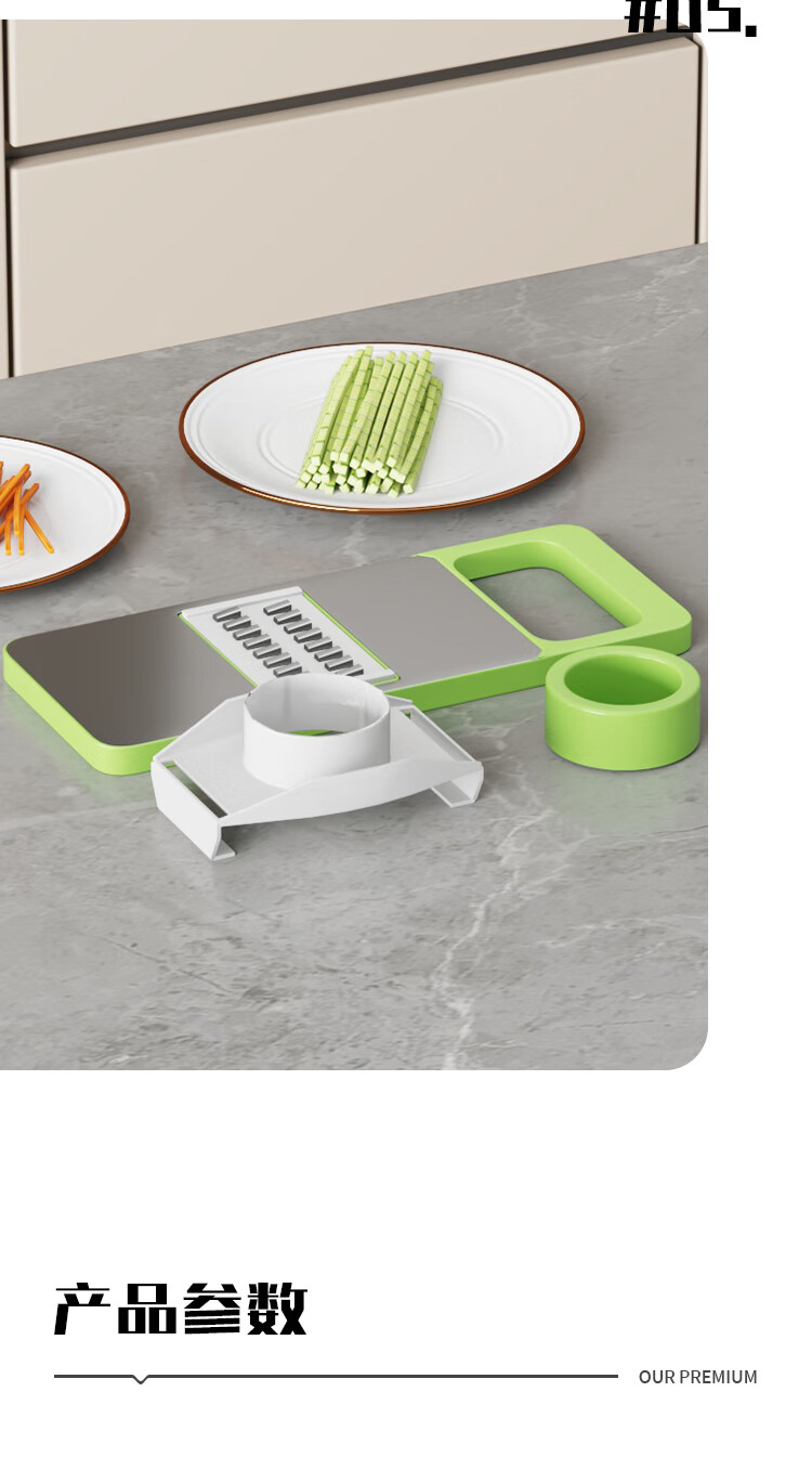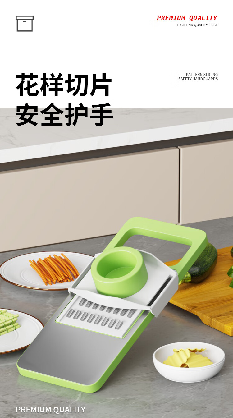 Zhizhi Yifan multifunctional vegetable cutter grater household thick wire kitchen vegetable cutter fast grater artifact slicer grater fresh green 7-piece set 6 blades + hand guard