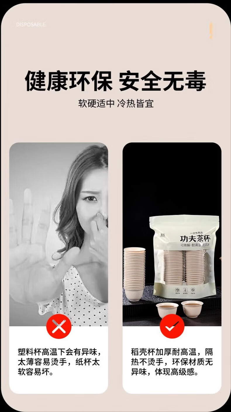 Luluo rice husk disposable tea cup thickened biodegradable kung fu tea cup home hospitality tea cup tasting tea cup high temperature resistant rice husk tea cup 4 pack 200 pieces thickened high temperature resistant