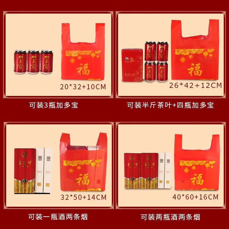 Red garbage bag plastic bag with blessing characters thickened vest portable size medium shopping gift bag packaging custom wholesale 35*55+gold characters+five silks+90 pcs
