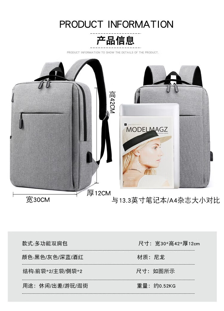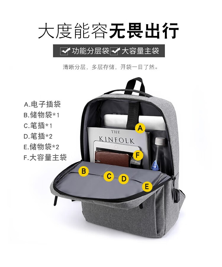 Jingchuan Asahi Computer Bag Backpack Laptop Backpack Men's and Women's 16-inch School Bag Junior High School and High School College Student Large Capacity Bag Black 16-inch Standard Edition