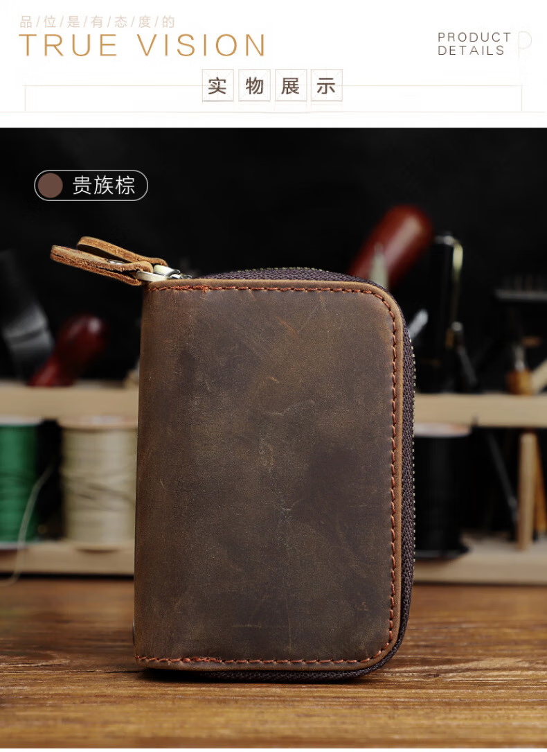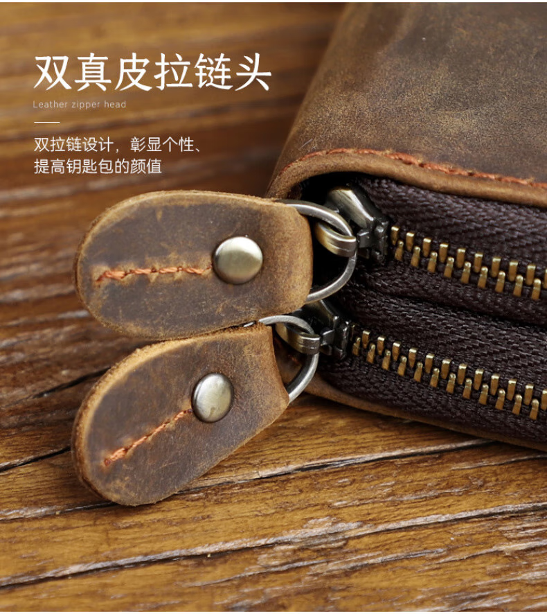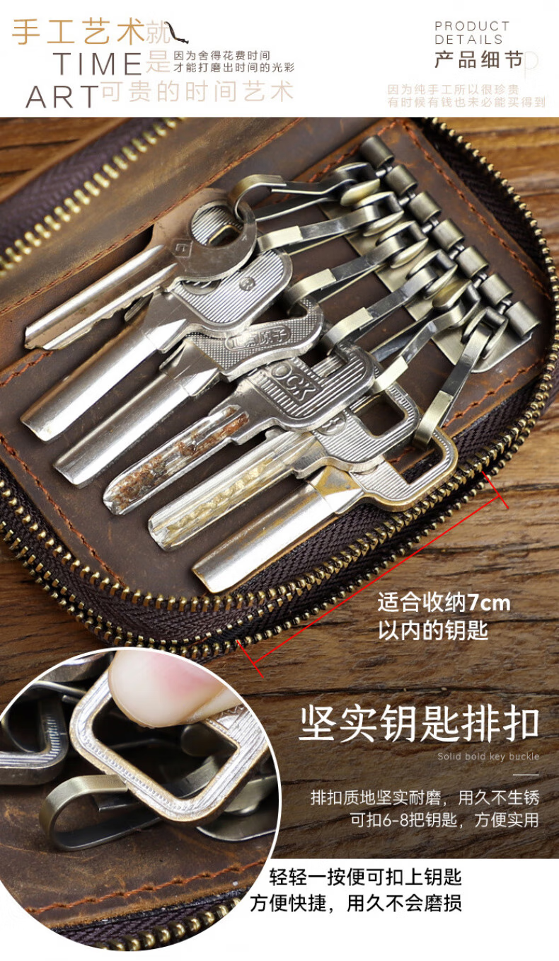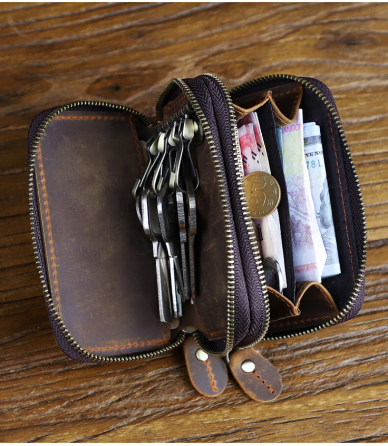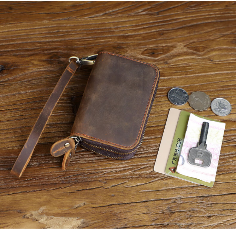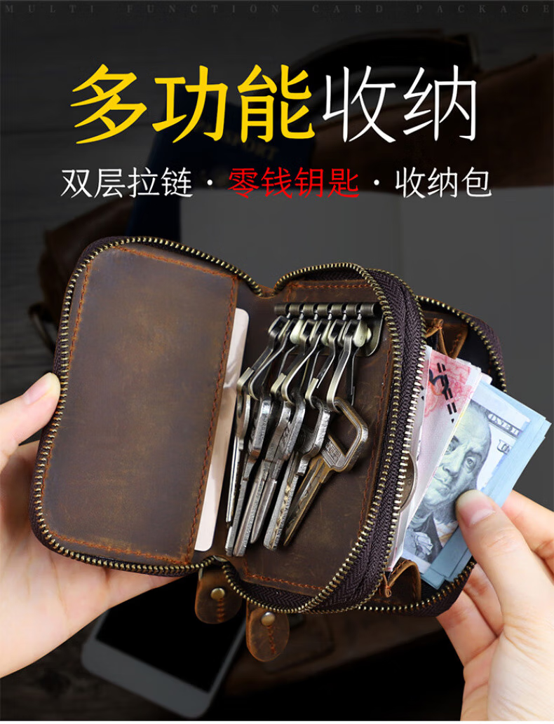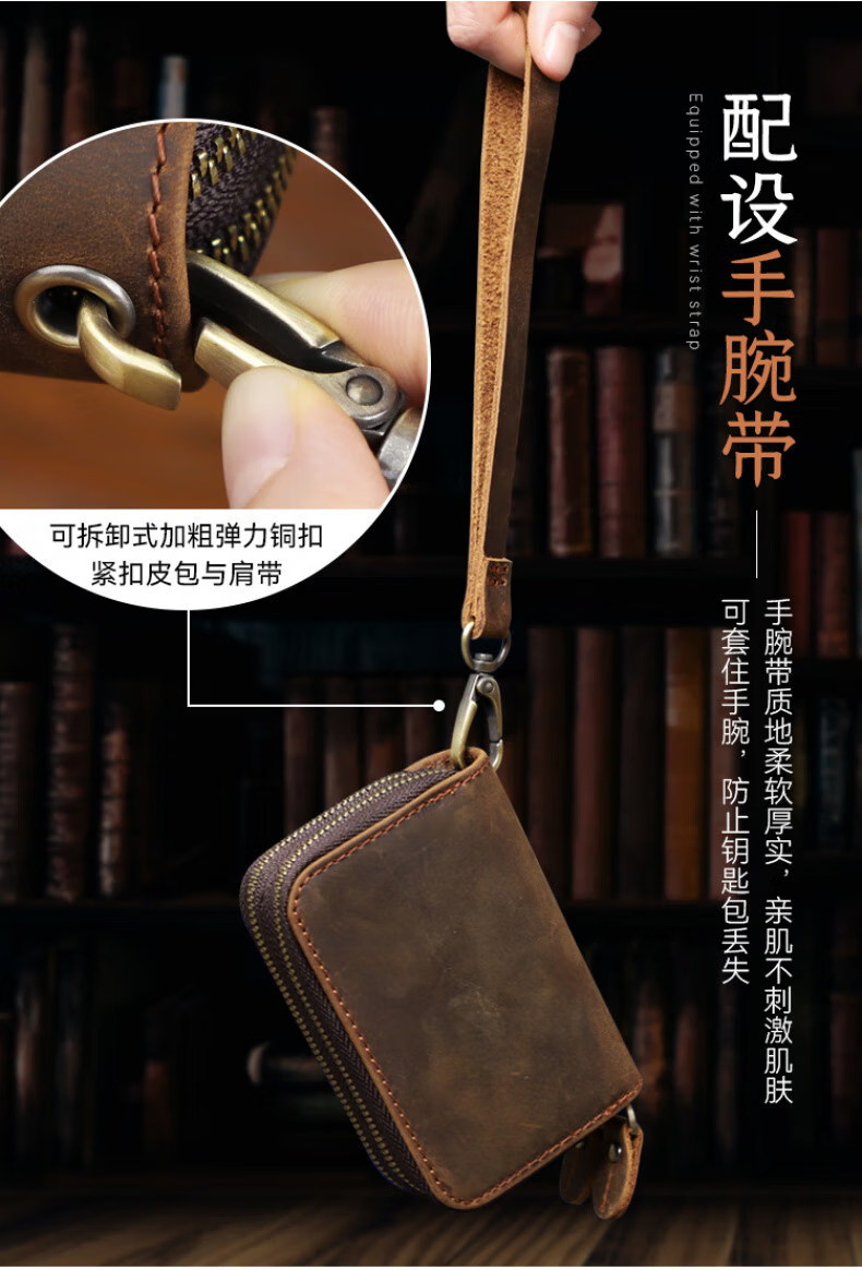 Liyou high-end quality key bag storage bag handmade genuine leather key bag men's first layer cowhide multifunctional retro wallet noble brown