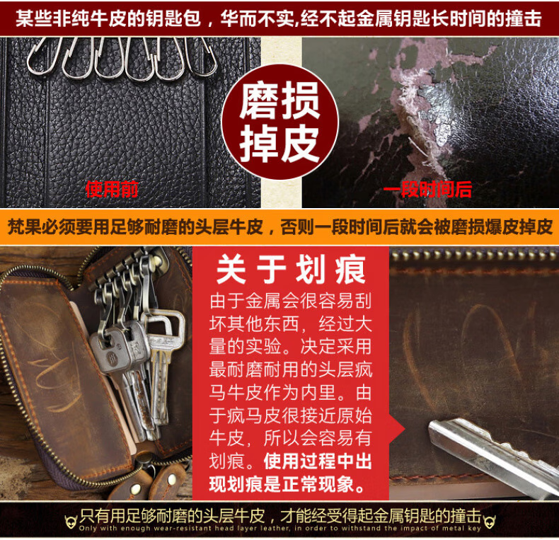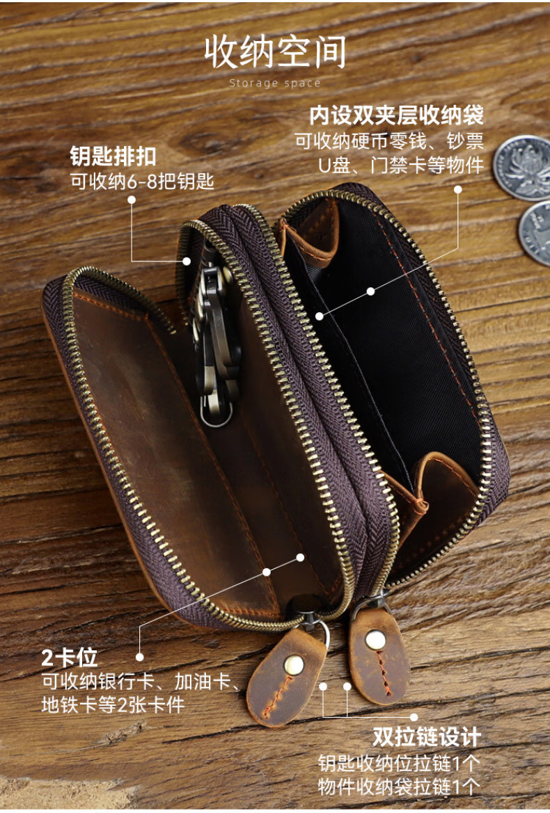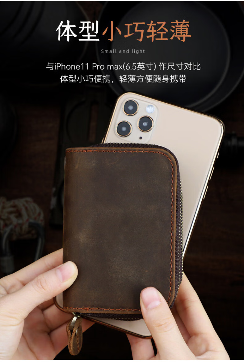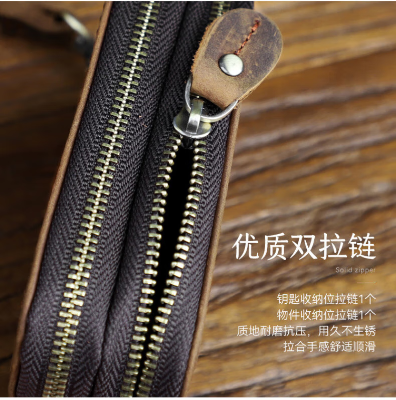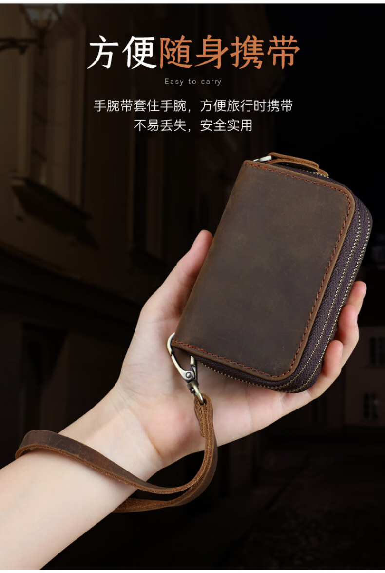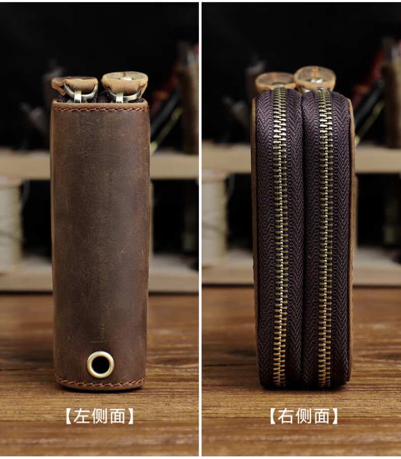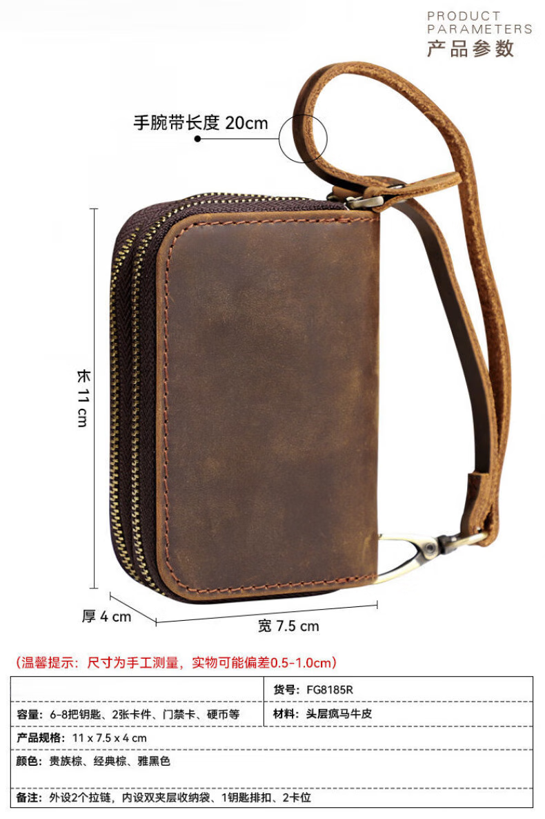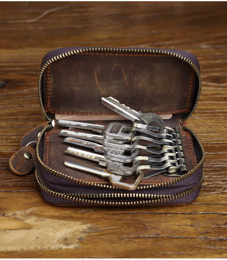 Liyou high-end quality key bag storage bag handmade genuine leather key bag men's first layer cowhide multifunctional retro wallet noble brown