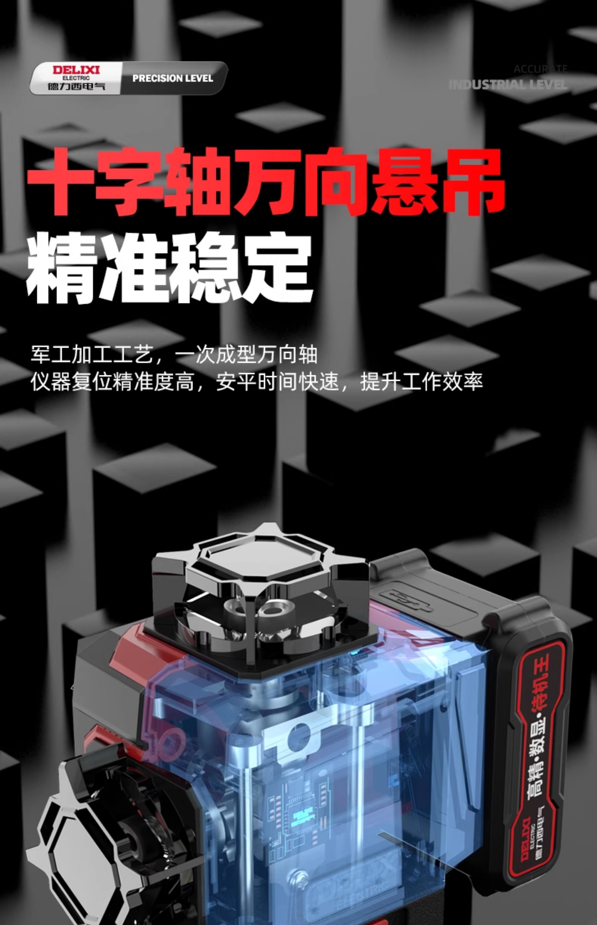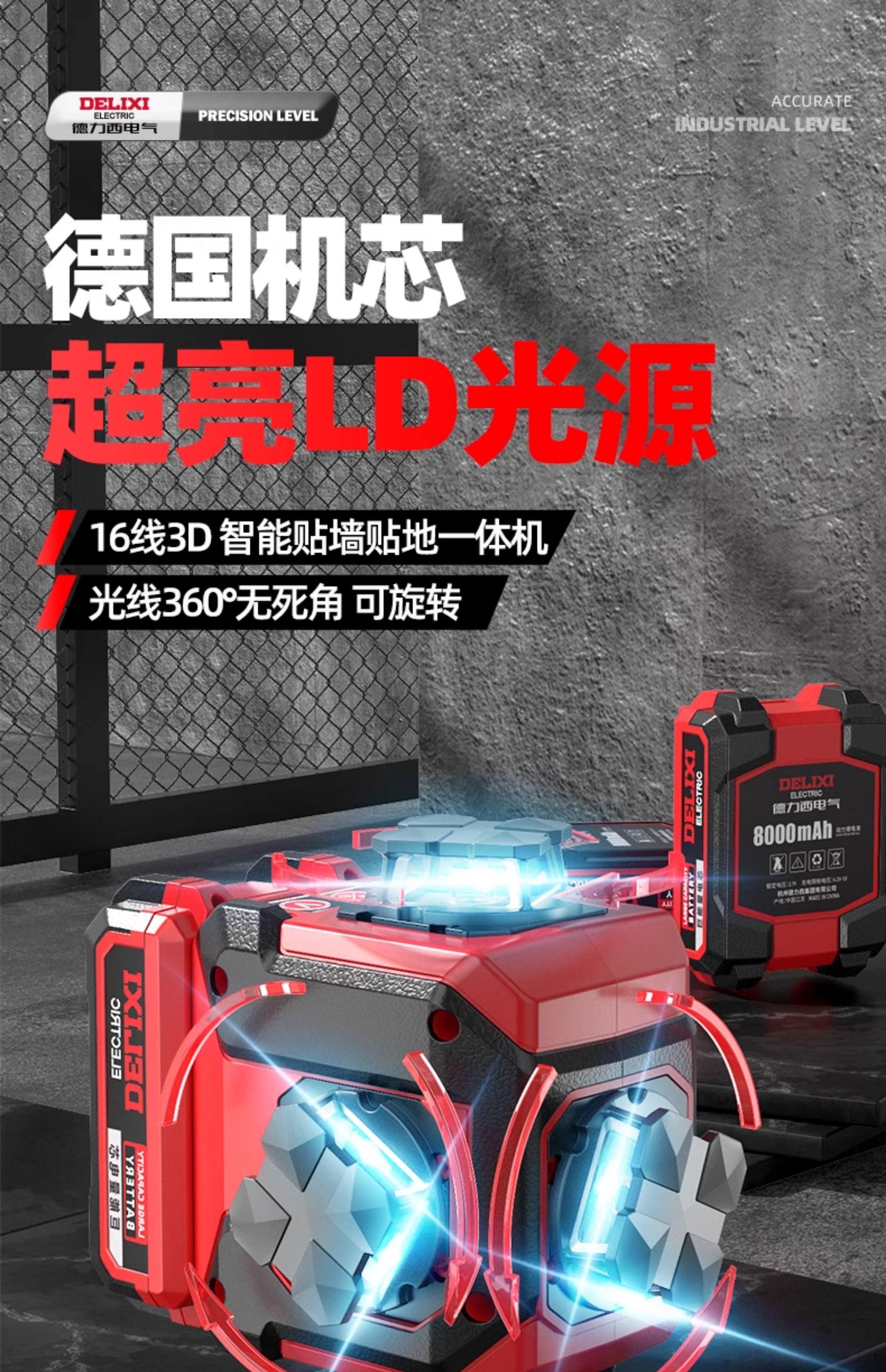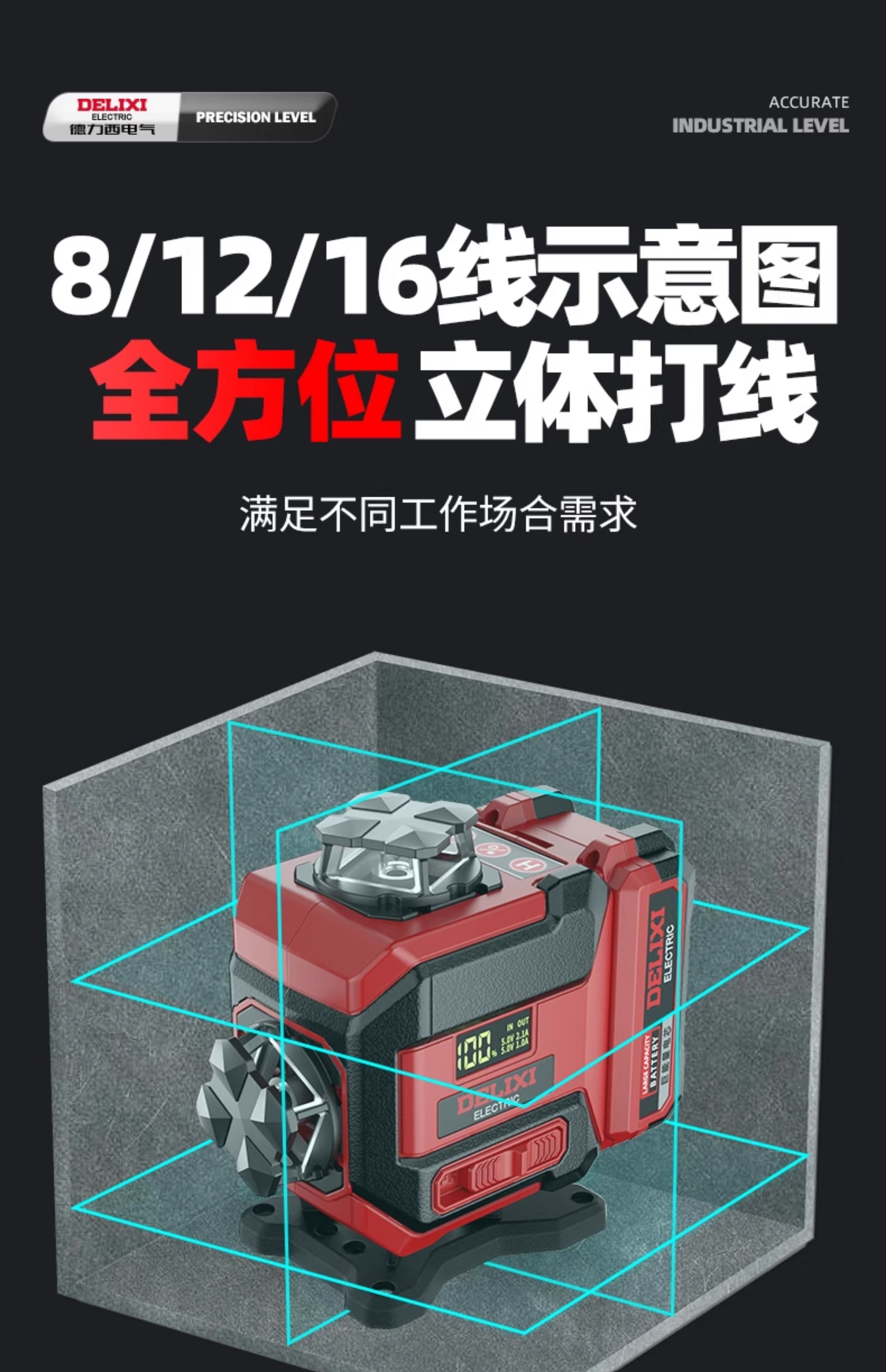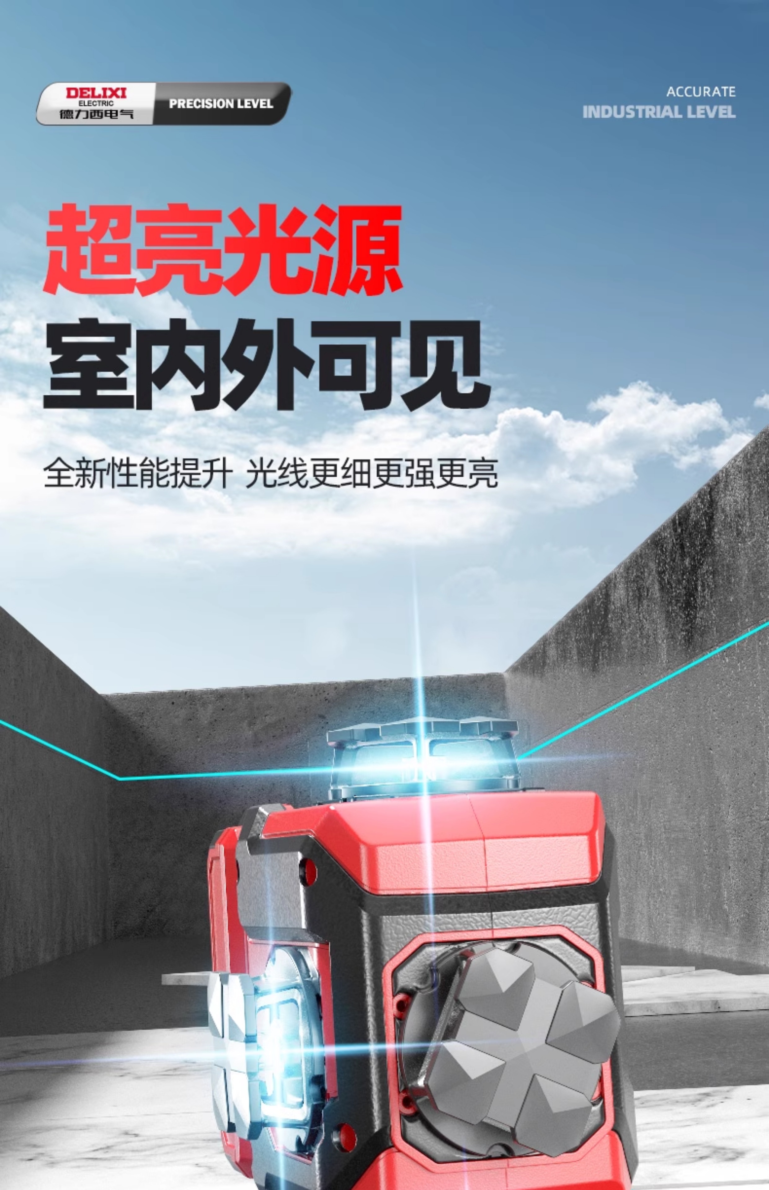 Delixi infrared level meter high-precision strong light thin line automatic leveling rotating water meter outdoor green light laser outdoor green light 8 lines 8000 giant battery dual battery