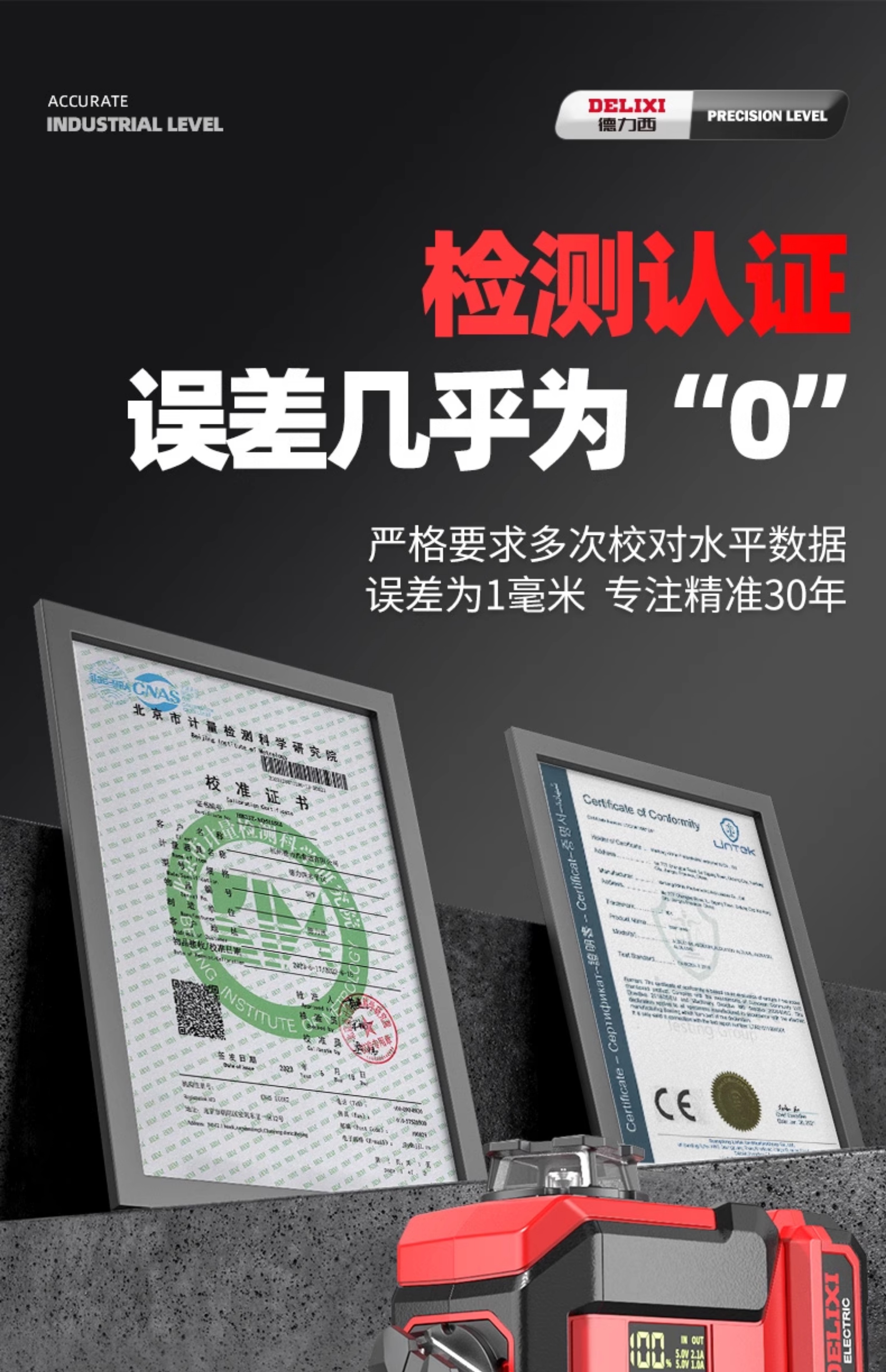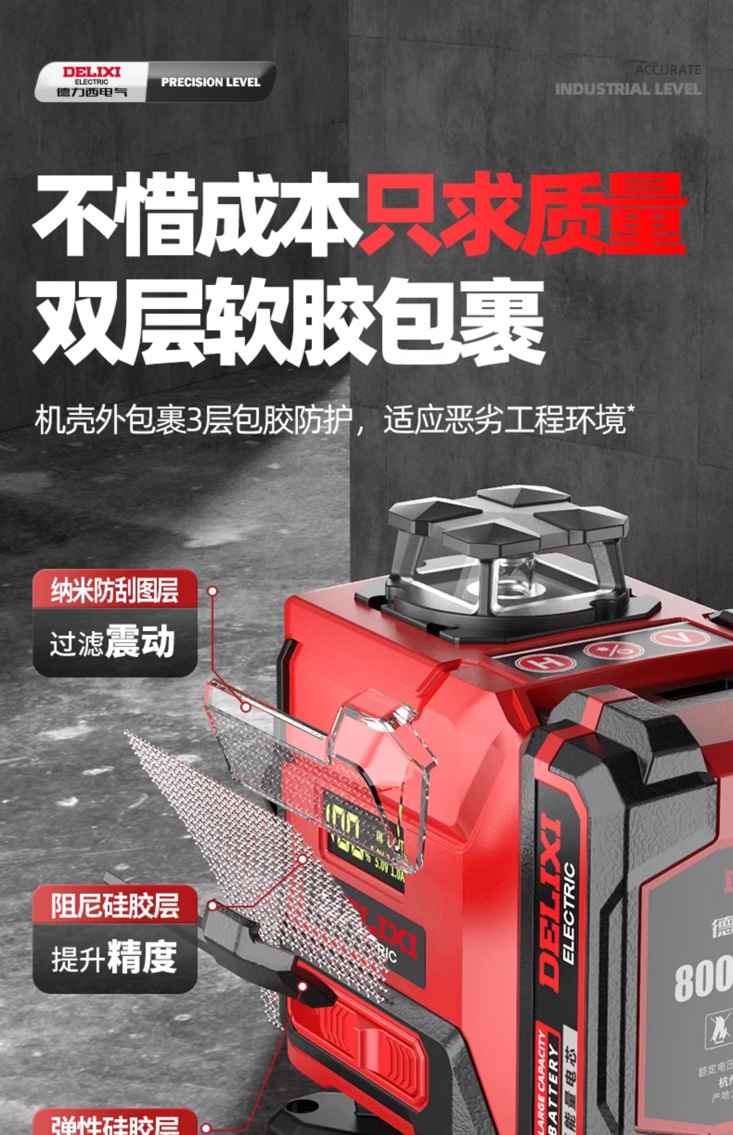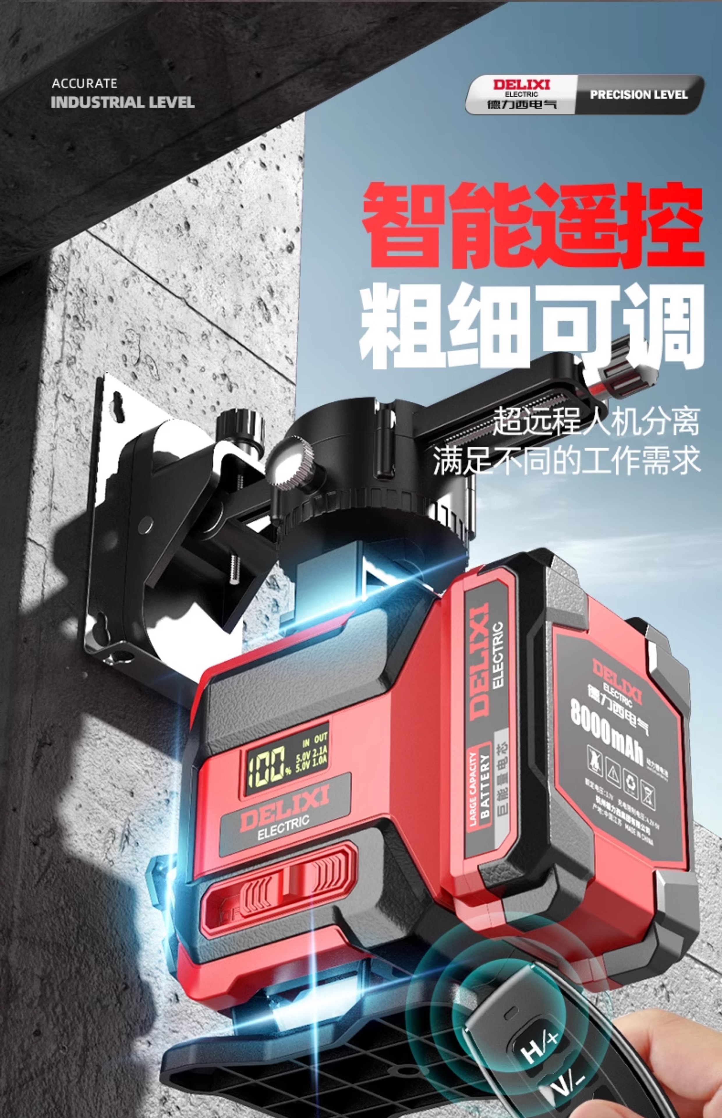 Delixi infrared level meter high-precision strong light thin line automatic leveling rotating water meter outdoor green light laser outdoor green light 8 lines 8000 giant battery dual battery