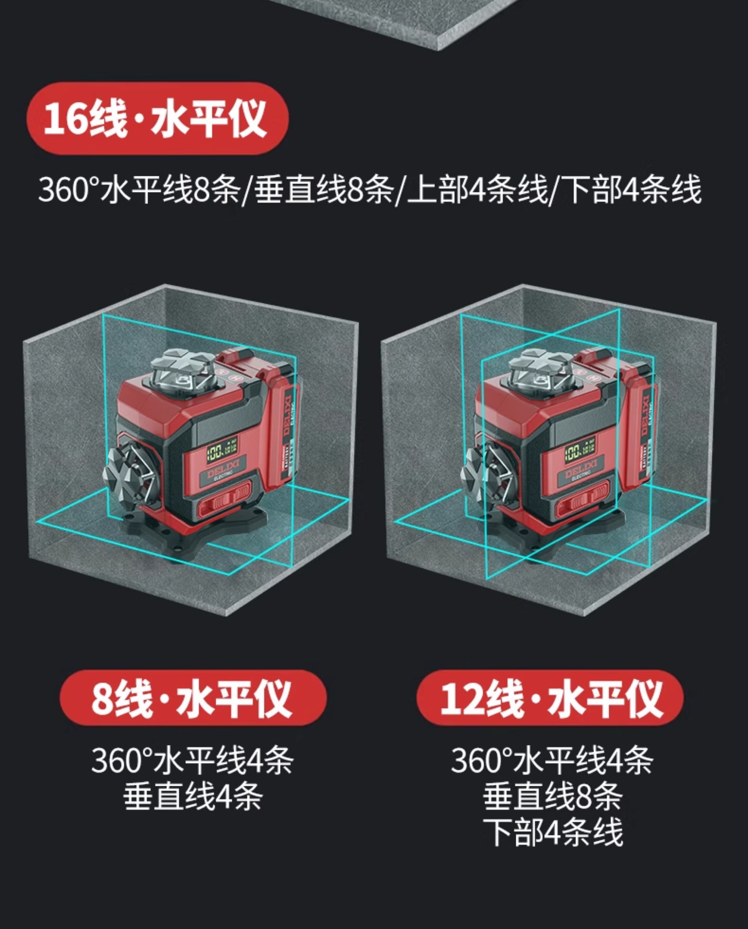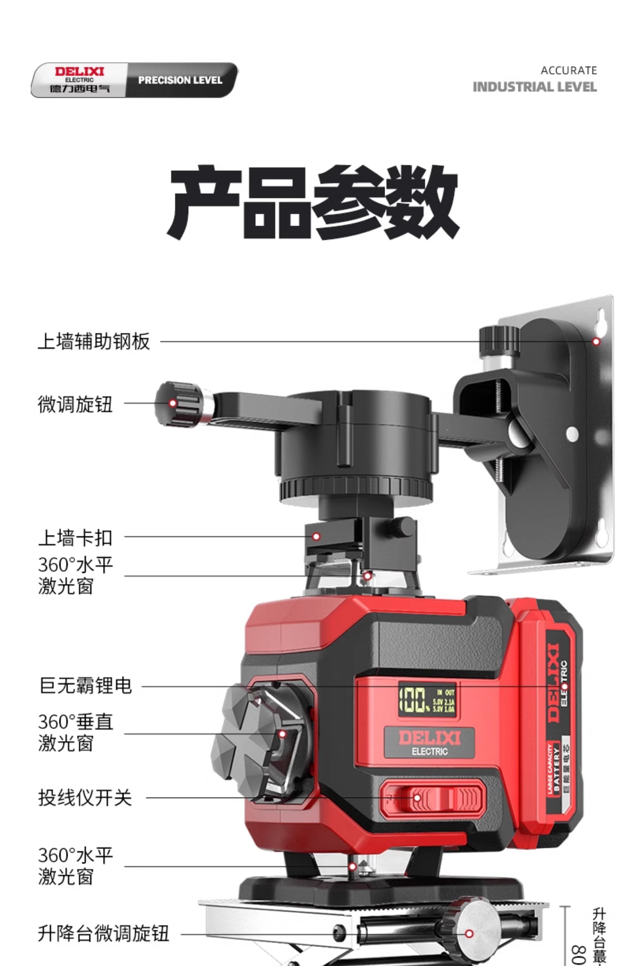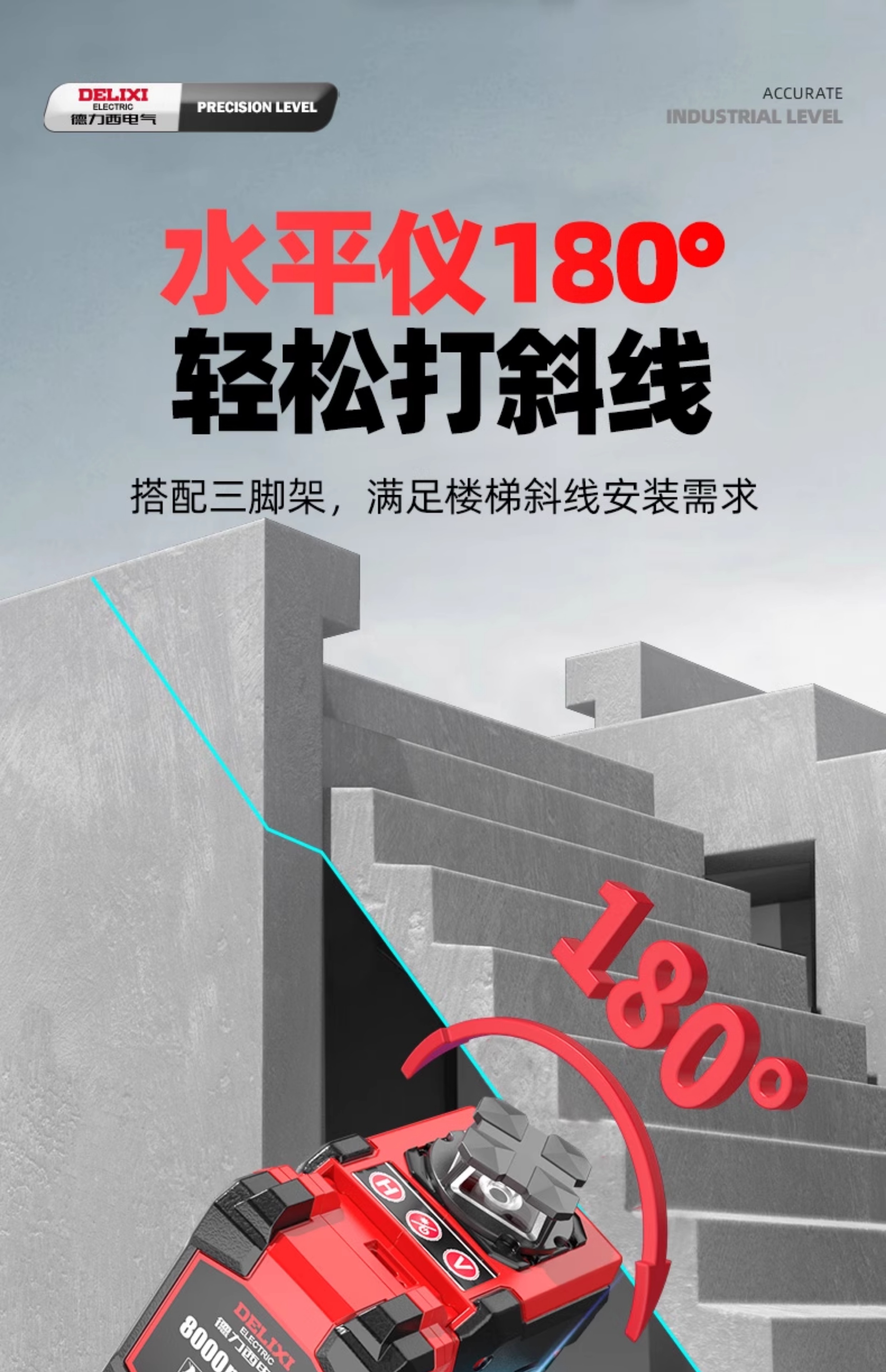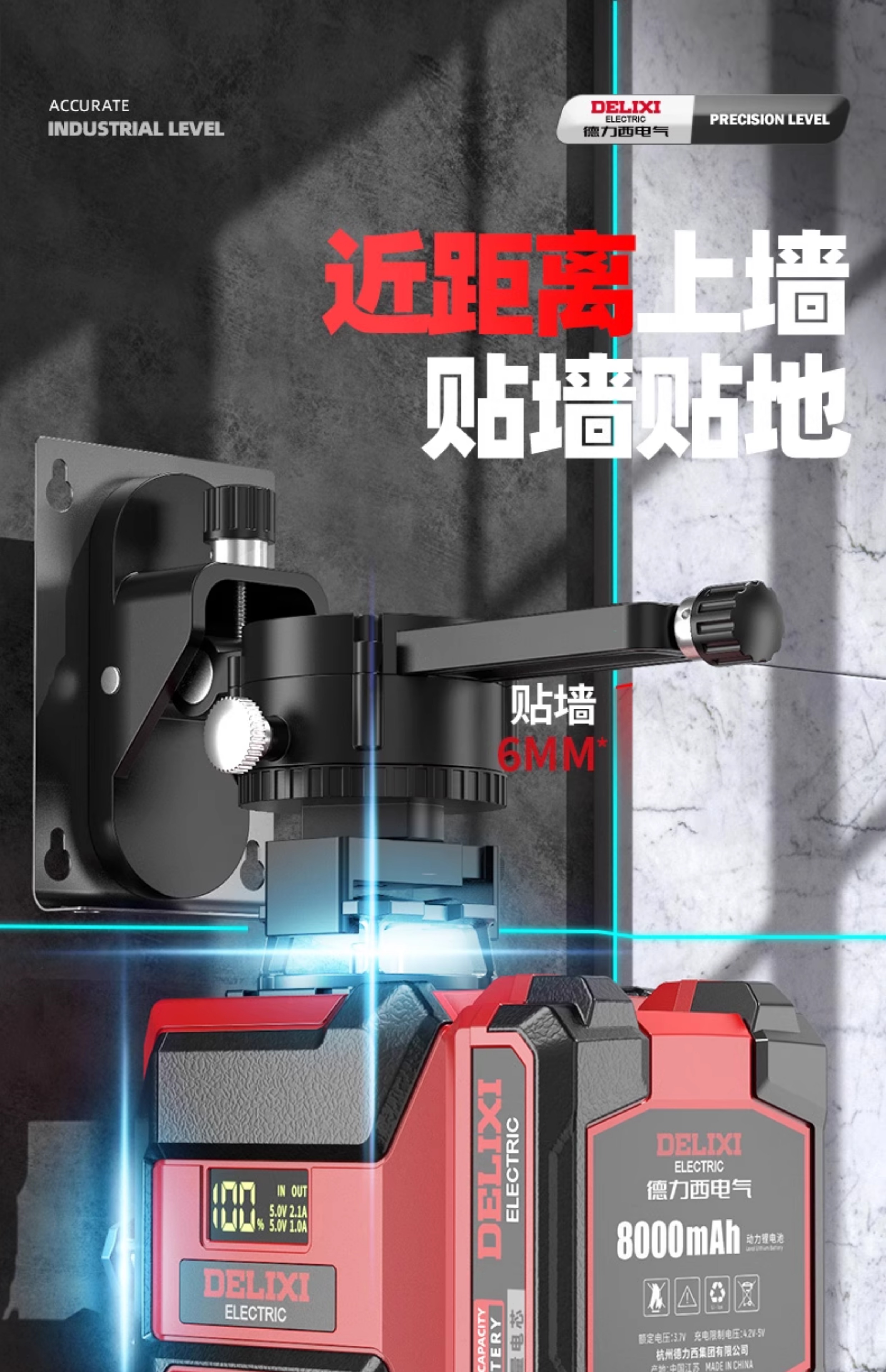 Delixi infrared level meter high-precision strong light thin line automatic leveling rotating water meter outdoor green light laser outdoor green light 8 lines 8000 giant battery dual battery