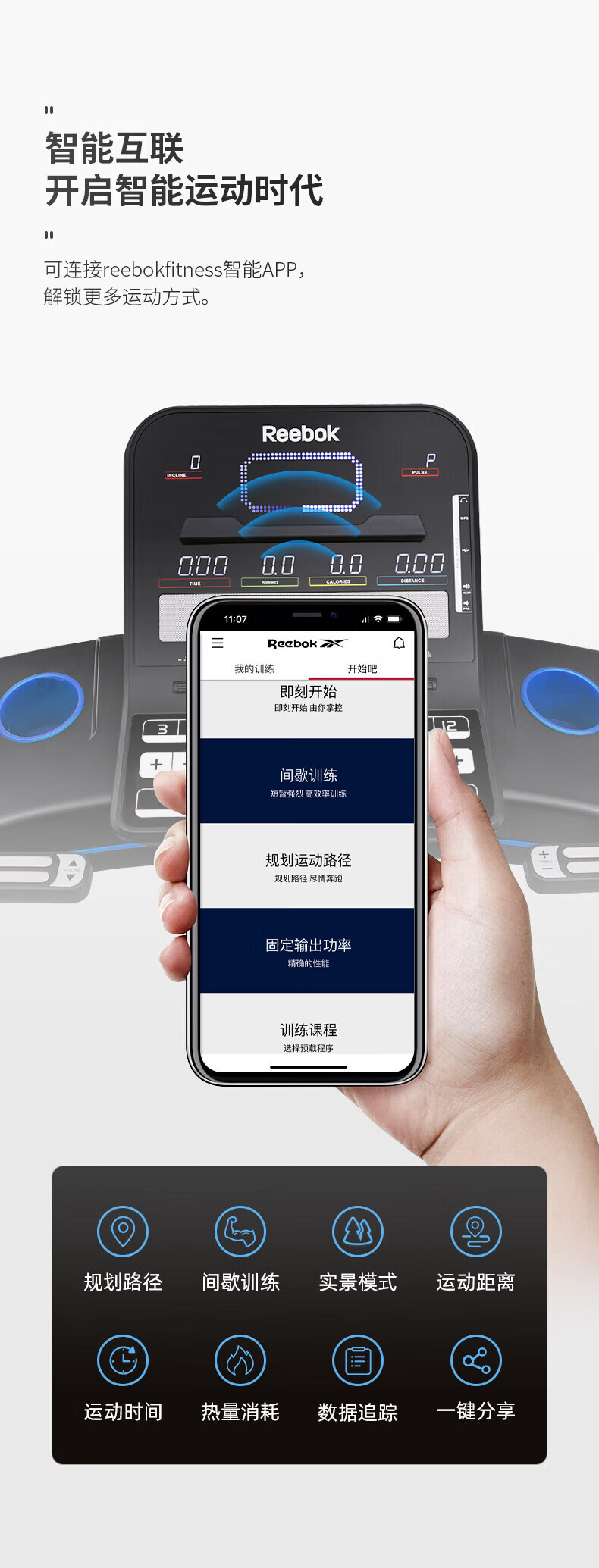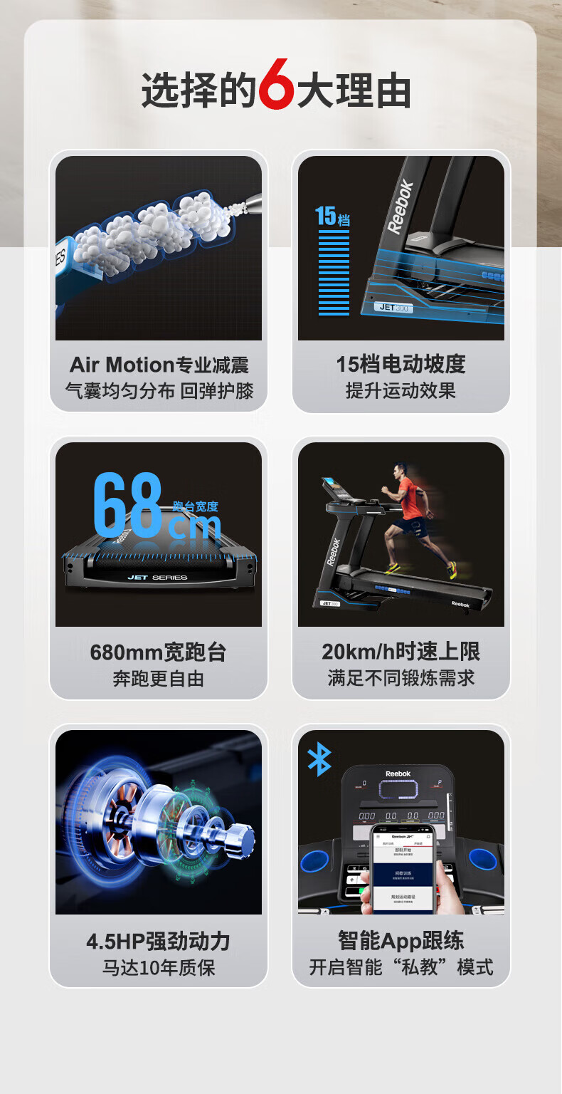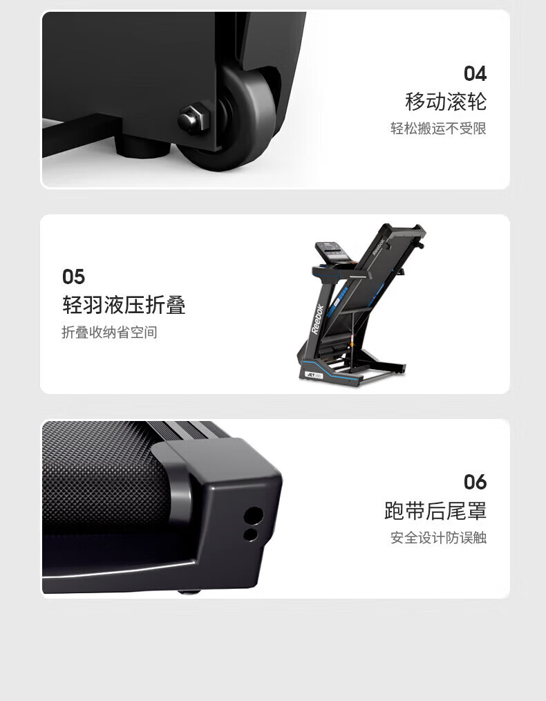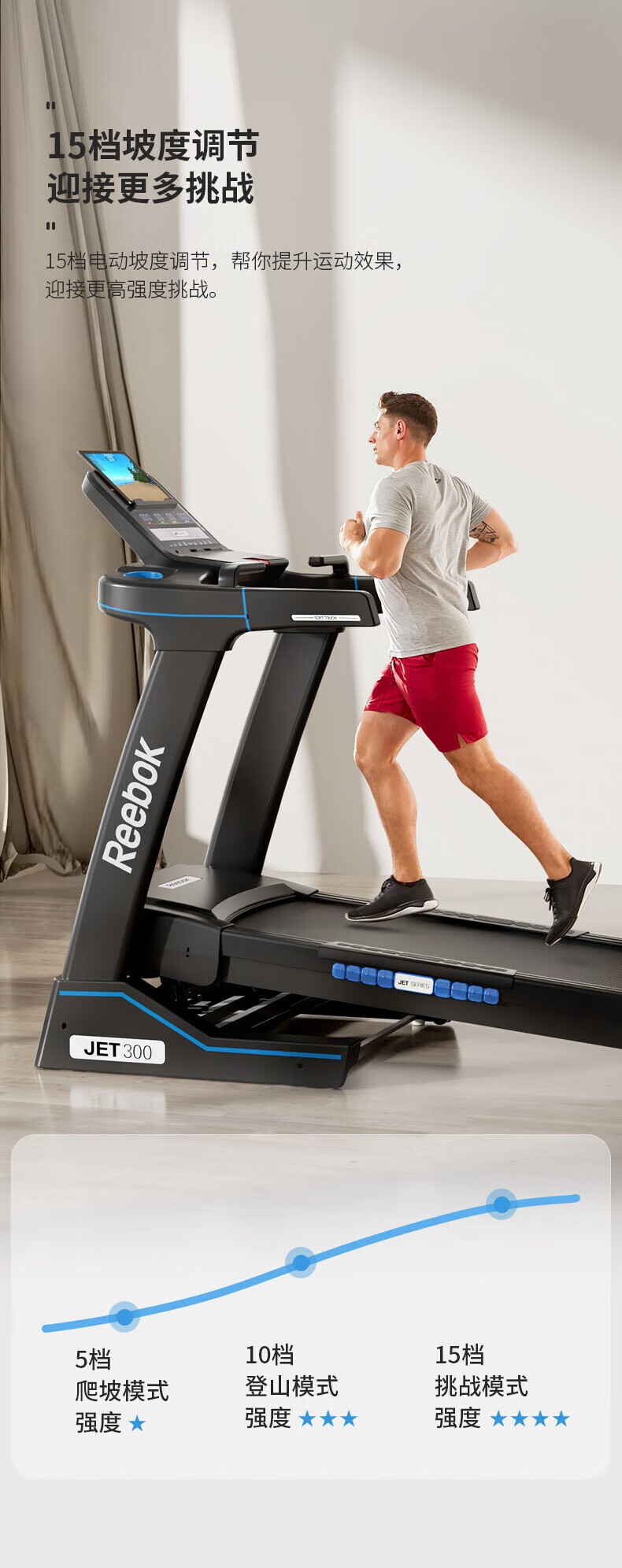 Reebok (RUIBUOK) treadmill home aerobic climbing shock absorption multi-functional gym indoor sports equipment jet300 black 5