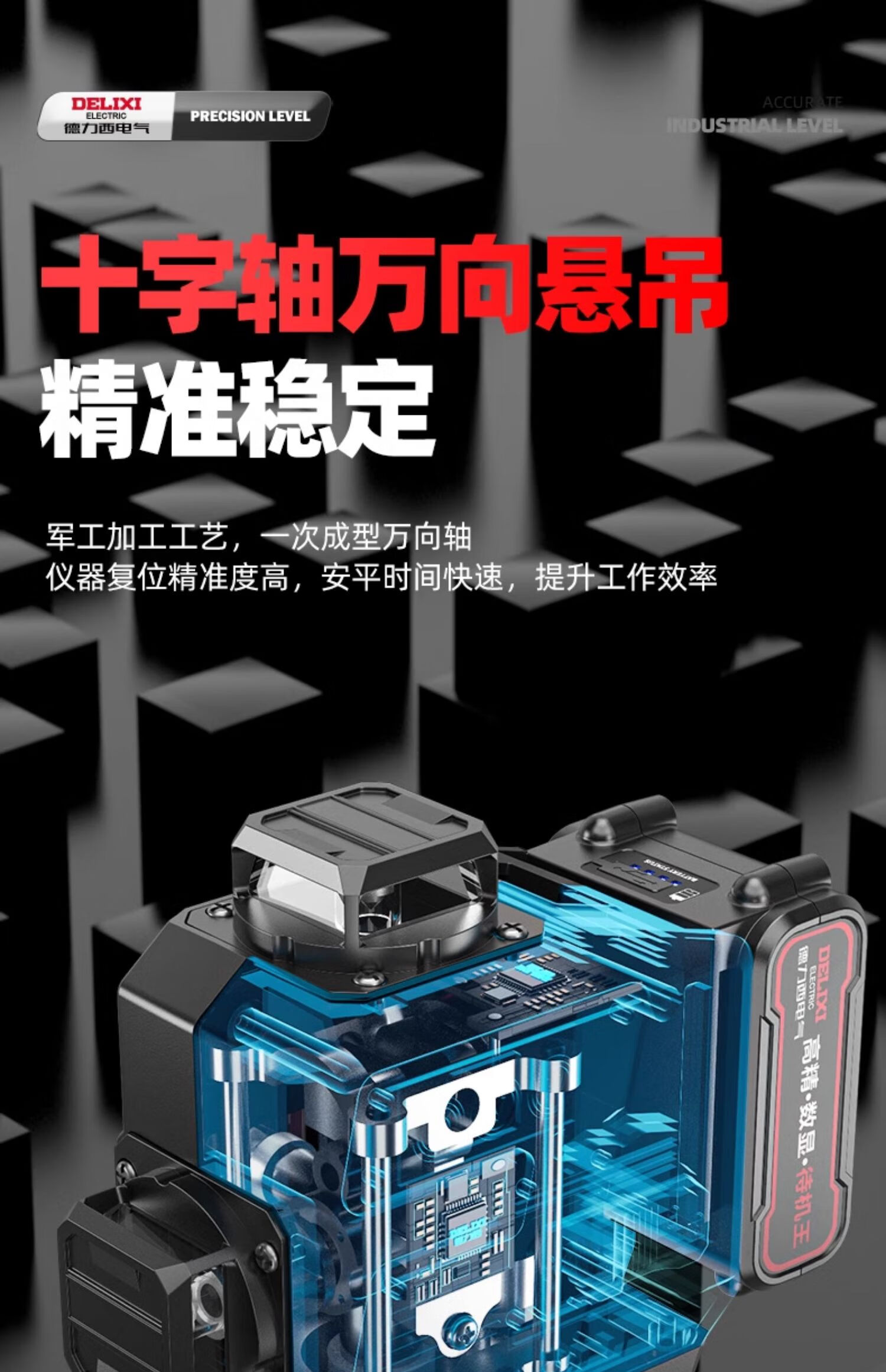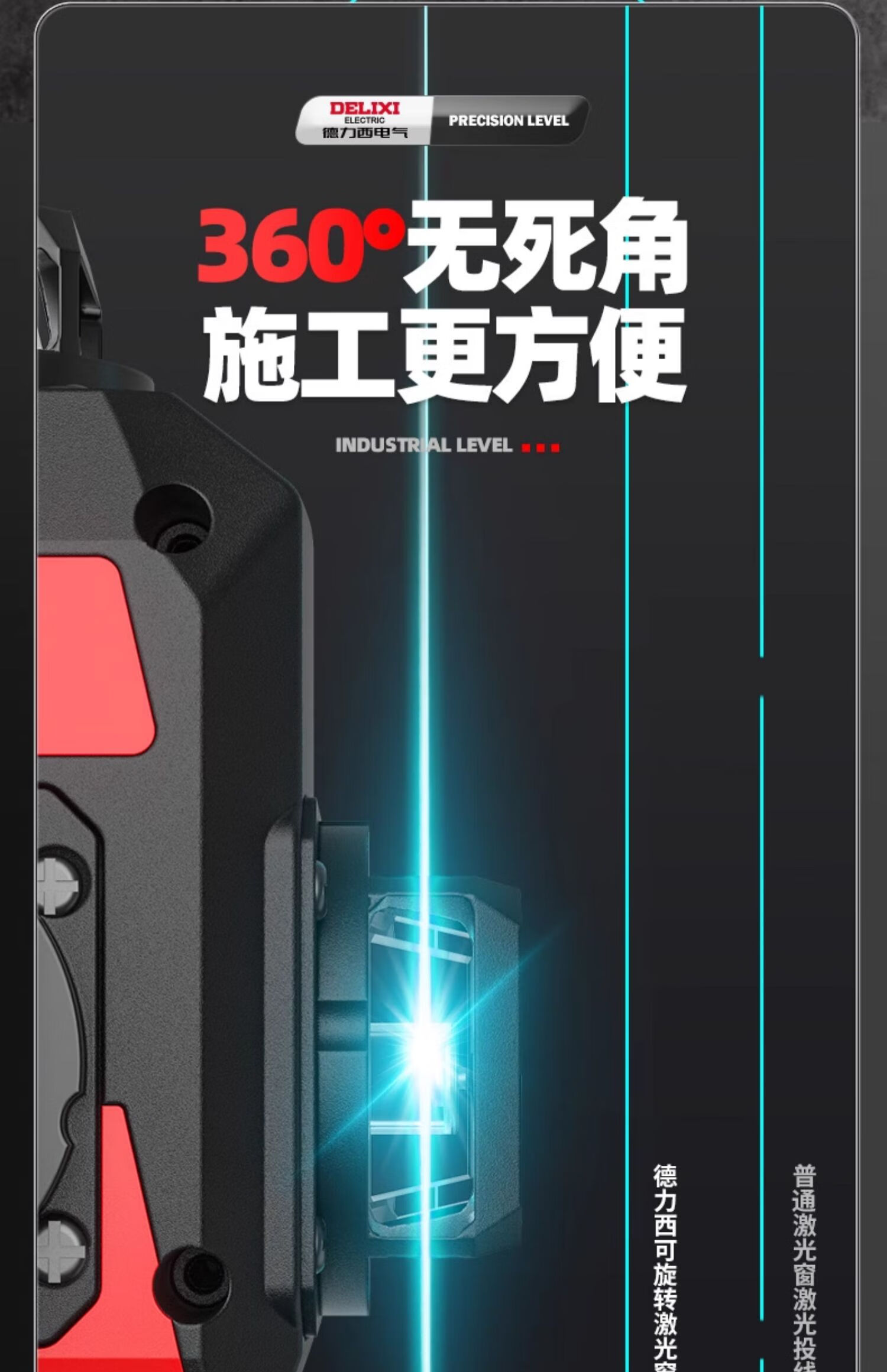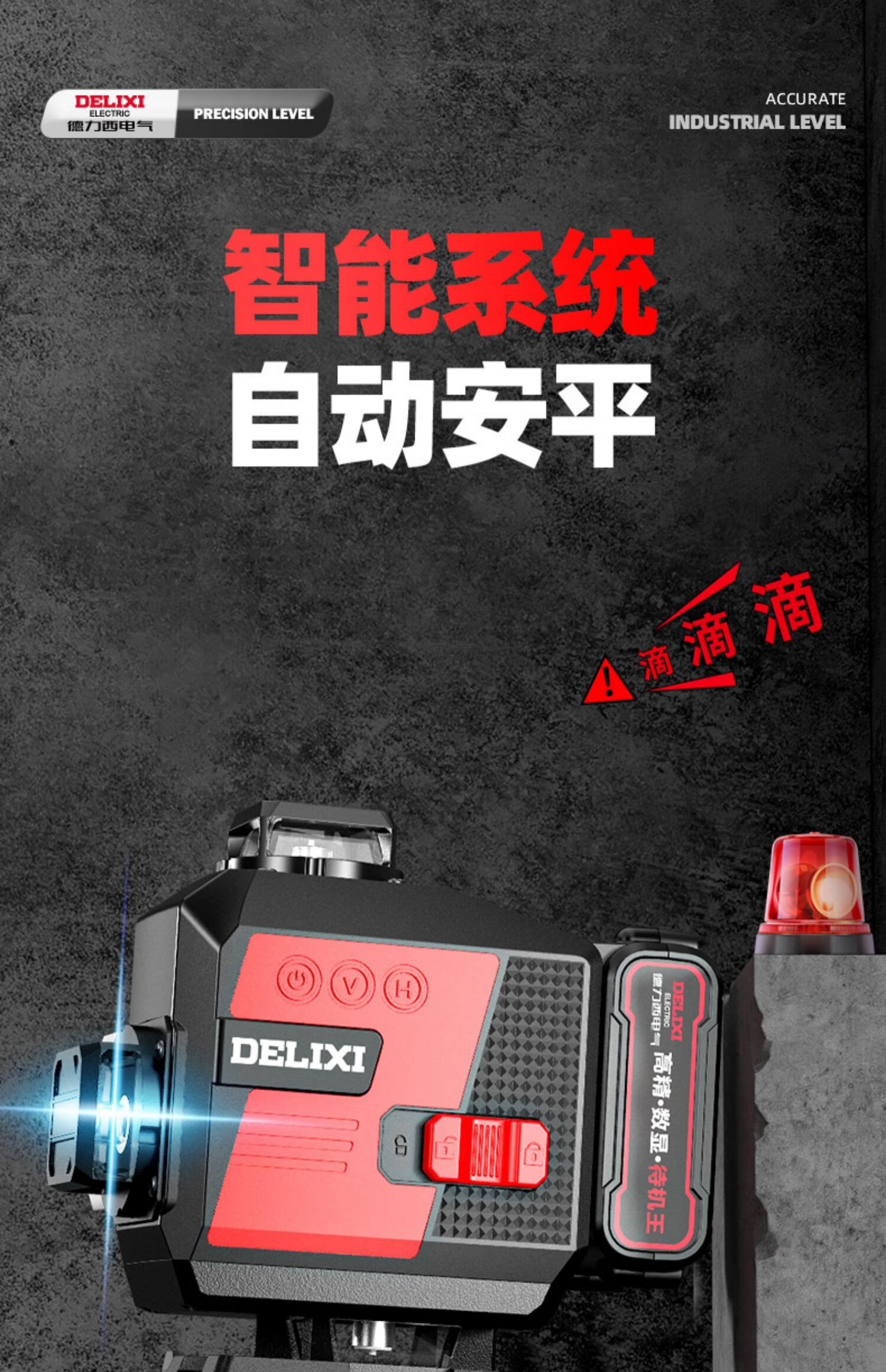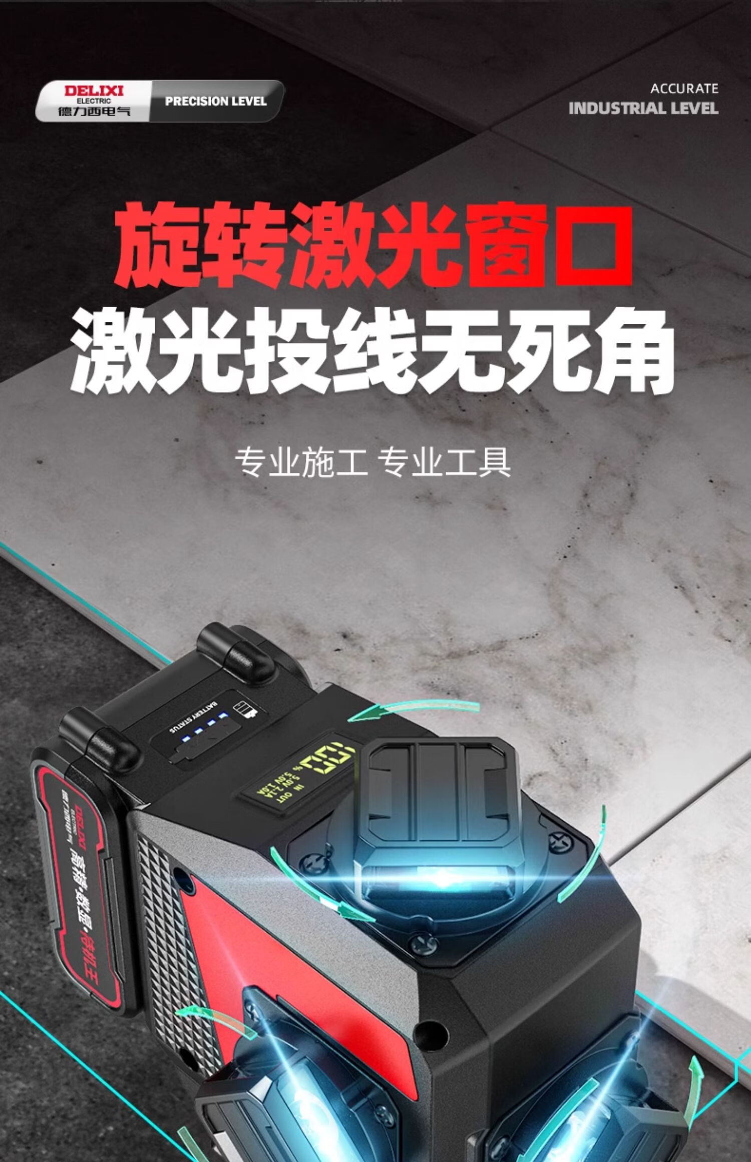 Delixi 12 Laser Infrared Level Rotating No Blind Zone High-Precision Strong Light Thin Line Automatic Leveling Water Meter Super Green Light 8 Lines + Big Mac Dual Electric Standard Set