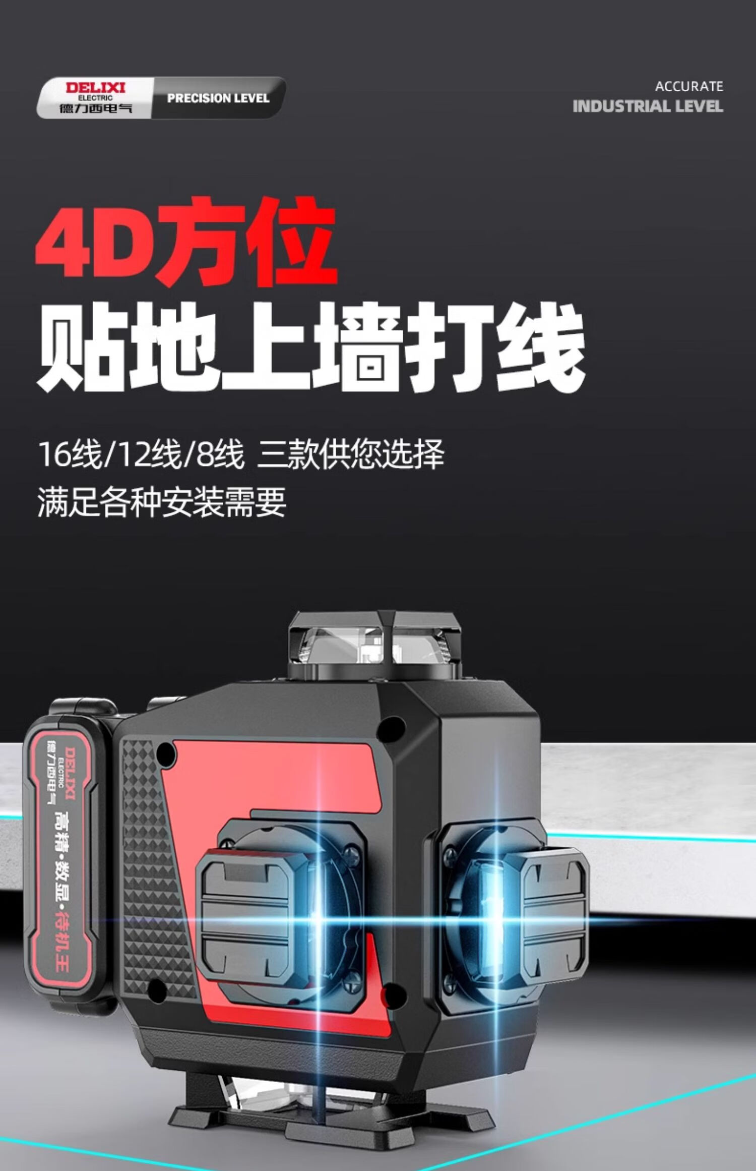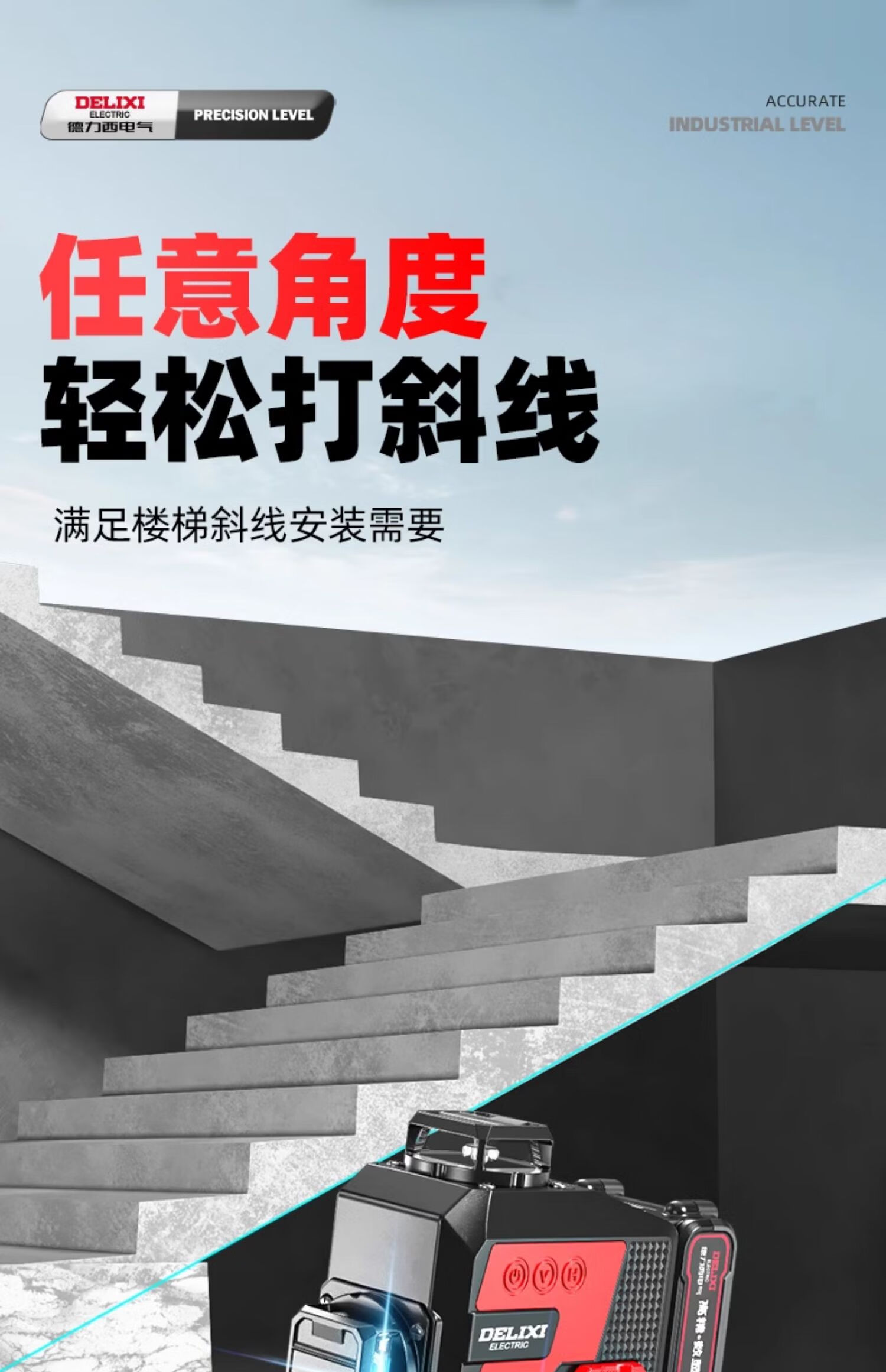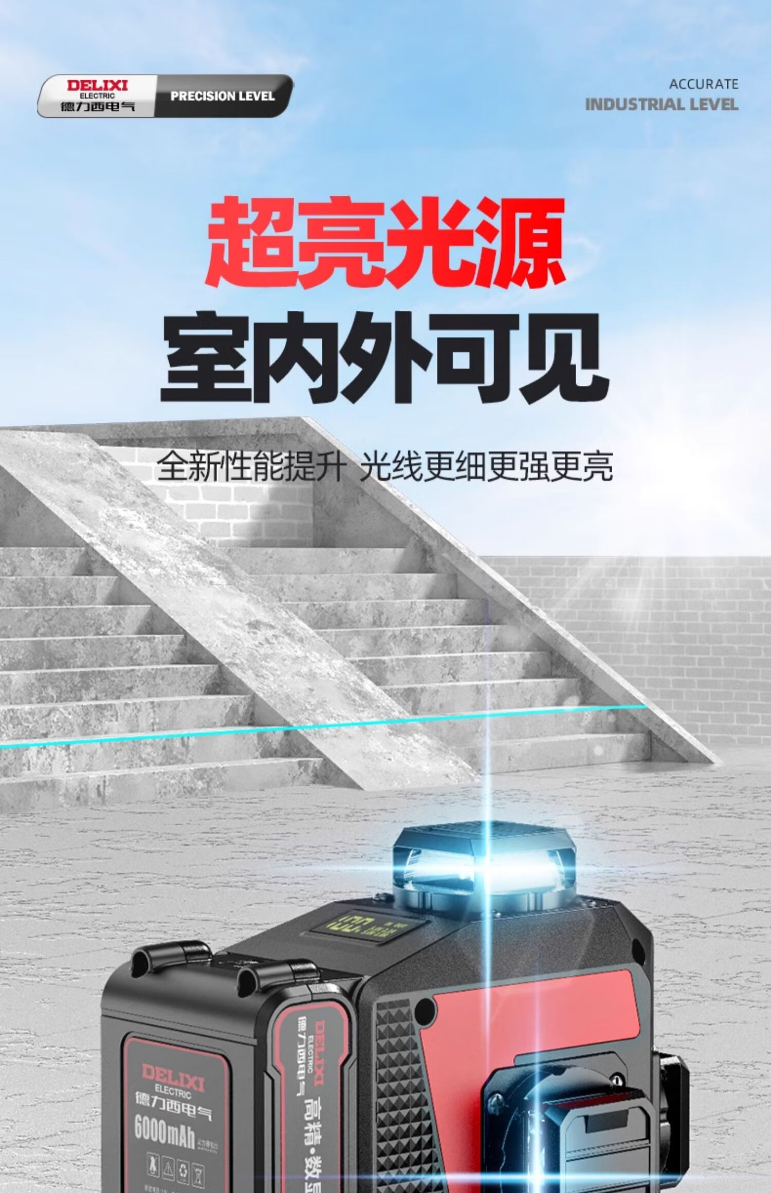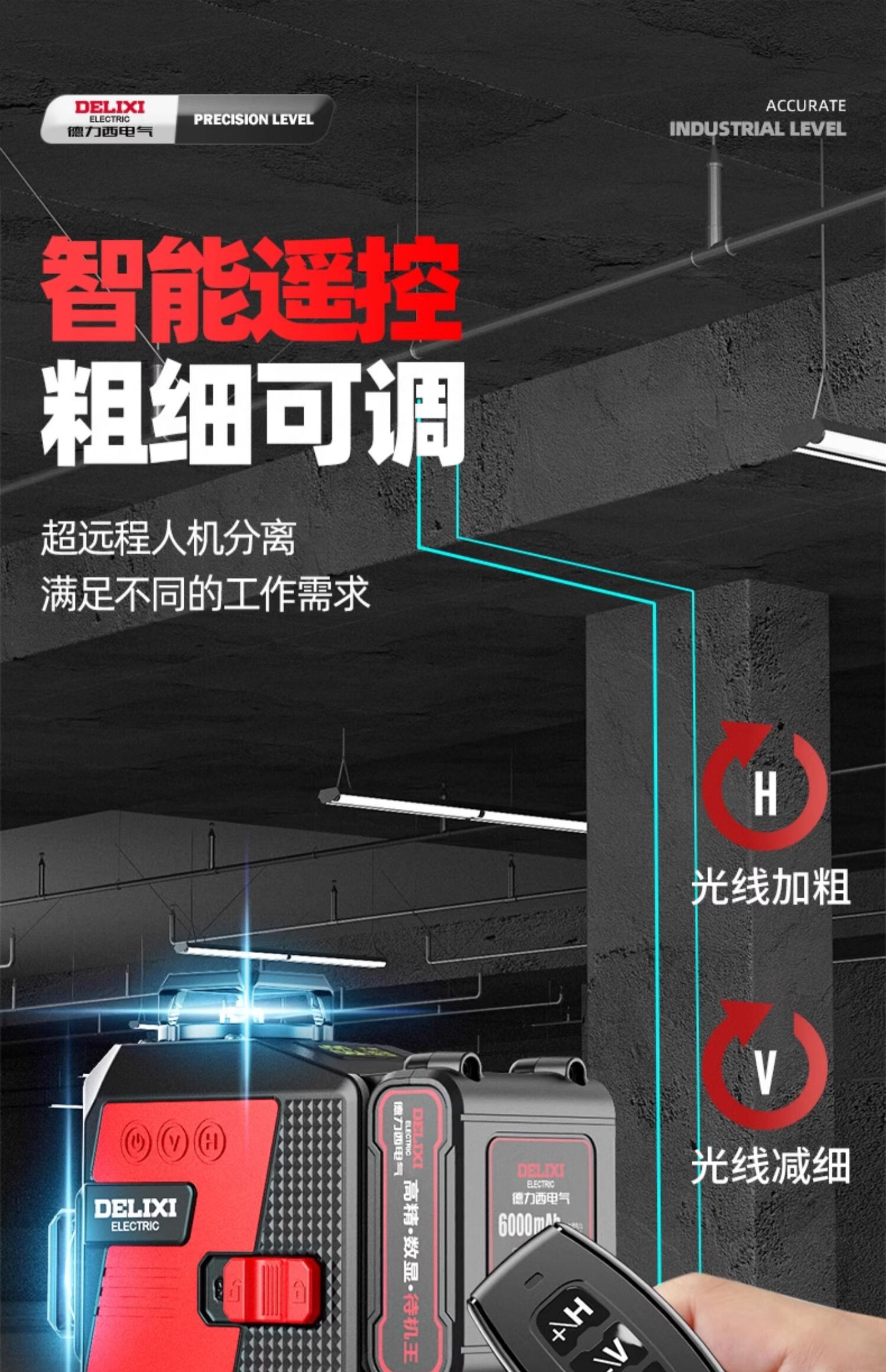 Delixi 12 Laser Infrared Level Rotating No Blind Zone High-Precision Strong Light Thin Line Automatic Leveling Water Meter Super Green Light 8 Lines + Big Mac Dual Electric Standard Set