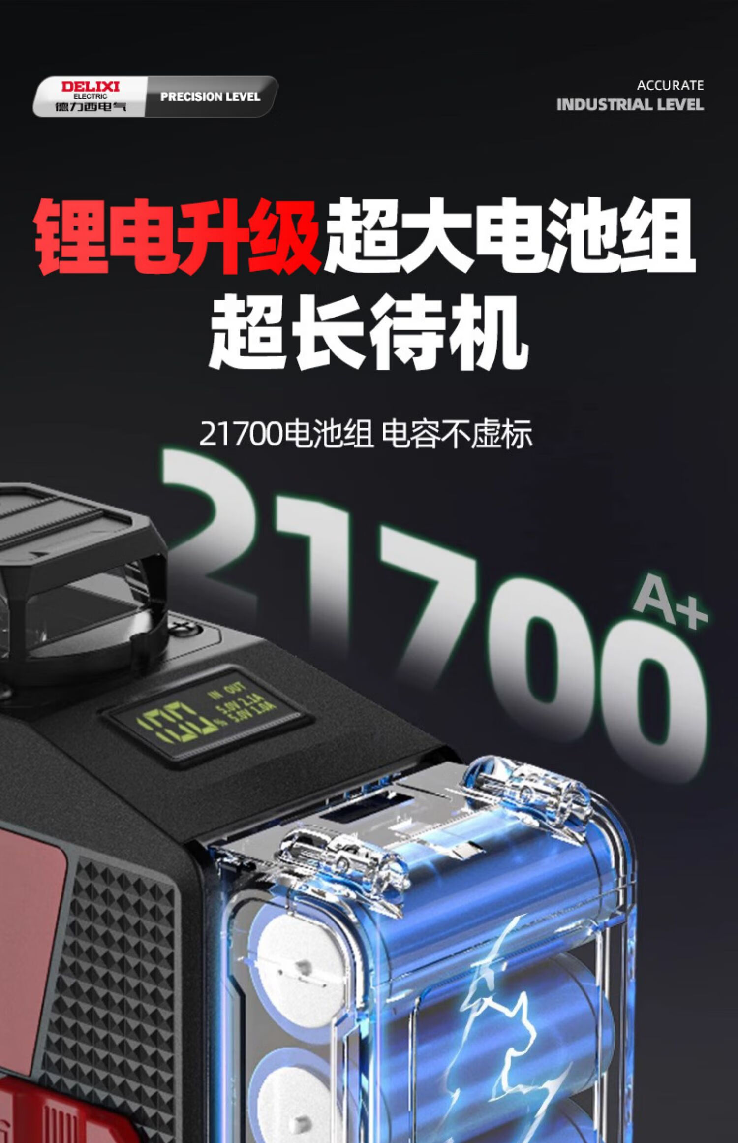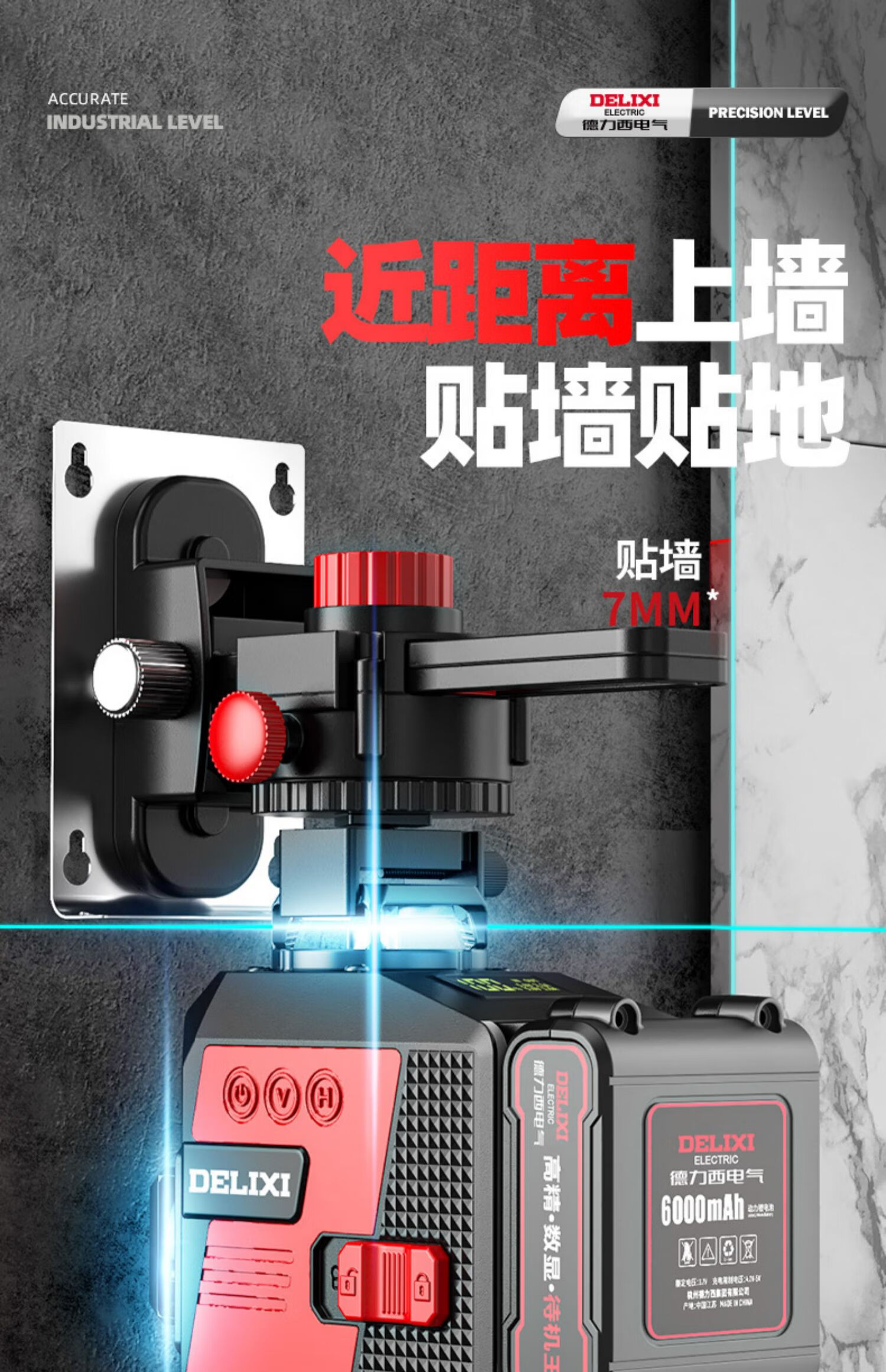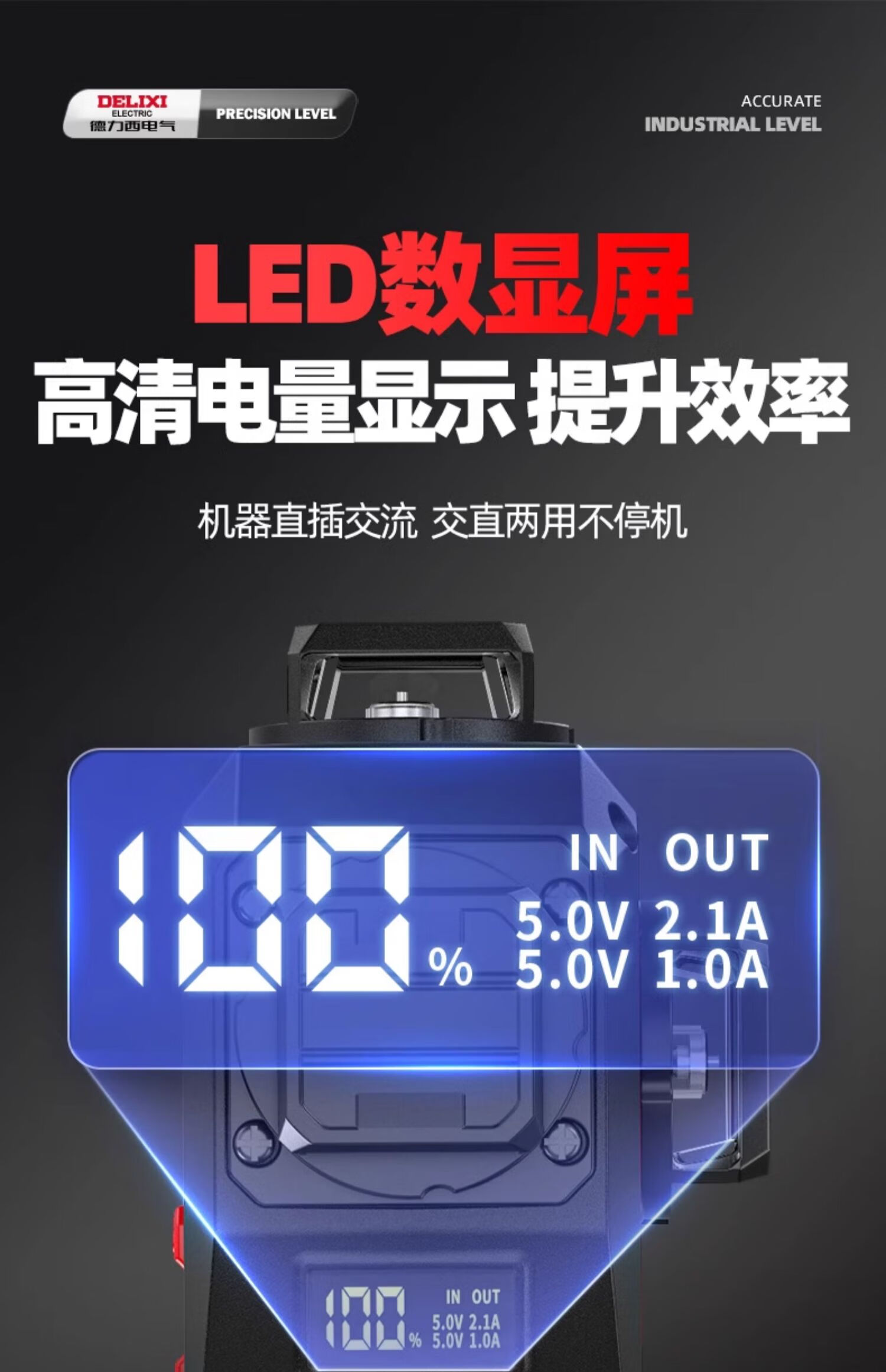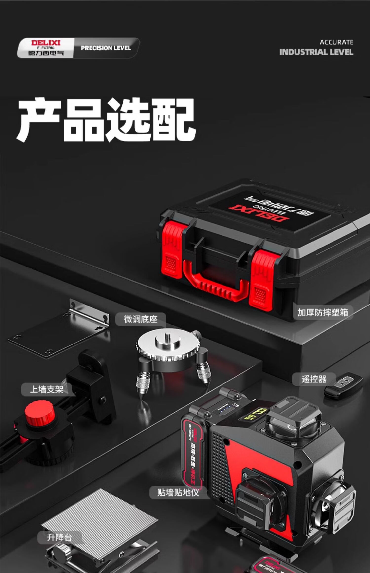 Delixi 12 Laser Infrared Level Rotating No Blind Zone High-Precision Strong Light Thin Line Automatic Leveling Water Meter Super Green Light 8 Lines + Big Mac Dual Electric Standard Set