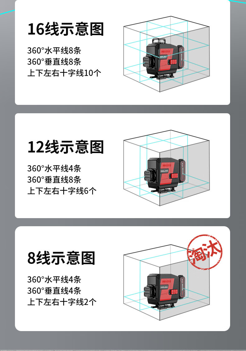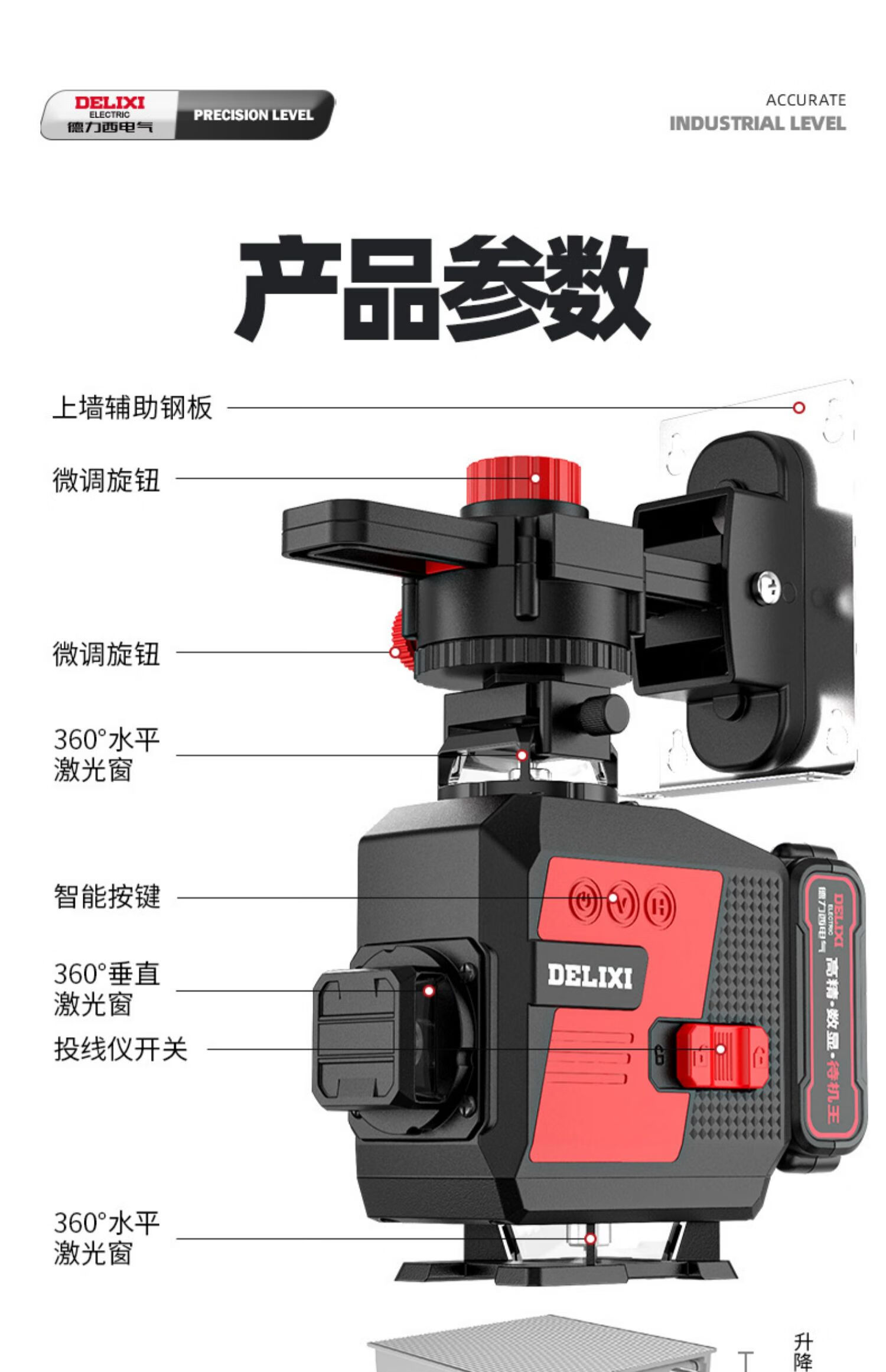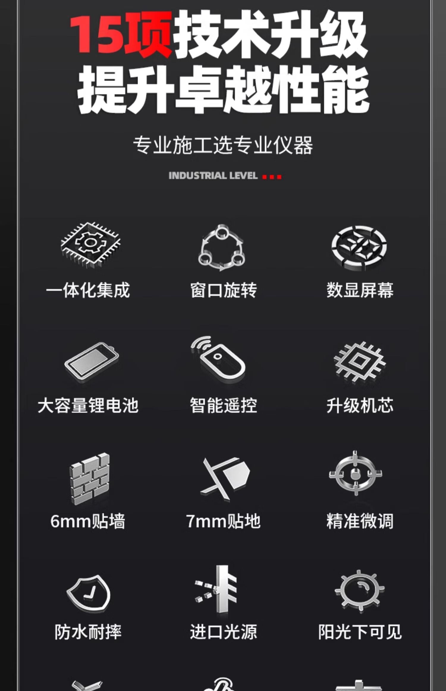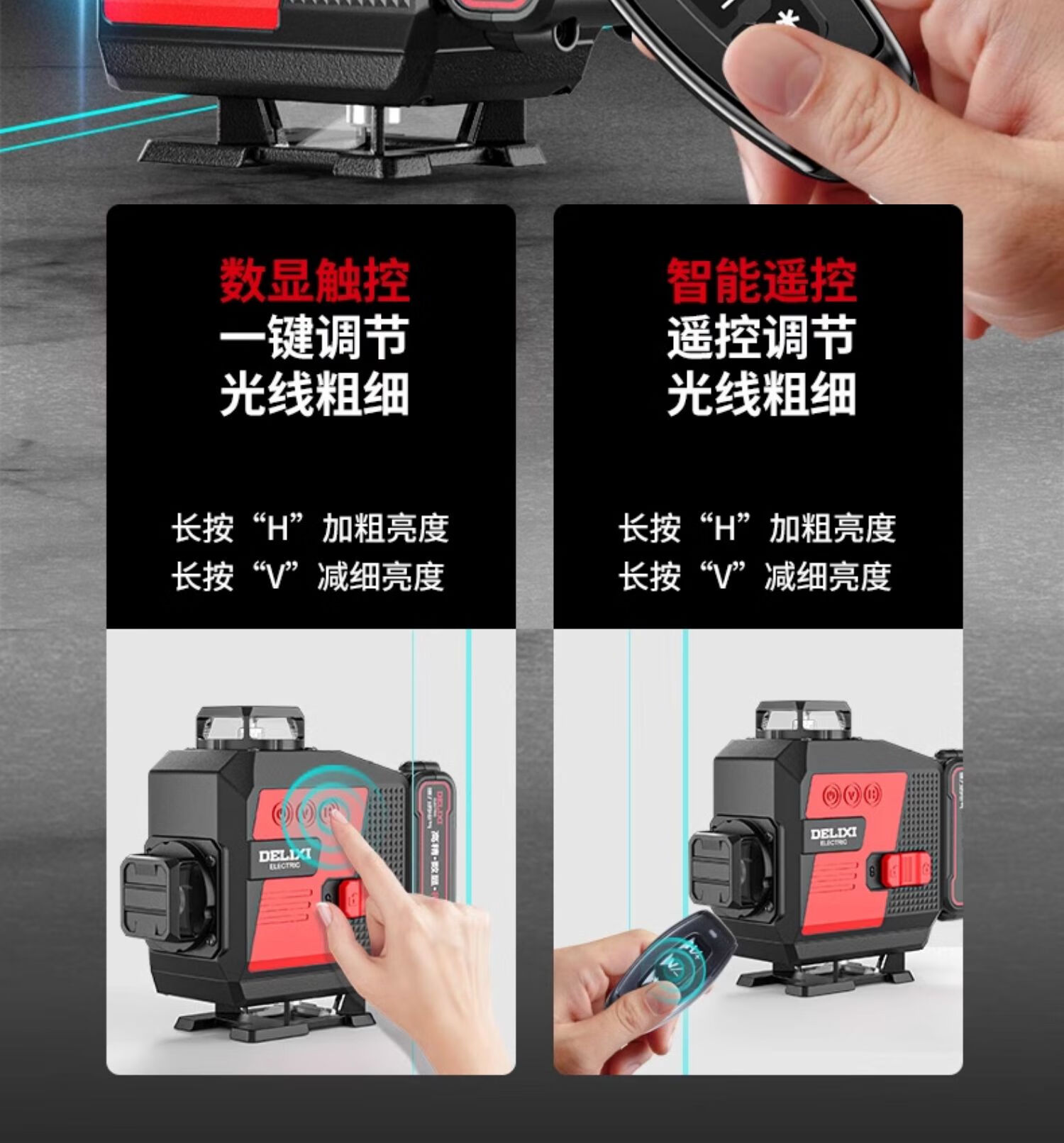 Delixi 12 Laser Infrared Level Rotating No Blind Zone High-Precision Strong Light Thin Line Automatic Leveling Water Meter Super Green Light 8 Lines + Big Mac Dual Electric Standard Set
