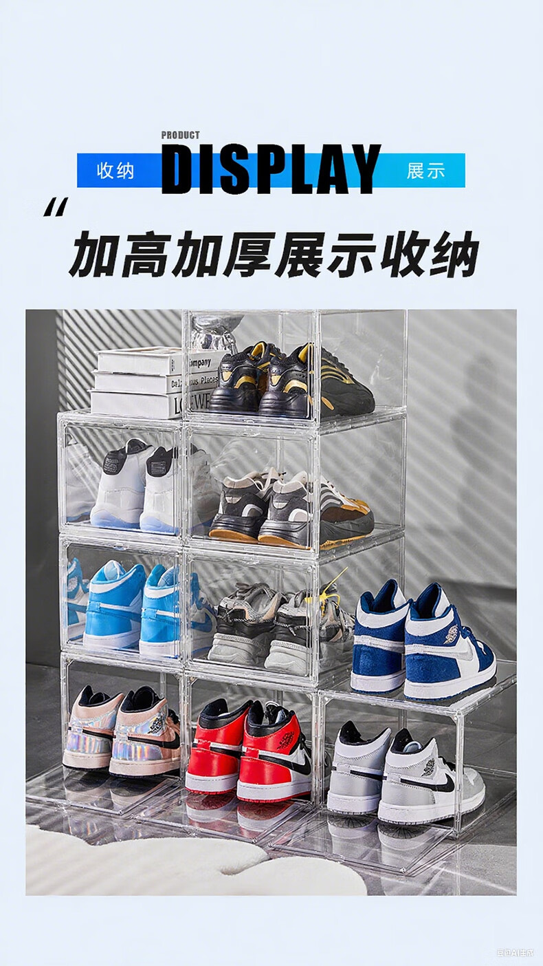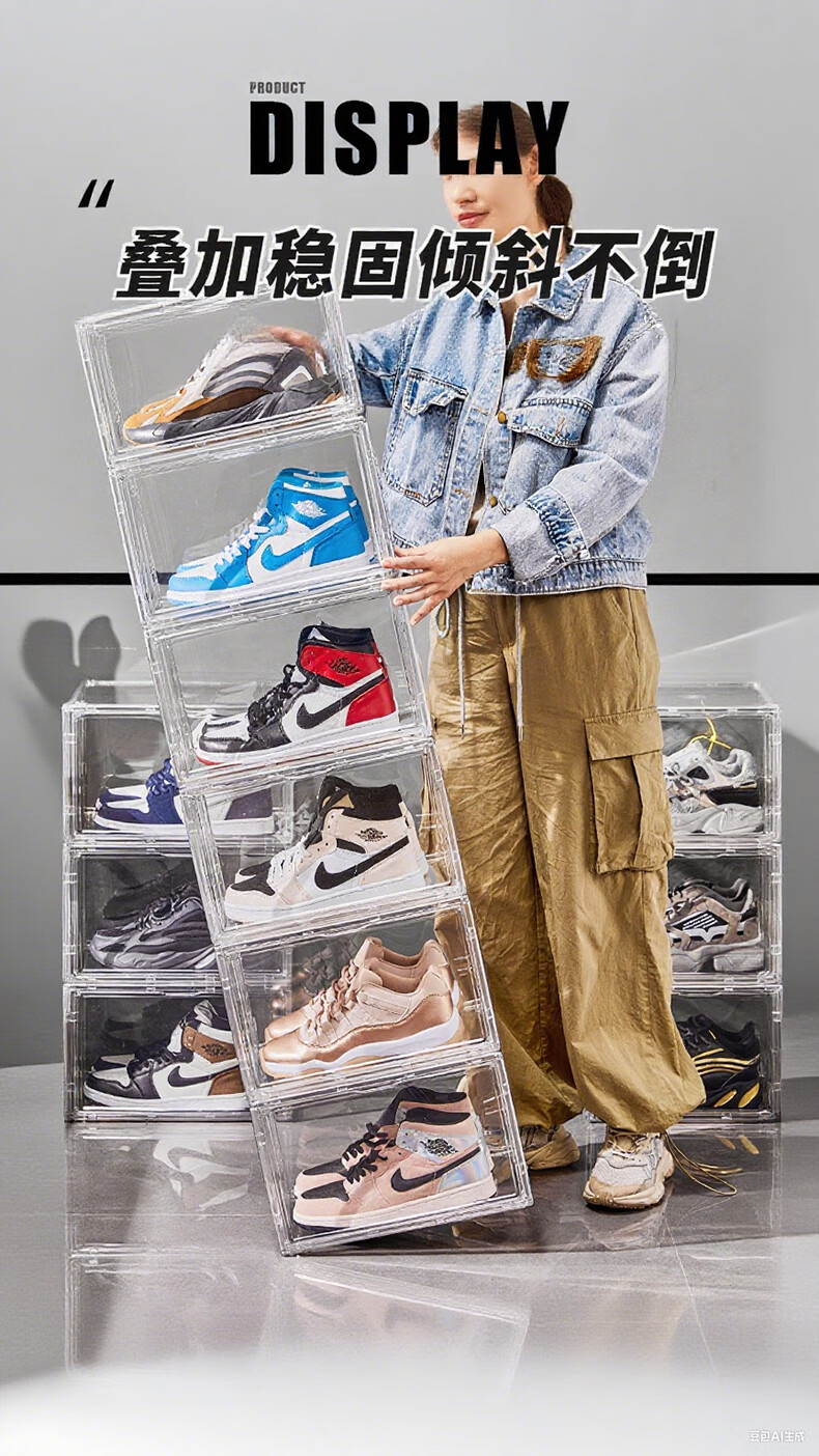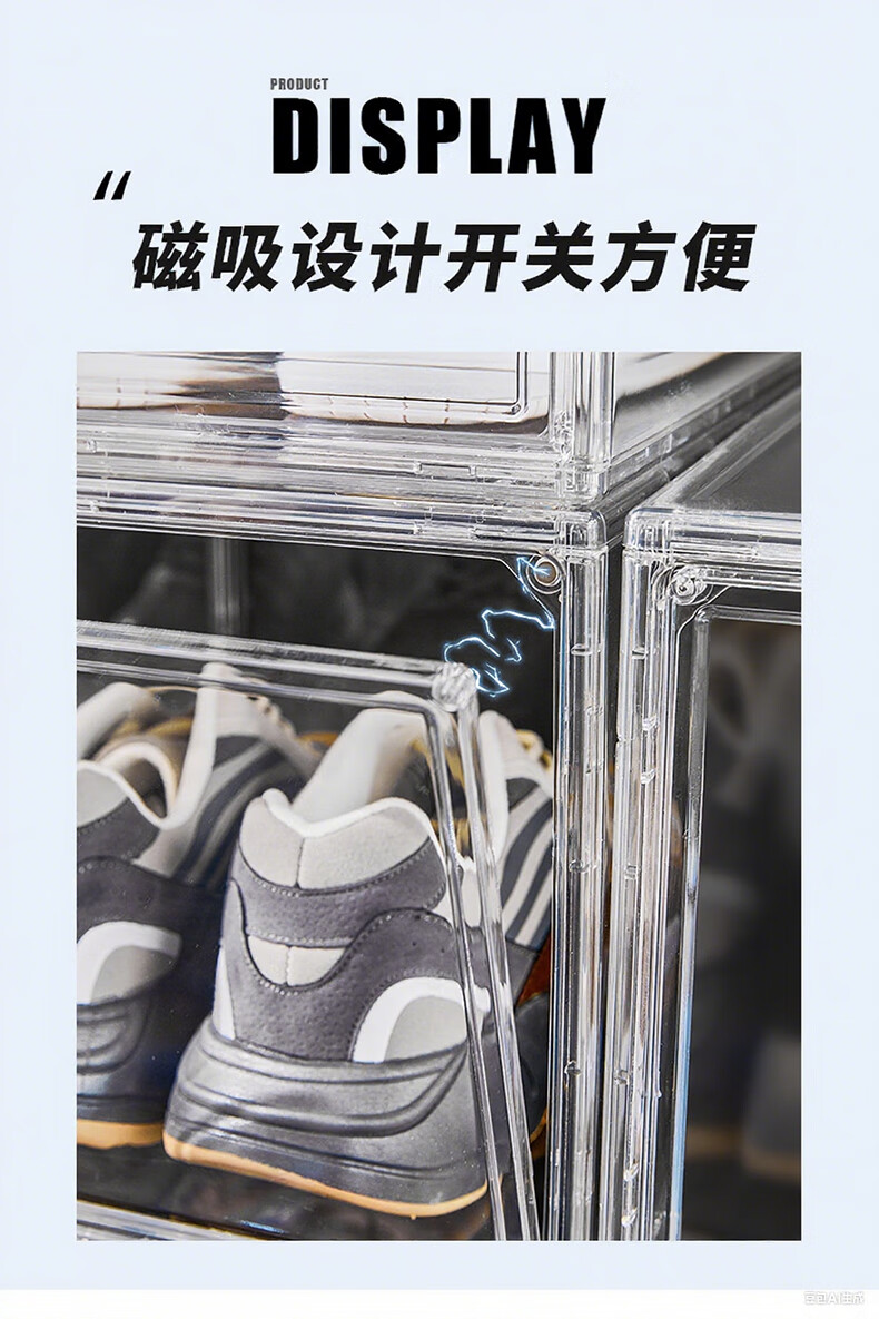 OMANTI shoe box acrylic shoe cabinet dust-proof and moisture-proof AJ high-top shoes removable magnetic front side door collection display shoe box 36x27x22.5 side opening 1