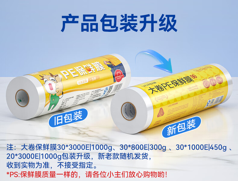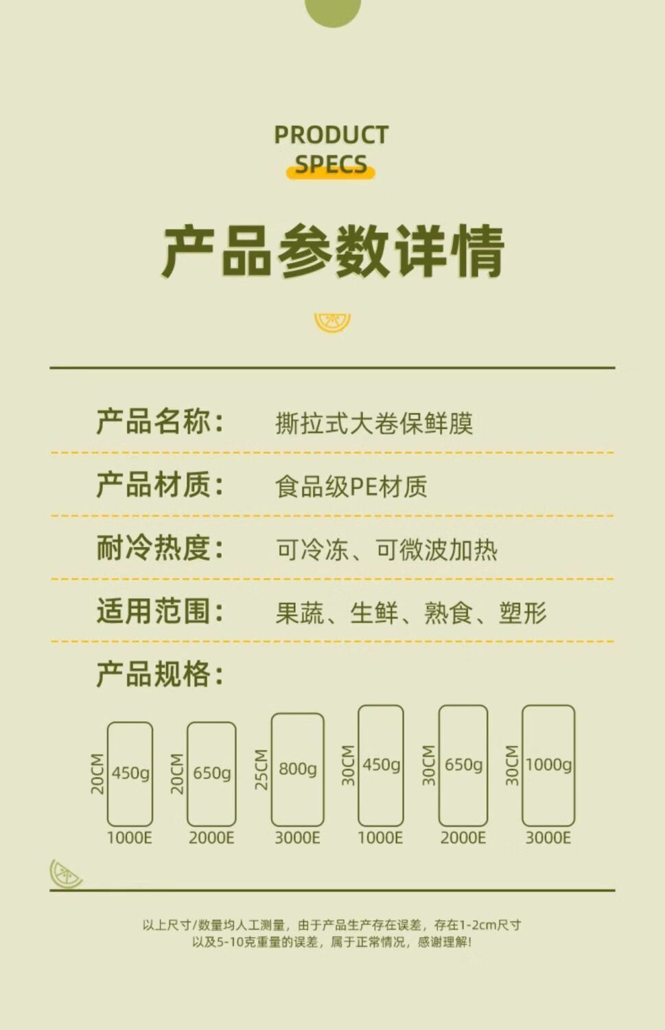 Hanshi Liujia cling film can be heated in a microwave oven, food-grade large rolls, fresh-keeping, transparent large rolls, high-temperature-resistant PE film, tearable, heatable (preservation/body shaping) 25CM/450g