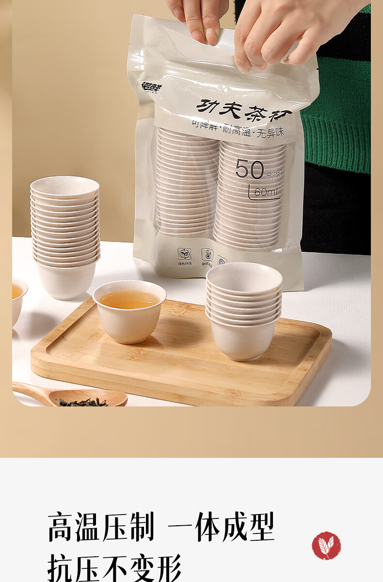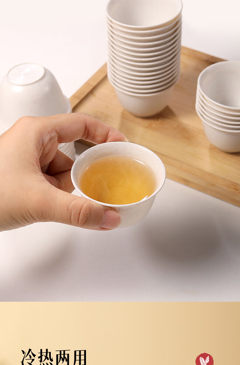 Mu Yunyao rice husk disposable kung fu tea cup small rice fragrant tea drinking cup thickened hospitality cup paper cup tea set thickened rice husk cup two packs (100 pieces) + a cup holder rice husk