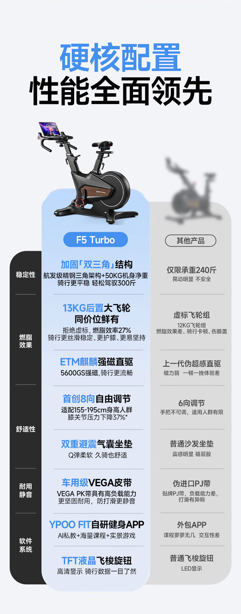 YPOO spinning bicycle home smart magnetically controlled resistance adjustable silent indoor road bicycle fitness equipment Phantom F5 newly upgraded flagship Turbo/13KG dynamic balancing flywheel