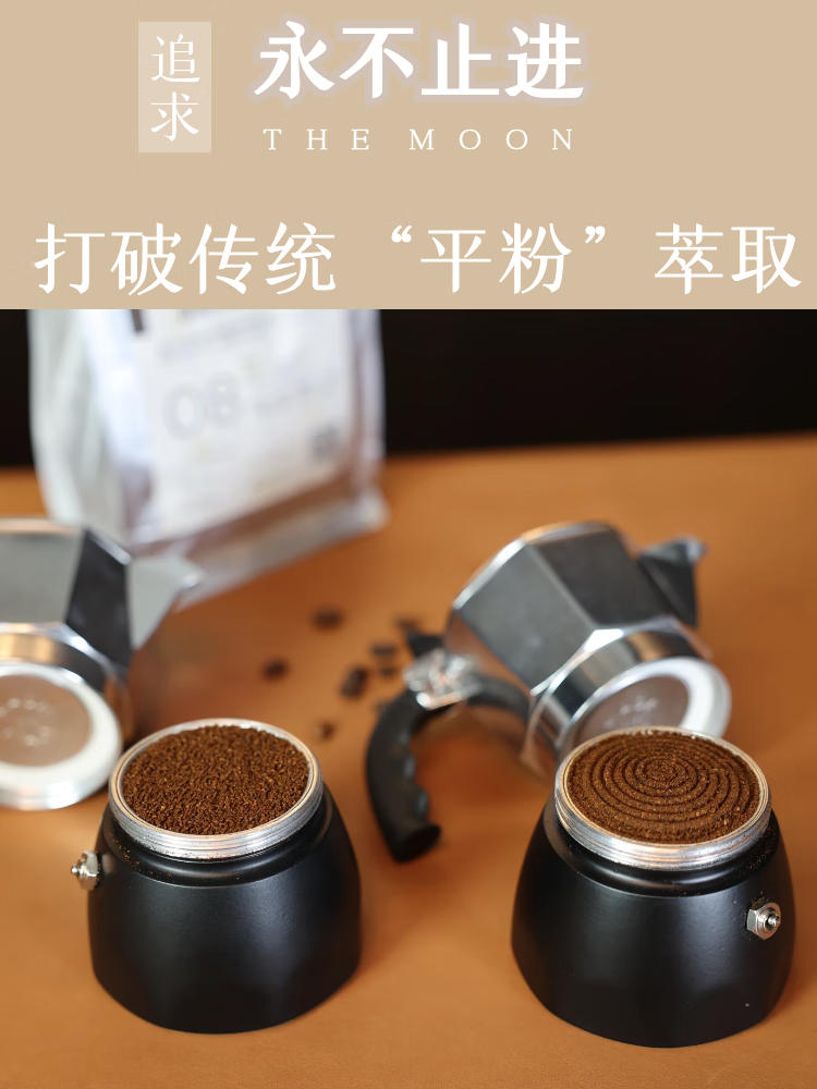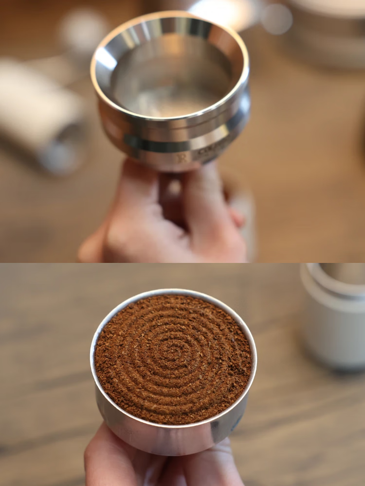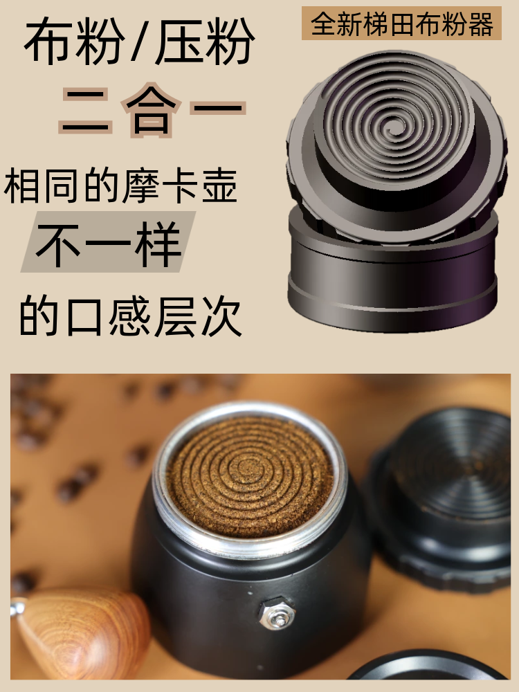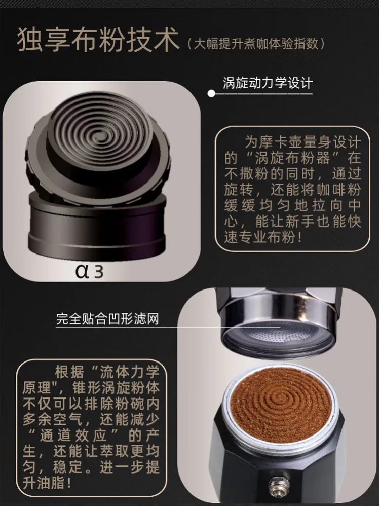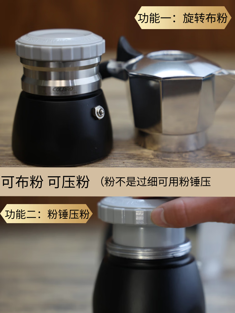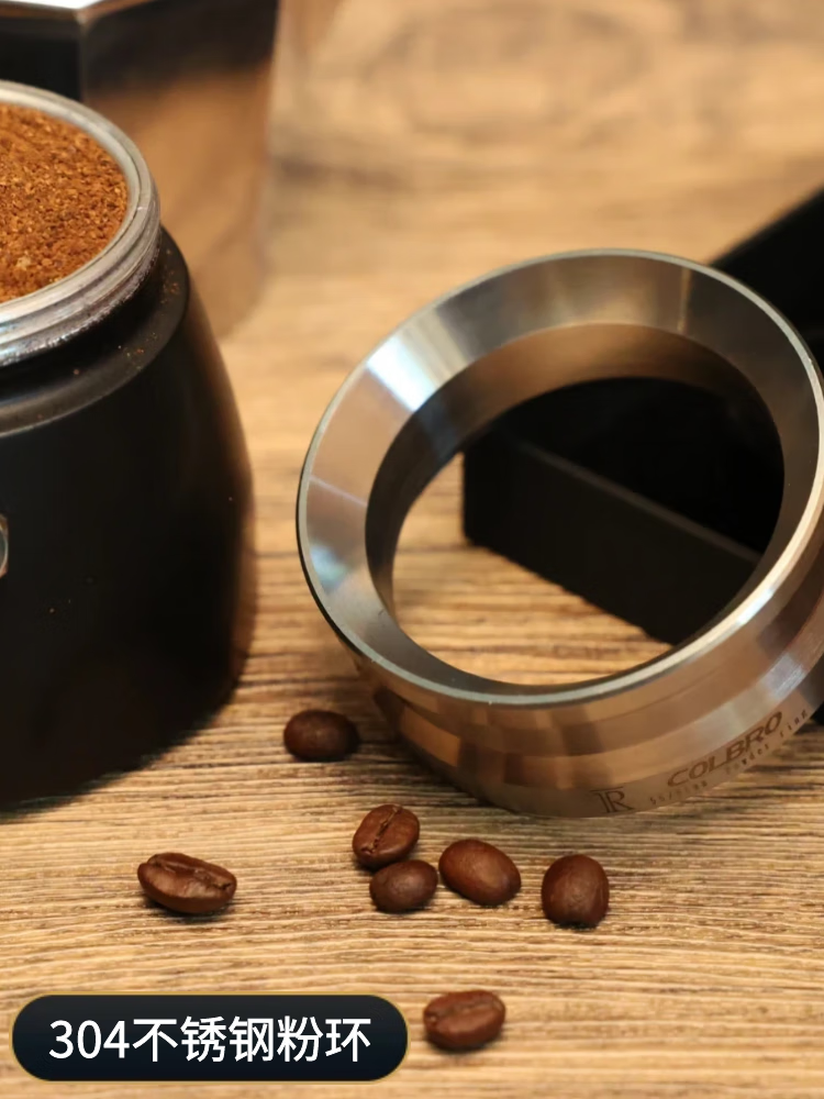 COLBRO Semi-automatic Moka Pot Terraced Powder Receiver Ring Powder Receiver Powder Distributor Powder Press Powder Filler Anti-Flying Powder No Spreading 304 Steel Ring (Three Valve Two Cups, With Black Terraces