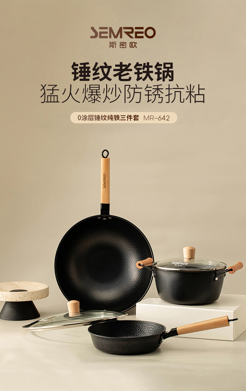 Smeo hammered iron pot three-piece set MR-642 black 3-piece set