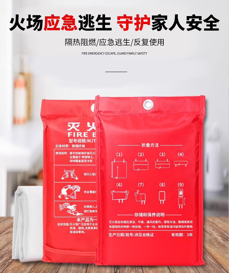 1.5m fiberglass national standard fire-fighting certified equipment household fire-proof kitchen special fire blanket bagged thickened 1.2Mx1.2M high-efficiency flame-retardant fire-extinguishing blanket_ Baoguao