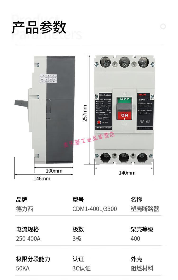 Pupan CDM1-400L molded case circuit breaker 3300 air switch 350A315A250A air switch 3P 400A