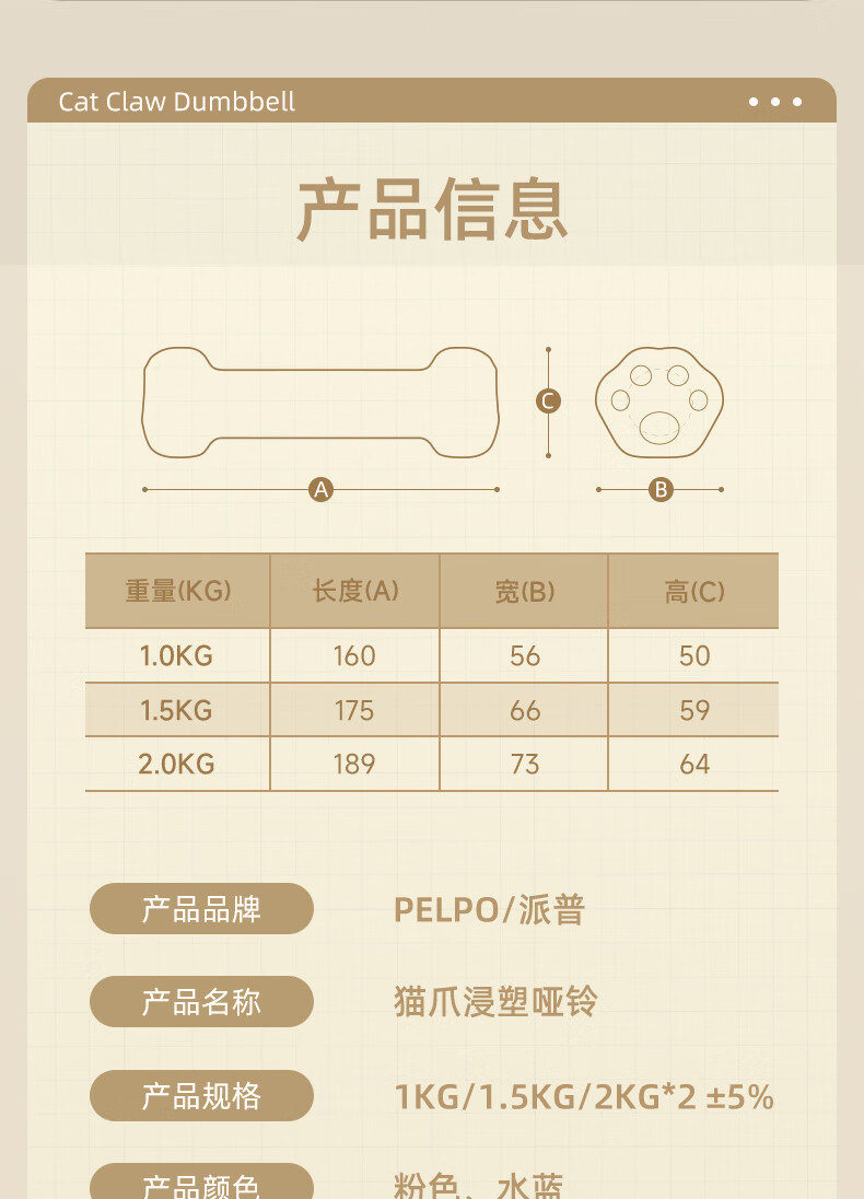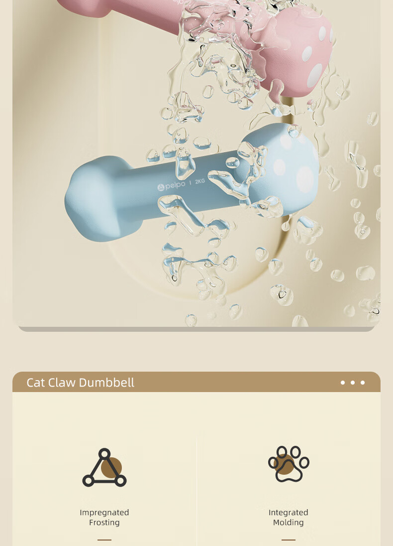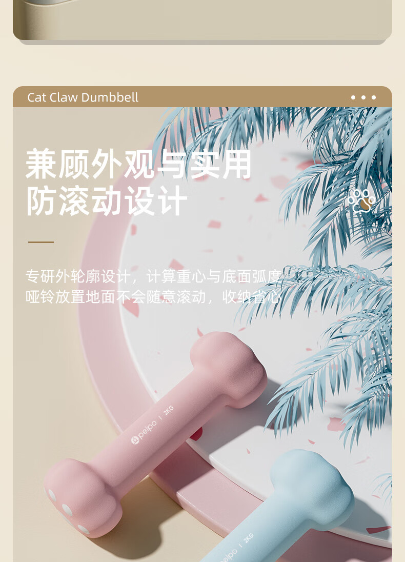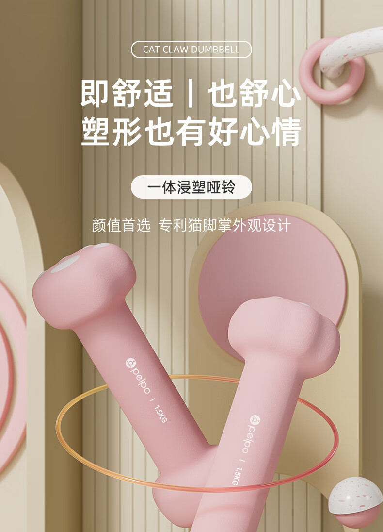 PELPO dumbbell women's fitness equipment home aerobics small dumbbells a pair of arm muscle training 1kg primary school student arm male pink 2Kg*2 (cute cat claws)