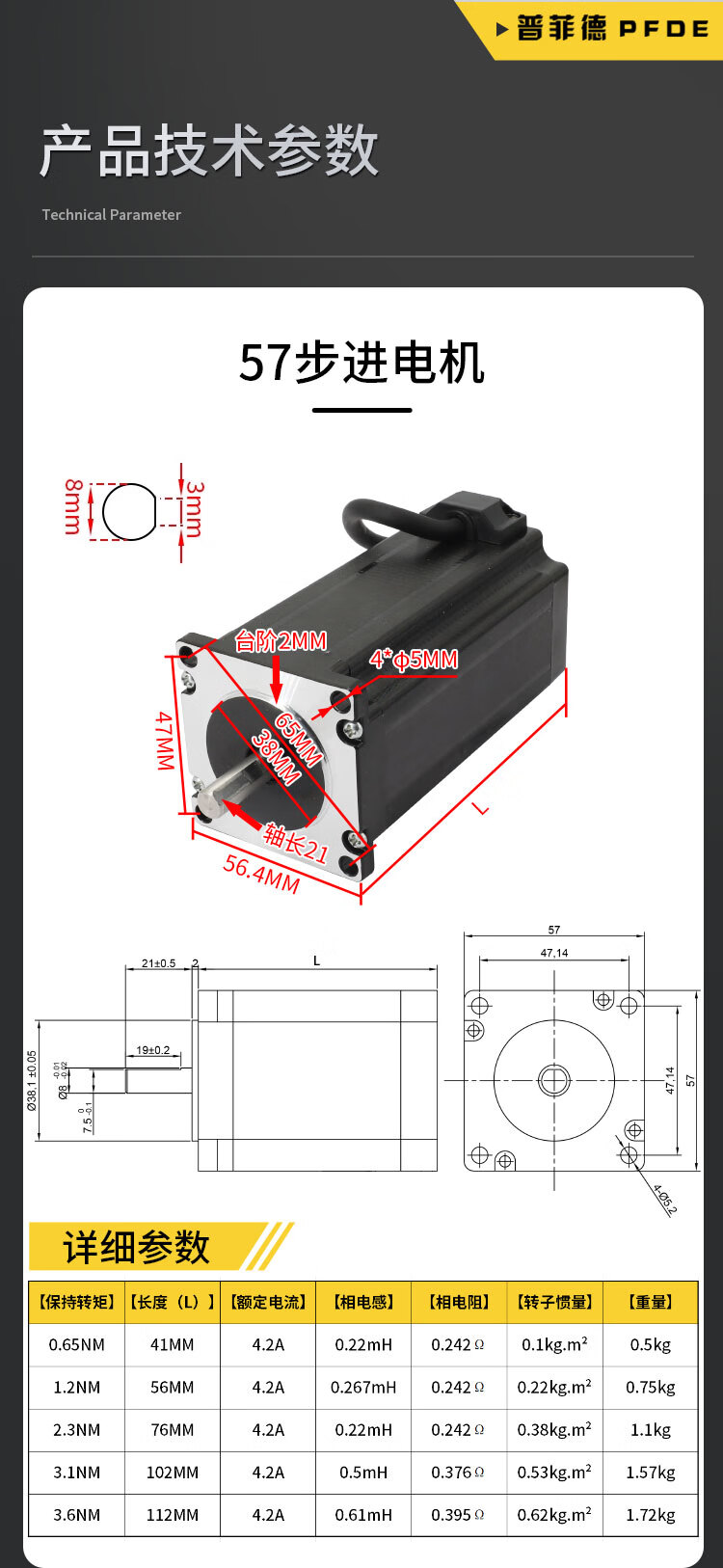 Depp 57/86 stepper motor set driver controller two-phase 4-wire motor motor 3.6N4.5N8.5N1 57 stepper 0.65Nm+TB6600 set