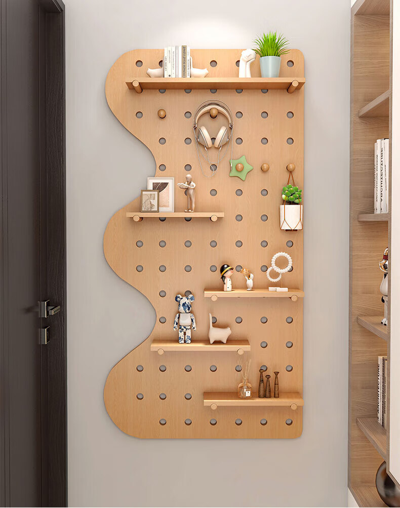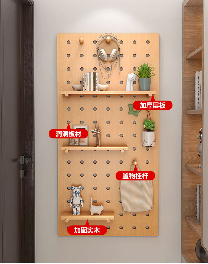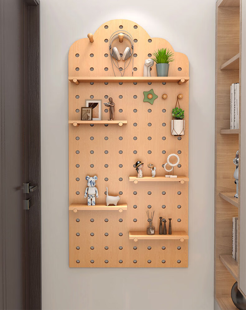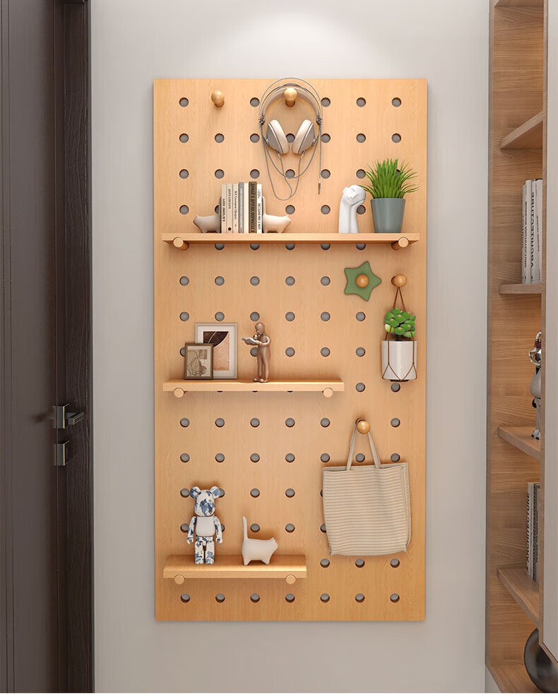 Wooden grid hole board storage rack entry entrance display rack wooden desktop wall desk storage wall hanging board storage rack combination package 40x60 (wood grain color)