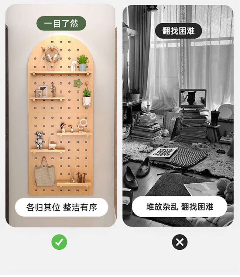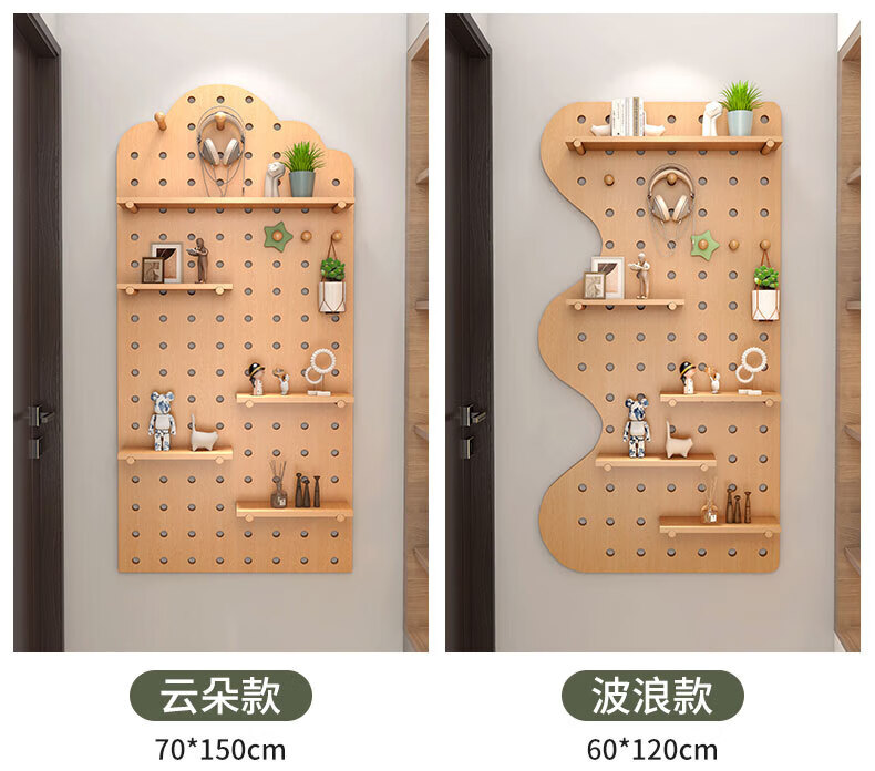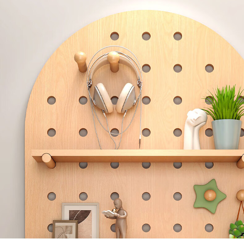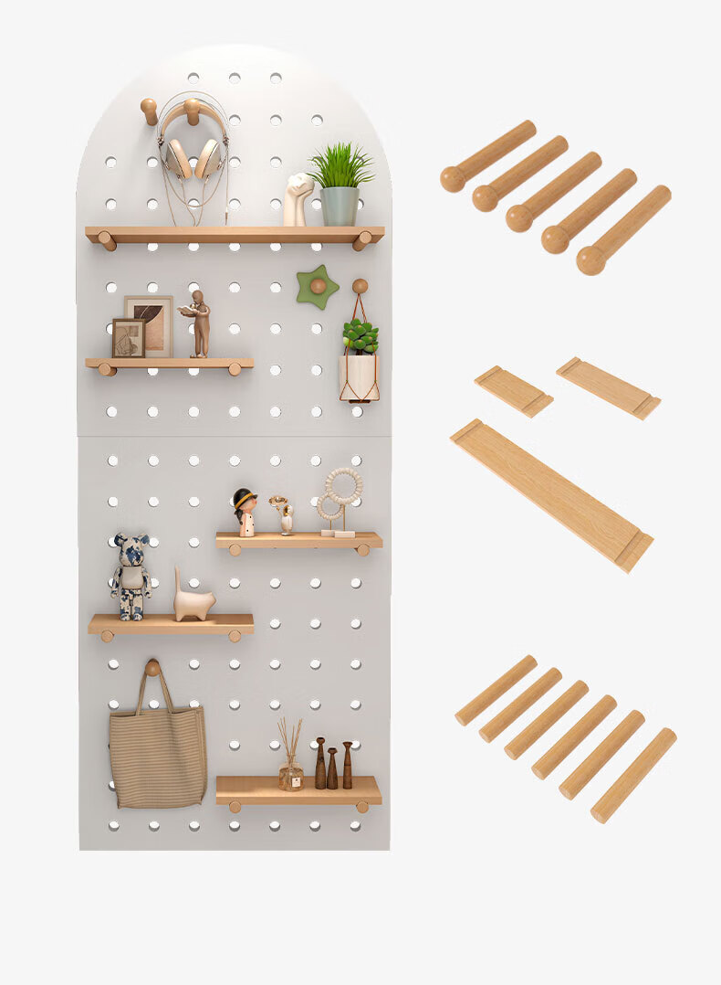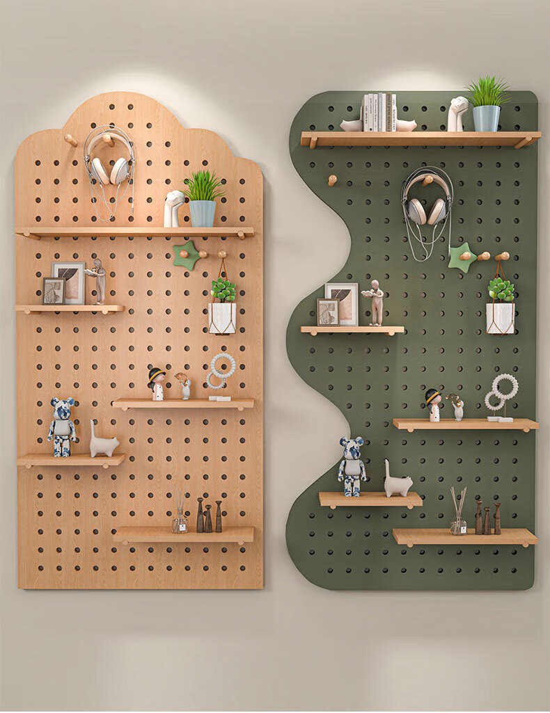Wooden grid hole board storage rack entry entrance display rack wooden desktop wall desk storage wall hanging board storage rack combination package 40x60 (wood grain color)