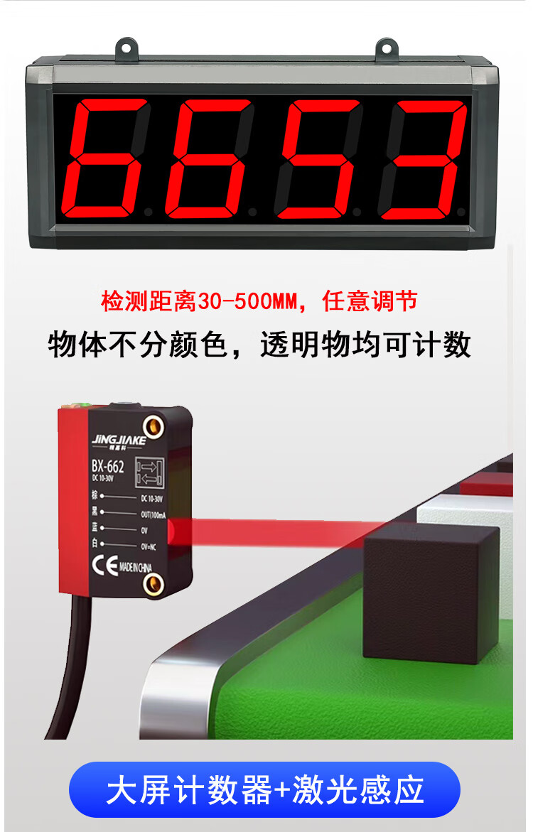 Yue Changsheng digital display electronic counter automatic induction assembly line conveyor belt conveyor point counting package 3 inches 4 digit display + metal sensor 8MM