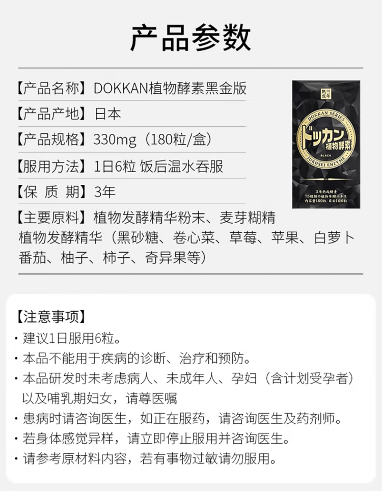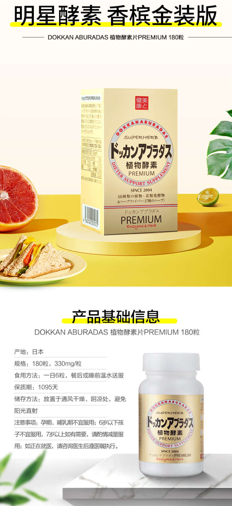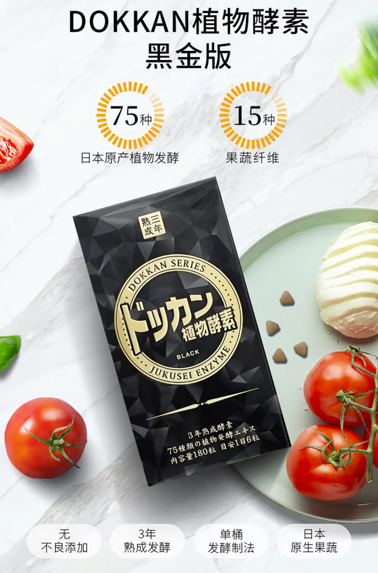 DOKKAN Japan imported enzyme nighttime plant enzyme champagne gold enhanced version of fruit and vegetable shake Kang Xiaosu tablets enzyme tablets champagne gold upgraded version 180 tablets two bottles