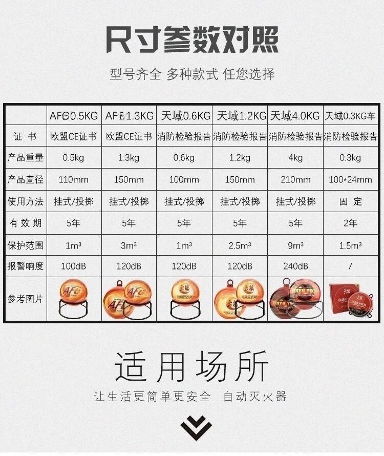 Fire extinguisher ball for carport, kitchen and hotel fire protection automatic induction fire extinguishing device English 0.5kg bracket (bracket included)